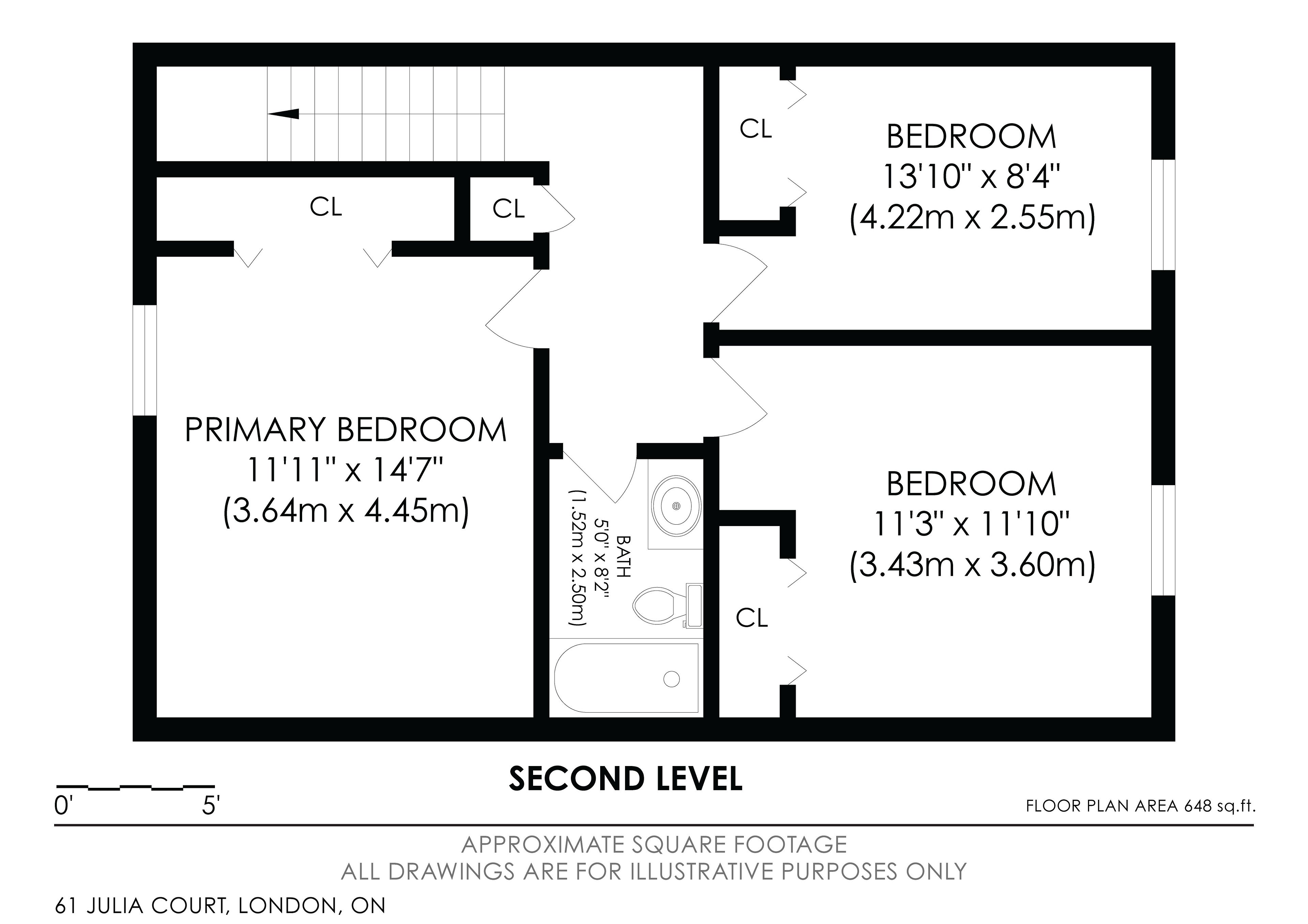 • Generously sized bedrooms and full bathroom on the upper level.