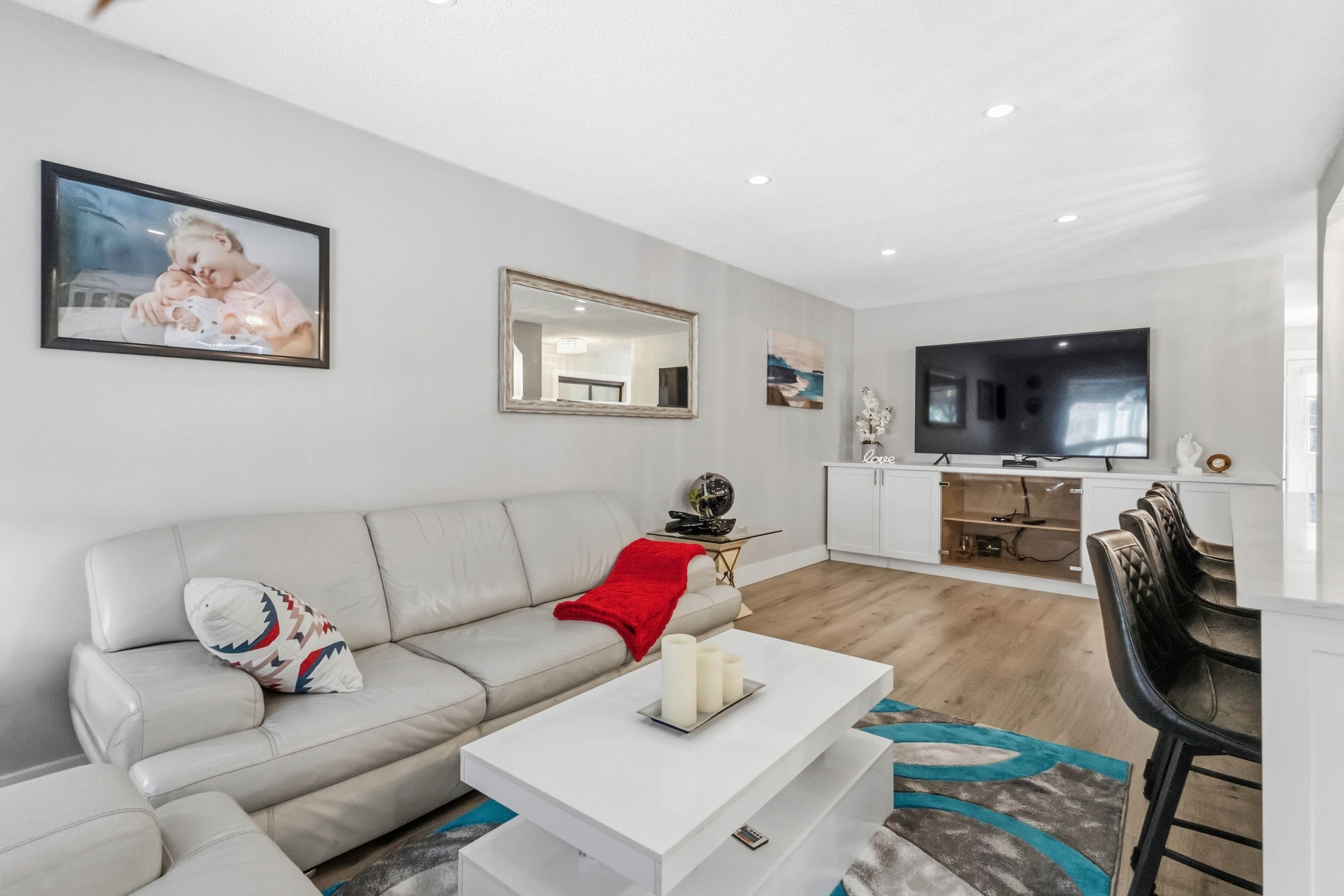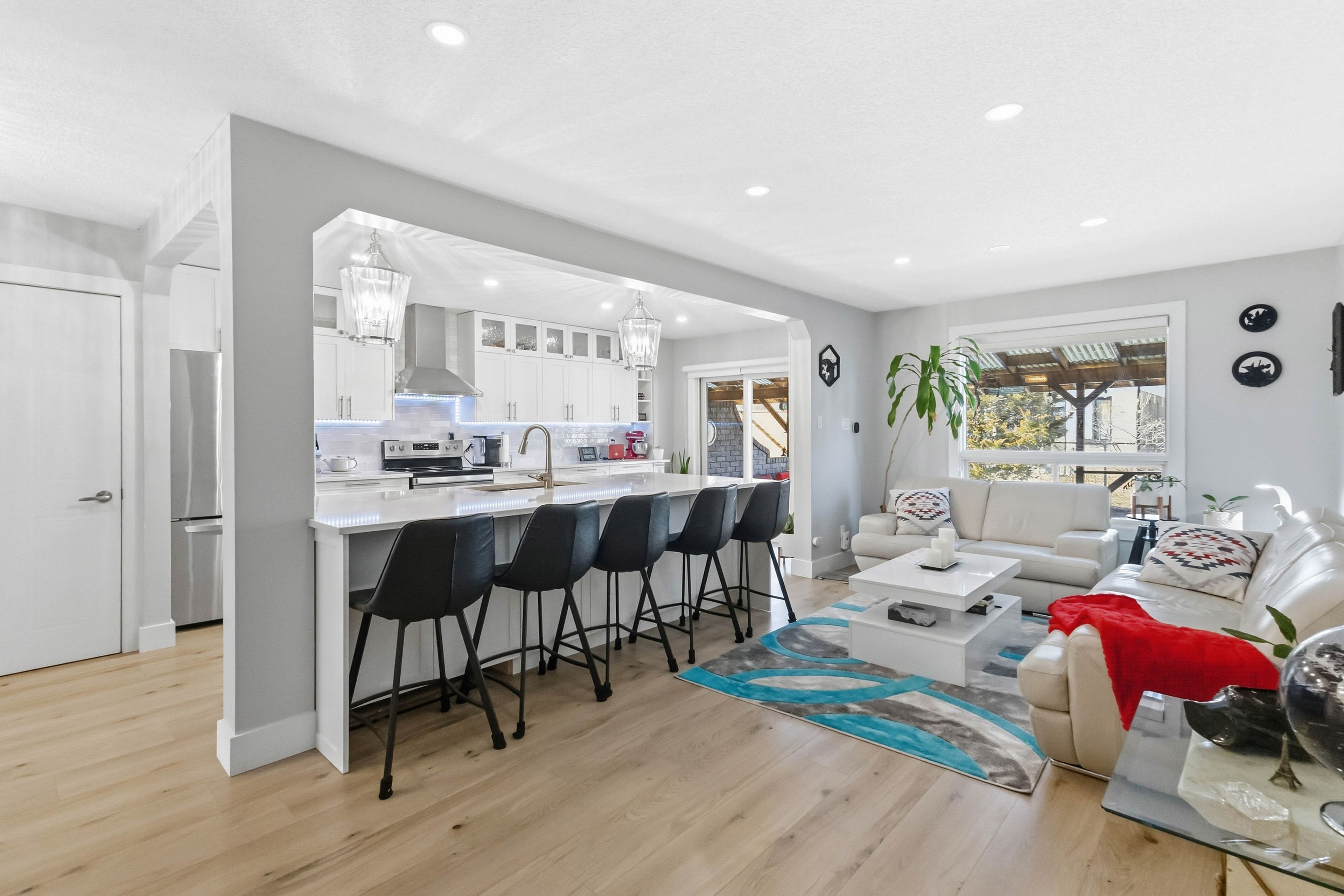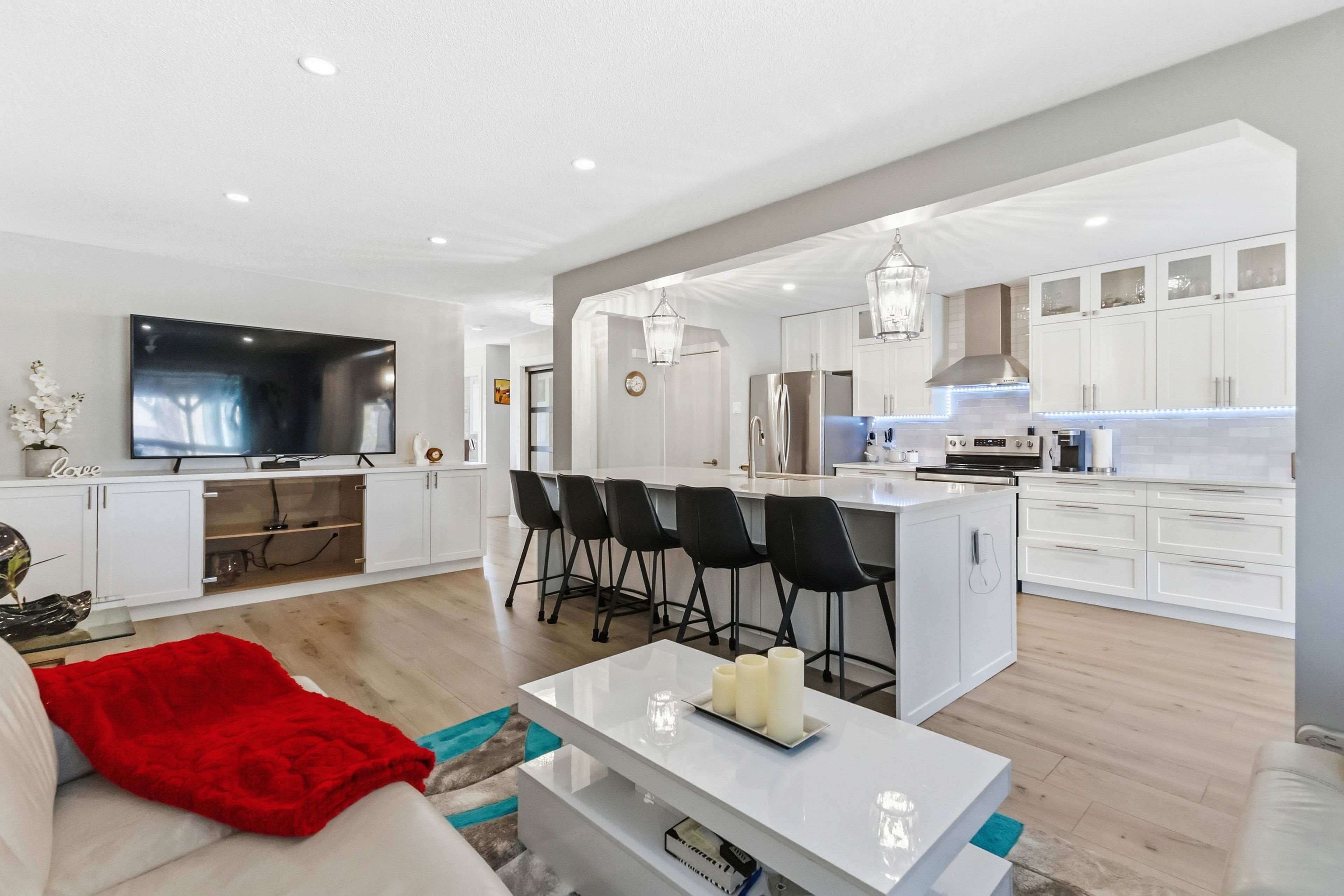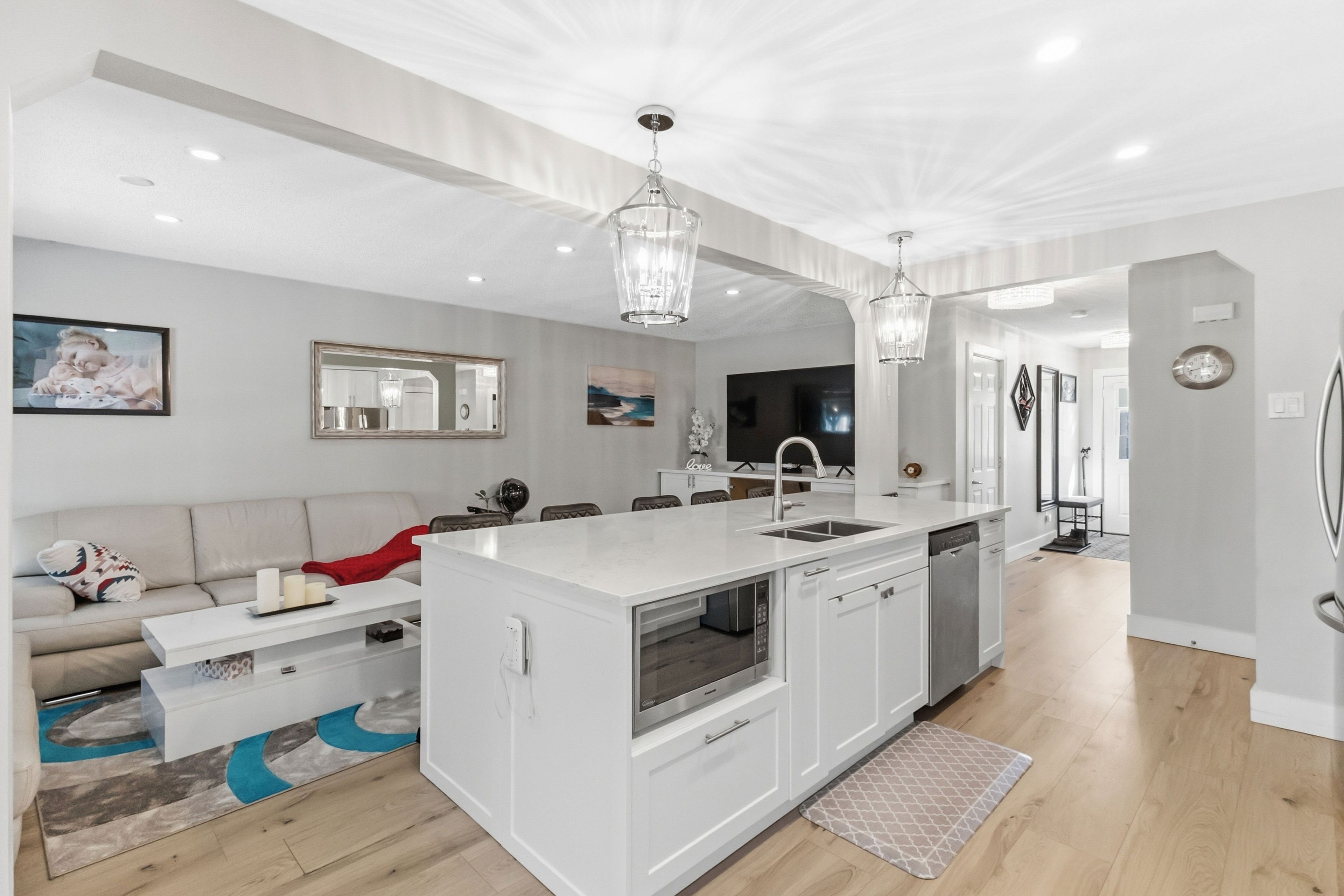 • Bright open-concept main floor with modern kitchen and stainless steel appliances.
