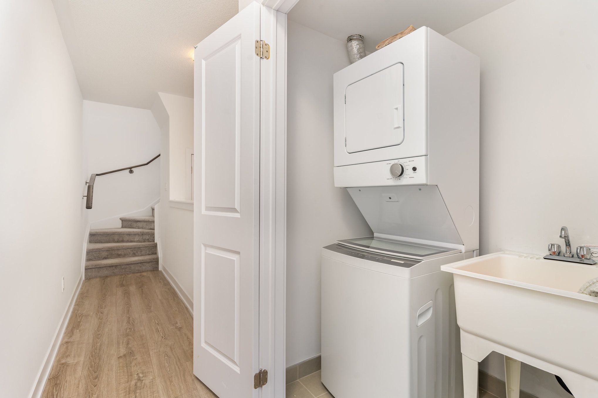Awesome 2 bedroom townhouse with 3 bathrooms & huge private rooftop patio ** huge driveway can accommodate 2-3 cars plus a 1 car garage. Premium lot. Rooftop features water & gas lines. 9 foot ceilings, stainless steel appliances, quartz counter tops in the kitchen & primary ensuite, the primary bedroom features a large glass shower and a rare double sink vanity. This fabulous townhouse offers the perfect combination of style, comfort, and functionality. Beautiful laminate flooring, open concept design. Custom window coverings with black outs in bedrooms. Situated in family friendly neighbourhood with all conveniences in walking distance - parks, schools, shopping, dining and transit ** don't miss this opportunity to make this your new home ** great layout ** great space ** great value **