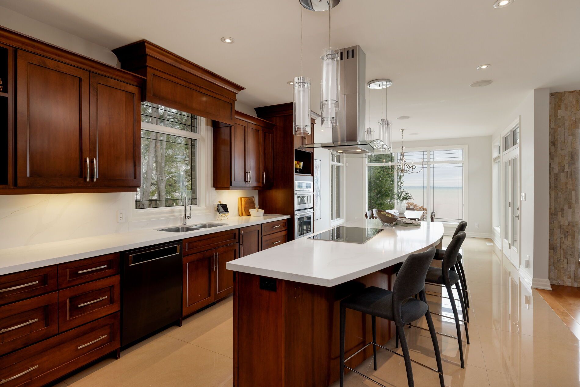 • Renovated lower level with family room, second kitchen, and home theatre.