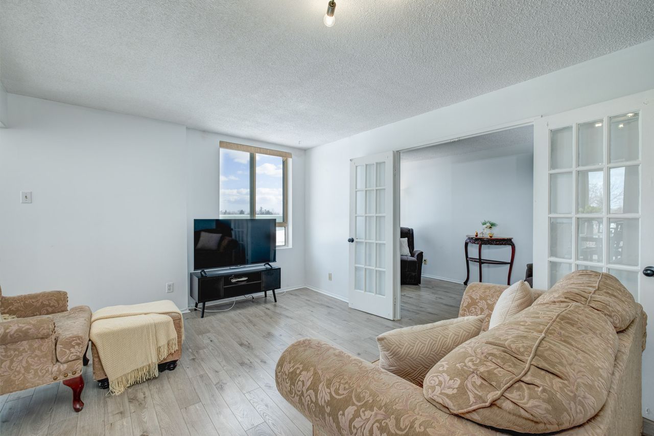 A spacious and affordable end unit condo with lots of sunlight awaits you in a quiet, exceptionally well-maintained building. This bright and inviting unit features two generously sized bedrooms, a large den/office, two bathrooms, and a convenient ensuite laundry. Enjoy seamless indoor-outdoor living with a walk-out from the dining area to a large private terrace offering an amazing view-perfect for relaxing or entertaining. Located just steps to ttc bus service and only minutes from major highways and transit, commuting is effortless. Residents enjoy excellent amenities including an indoor swimming pool, sauna, gym, squash courts, party room, and ample visitor parking. An incredible opportunity for first-time home buyers, investors or those downsizing - don't miss out!