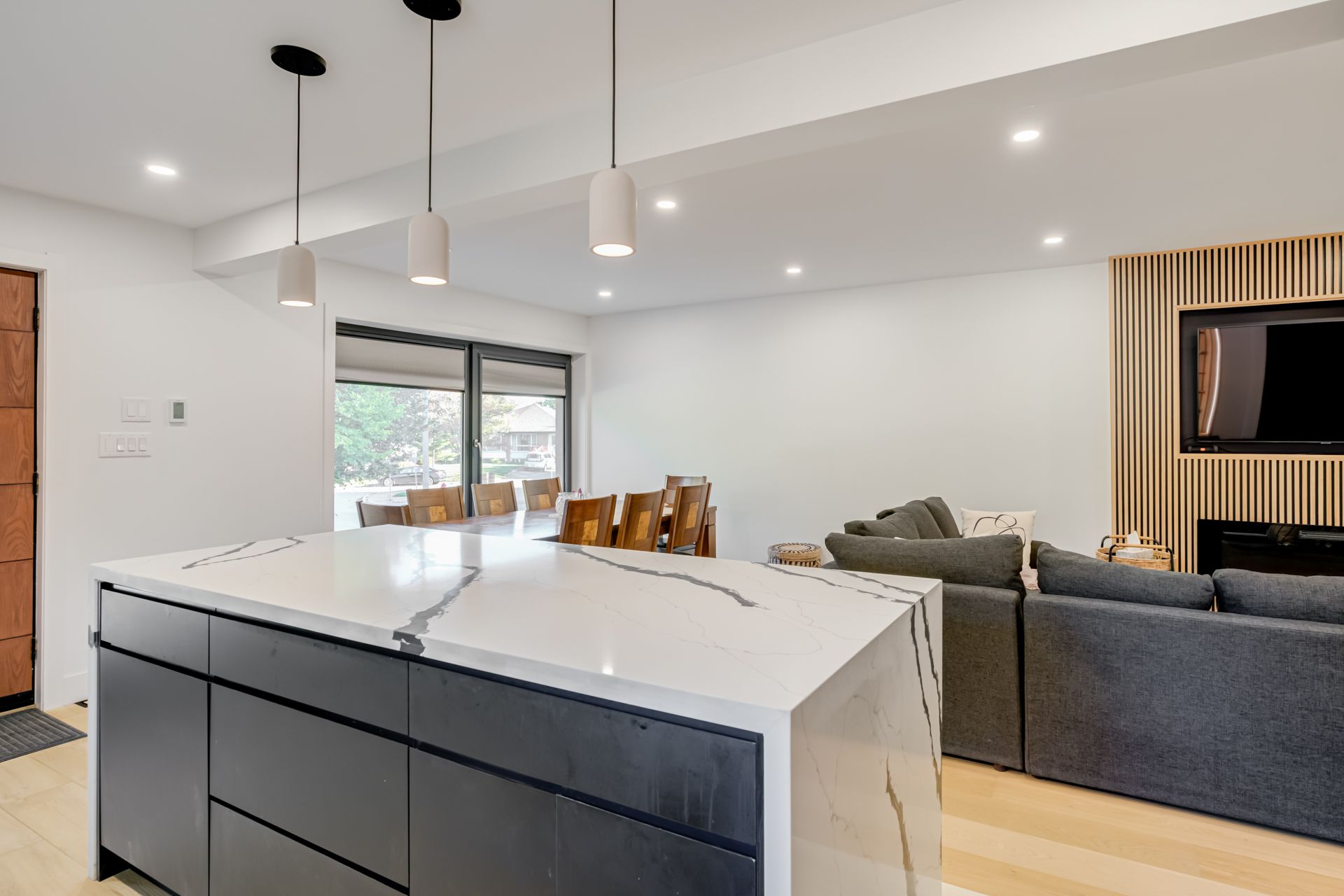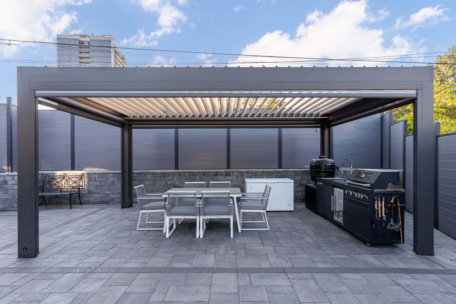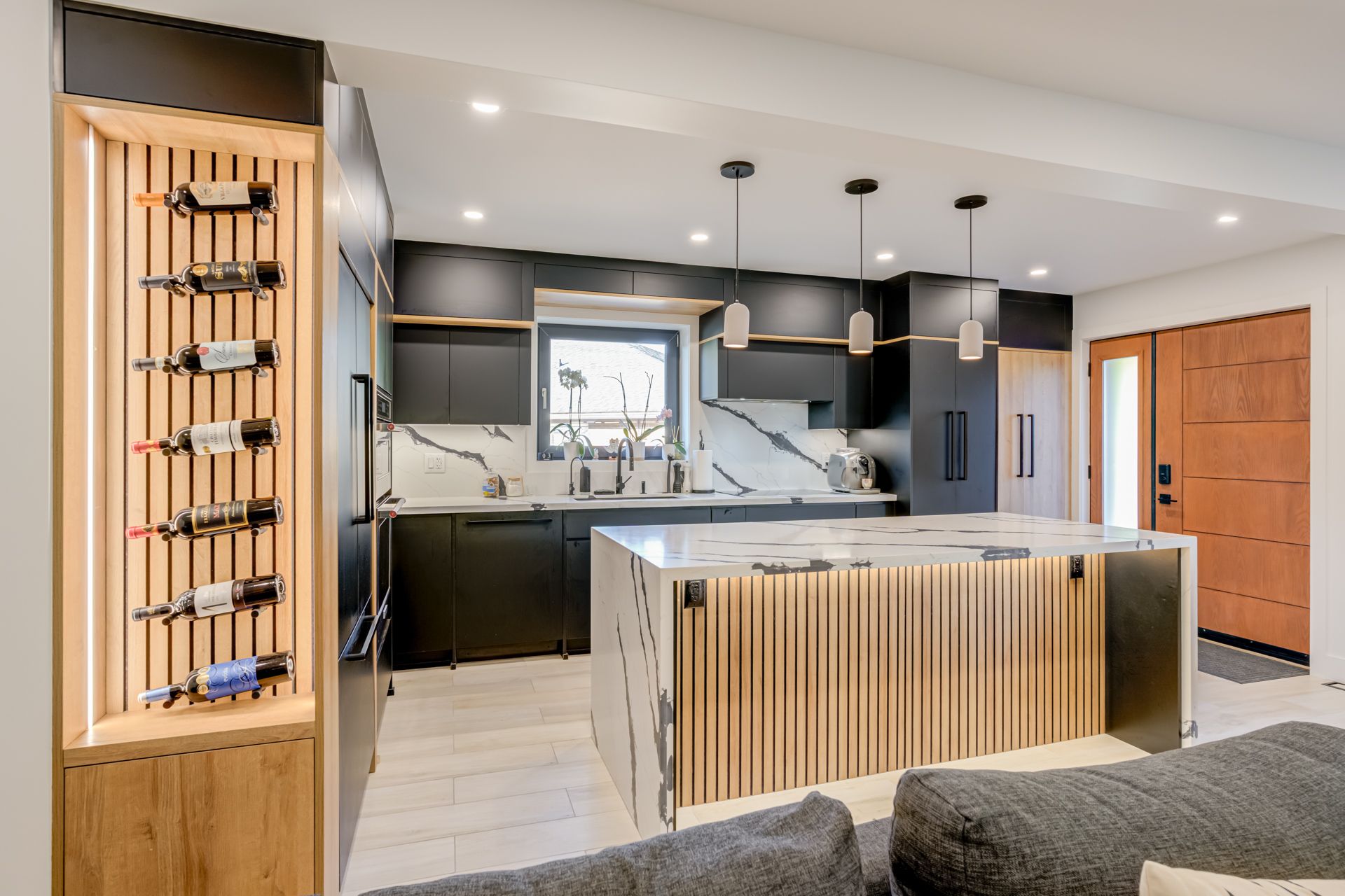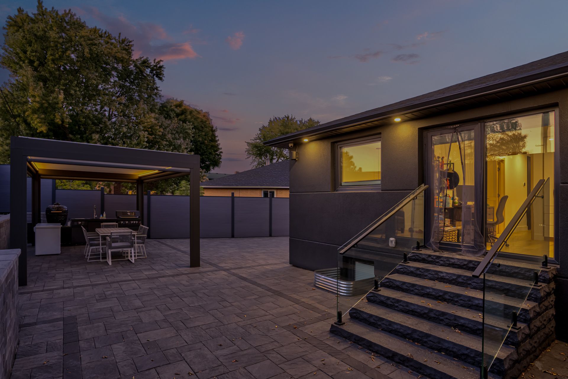 Welcome to a newmarket masterpiece that redefines luxury living through design, craftsmanship, and function. Every inch of this home has been meticulously renovated with a sophisticated modern aesthetic from the sleek engineered hardwood floors to the imported, custom-crafted interior doors that exude quiet elegance. The open-concept main floor showcases two beautifully appointed bedrooms, each featuring its own ensuite bath, complemented by a third powder-room, a rare layout blending comfort and convenience. The designer kitchen flows seamlessly into bright, airy living spaces, creating the perfect environment for entertaining or unwinding in style. Step outside into your private oasis a fully landscaped, maintenance-free backyard framed by an elegant aluminum fence. Here, modern living meets outdoor luxury: a state-of-the-art motorized pergola with power louvers and retractable screens, a fully equipped outdoor bbq station, and an ev charging port make this home as smart as it is stunning. The lower level is a true showpiece of design versatility, offering a separate entrance and two complete one-bedroom apartments each with its own full kitchen and bathroom. Ideal for extended family, guests, or premium rental income, this feature brings the homes total to three kitchens and five bathrooms. Perfectly situated near yrt, upper canada mall, and every essential amenity, this residence delivers the pinnacle of modern comfort, privacy, and sophistication a rare opportunity to own one of newmarket's most distinguished homes.