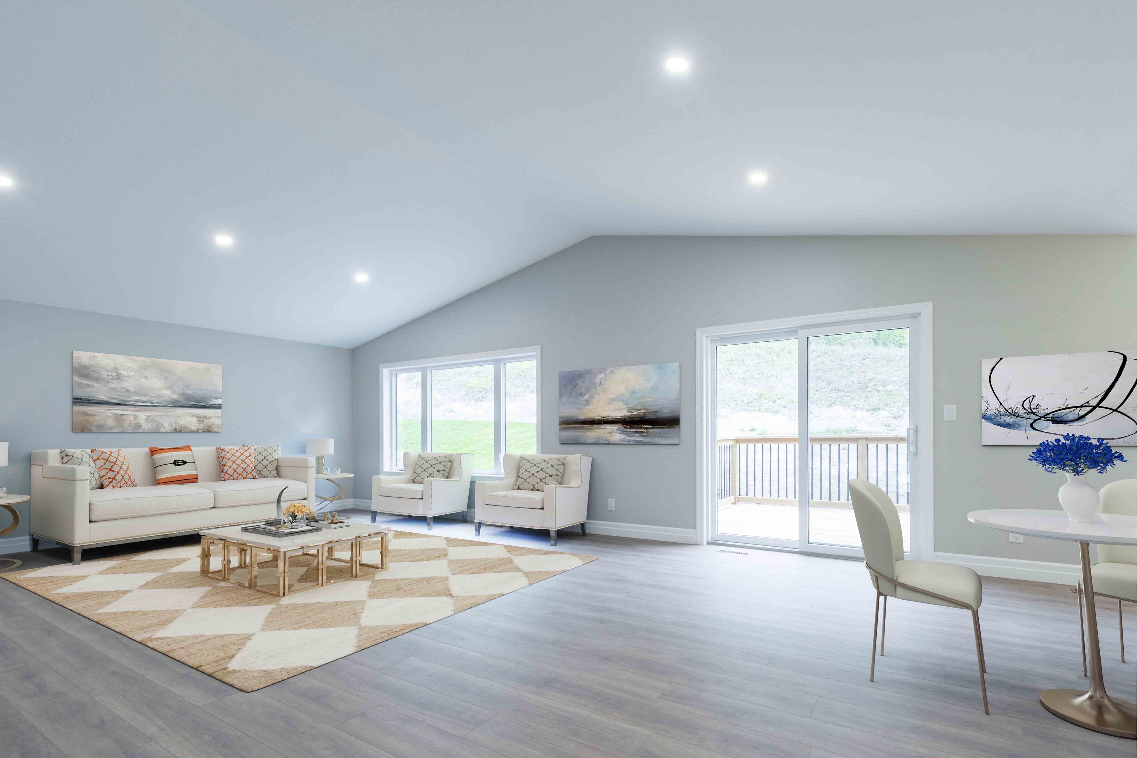 • Vaulted ceilings and modern finishes create an open feel.