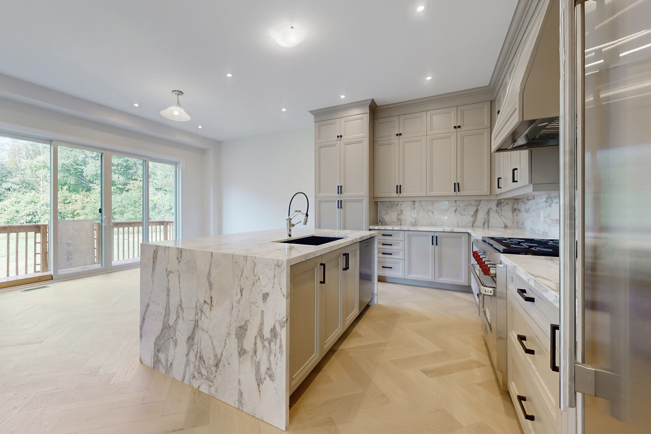 • Gourmet kitchen featuring high-end appliances and quartzite countertops.