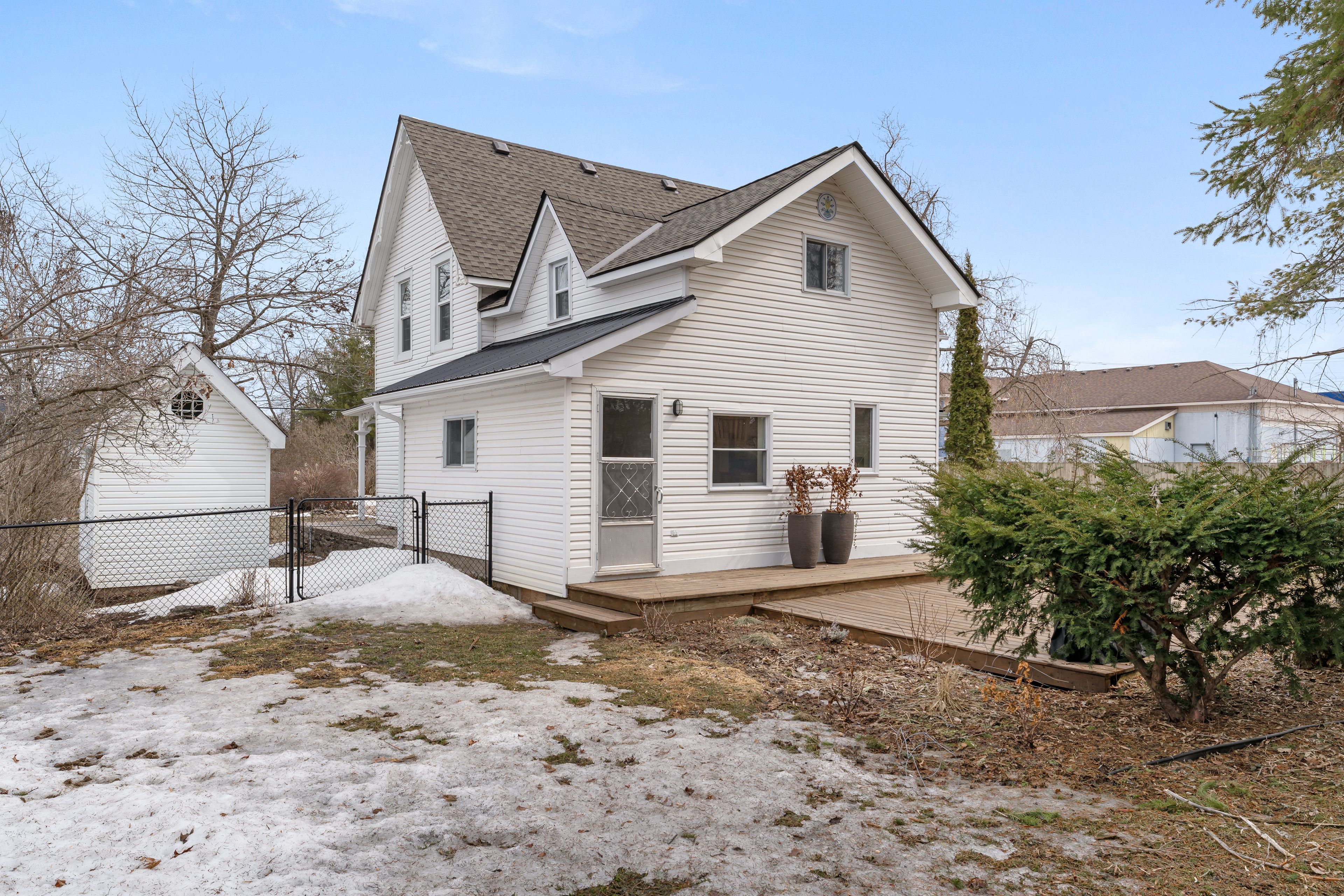 Step into the charm of this beautiful century home in the heart of bobcaygeon, perfectly located within walking distance to shops, restaurants, and all local amenities. Set on a large, fully fenced lot with a paved driveway, this two-storey home blends character with everyday functionality. The main floor welcomes you with a foyer leading into a versatile space currently used as an in-home salon-ideal for a home-based business or easily converted to suit your needs. A formal dining room offers the perfect setting for gatherings, with an adjoining space ideal for a playroom or home office. The spacious eat-in kitchen provides plenty of room for family living, while the inviting living room showcases the home's timeless character. A convenient main floor laundry area with access to the backyard and a 2-piece bathroom complete the level. Upstairs, you'll find a generous primary suite featuring its own 2-piece ensuite and potential for a large walk-in closet. Two additional well-sized bedrooms and a 4-piece bathroom offer comfortable accommodations for family or guests. Step outside to enjoy two rear decks overlooking the private, fully fenced yard-perfect for entertaining or relaxing. The property also features storage shed along with an additional outbuilding at the back, offering plenty of space for storage, hobbies, or future use. With a brand new shingle roof and eavestroughs completed in fall 2025, this move-in ready home is the perfect opportunity to enjoy in-town living with character, space, and convenience.