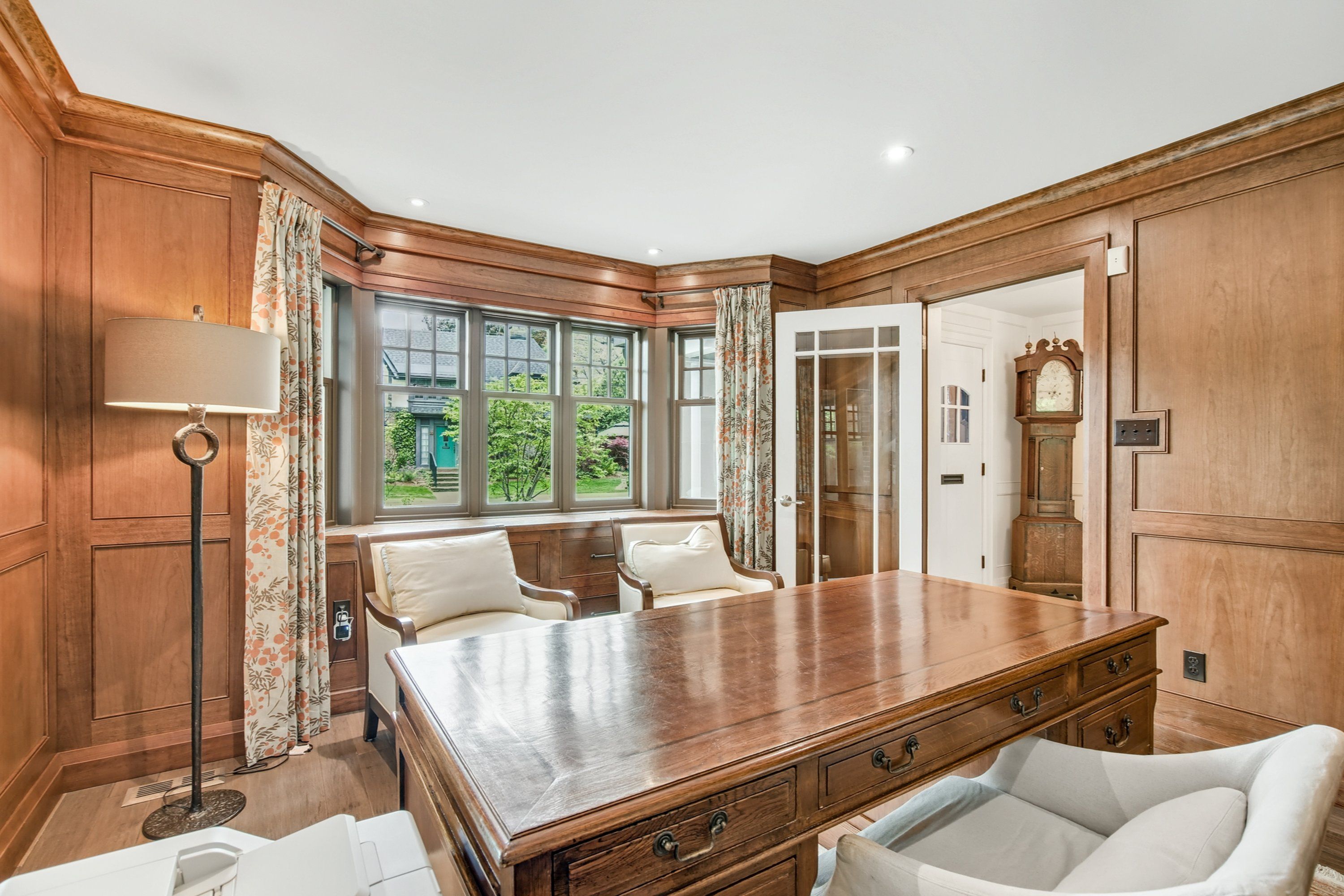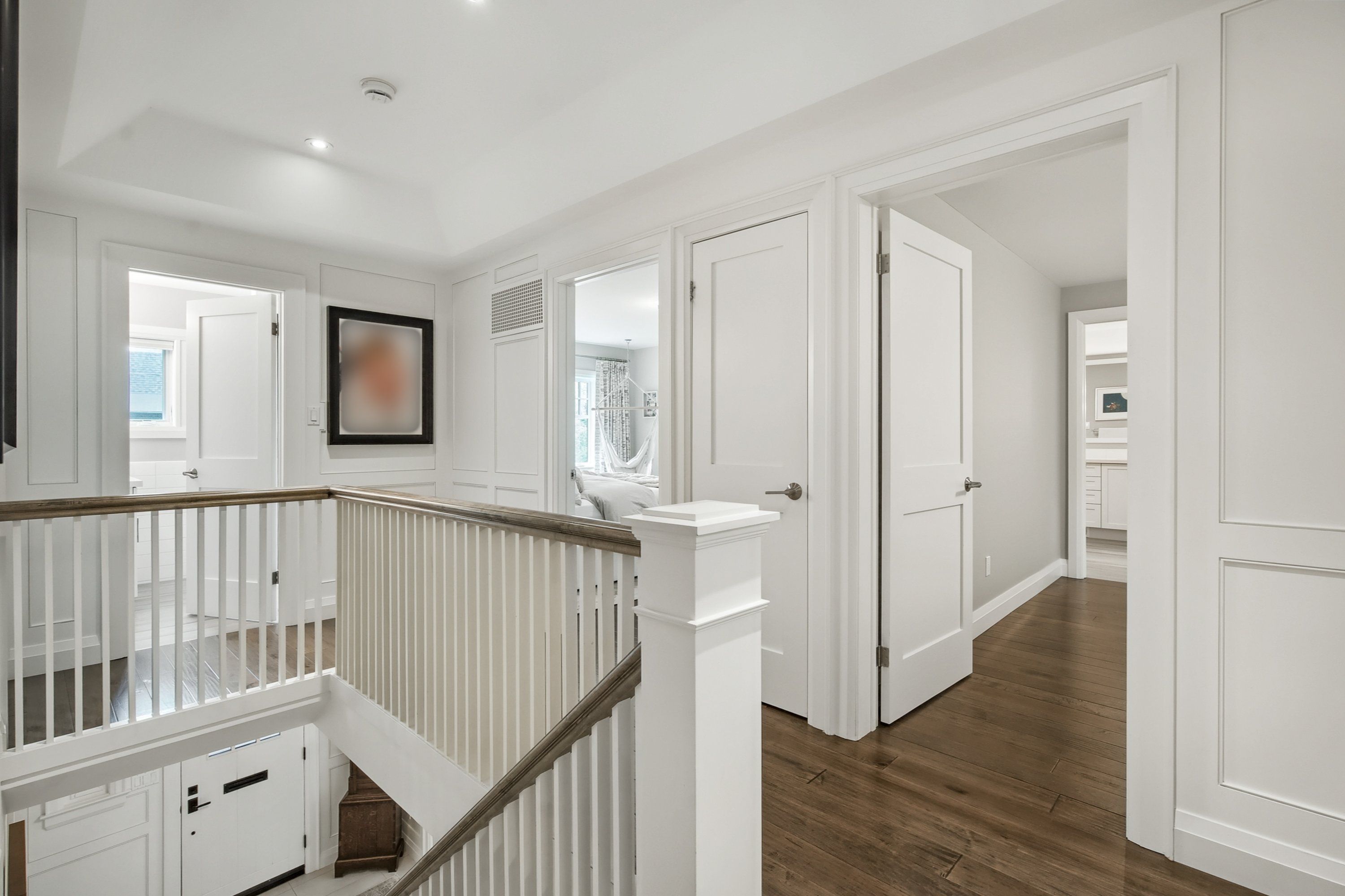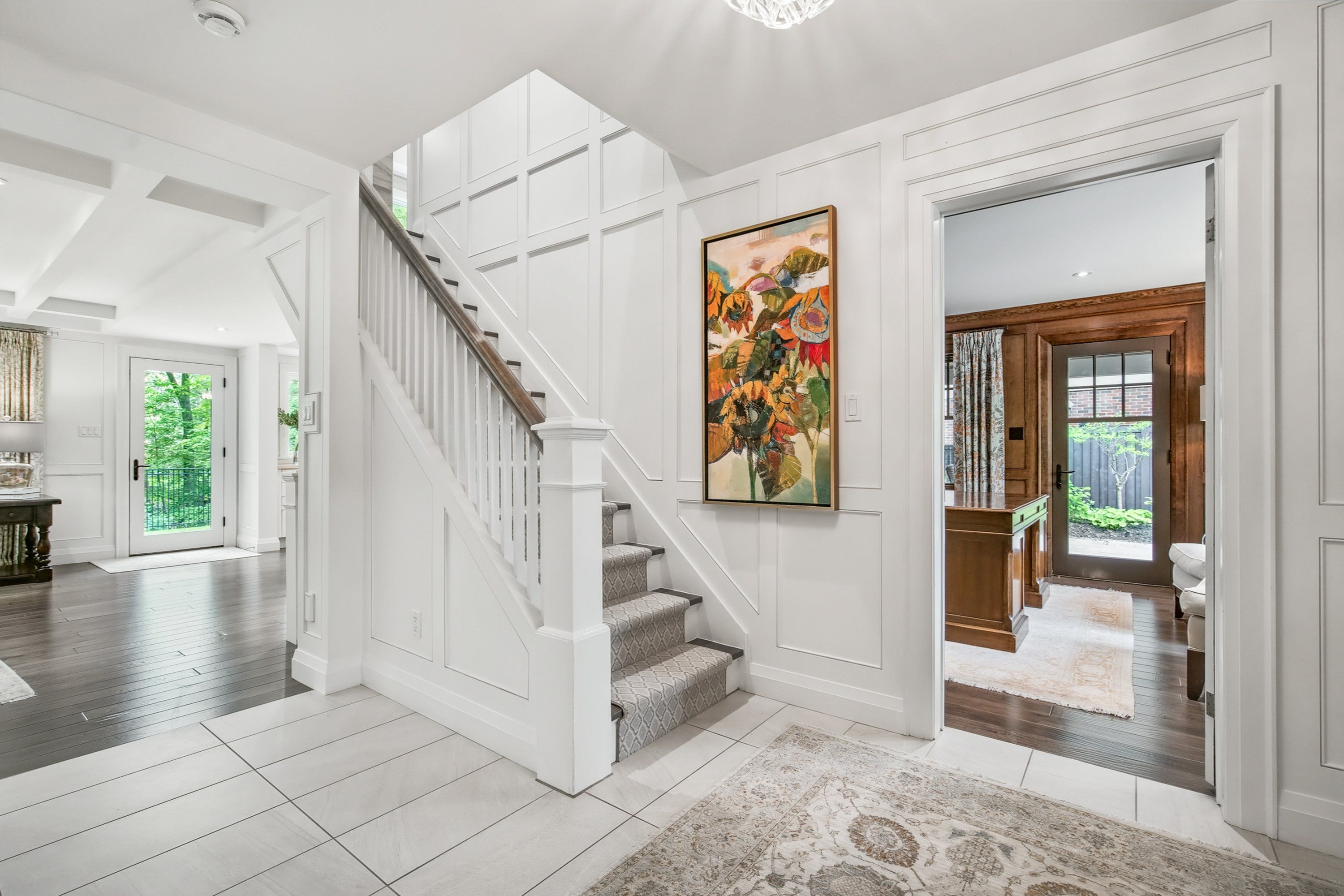 Welcome to unparalleled luxury and craftsmanship. Nestled in one of the city's most prestigious enclaves and backing onto the royal botanical gardens forest, this exceptional 5-bedroom, 5-bathroom residence offers over 4,100 sqft of refined living where nature meets timeless design. Thoughtfully curated throughout, the home features hand-selected finishes, custom millwork and premium kolbe windows and doors providing energy efficiency and beautiful forest views. The main level showcases a gourmet chef's kitchen with wolf, sub-zero and miele appliances, generous prep space, a large island with seating and an open layout flowing seamlessly into the living and dining areas framed by serene forest views. Also on the main floor is an executive office with a separate entrance to a covered porch and a spacious mudroom with heated floors, custom cabinetry and direct access from the tandem double-car garage. Upstairs, the tranquil primary suite features a gas fireplace, spa-inspired ensuite with heated floors and a walk-in closet. A second-floor laundry and heated flooring in every bathroom add everyday comfort. The lower level offers a guest suite, gym, rec/media room, kitchenette, rough-in for laundry and a separate entrance, all with heated flooring. Professionally landscaped gardens and multiple seating areas create beautiful outdoor spaces for relaxing or entertaining against the peaceful forest backdrop.