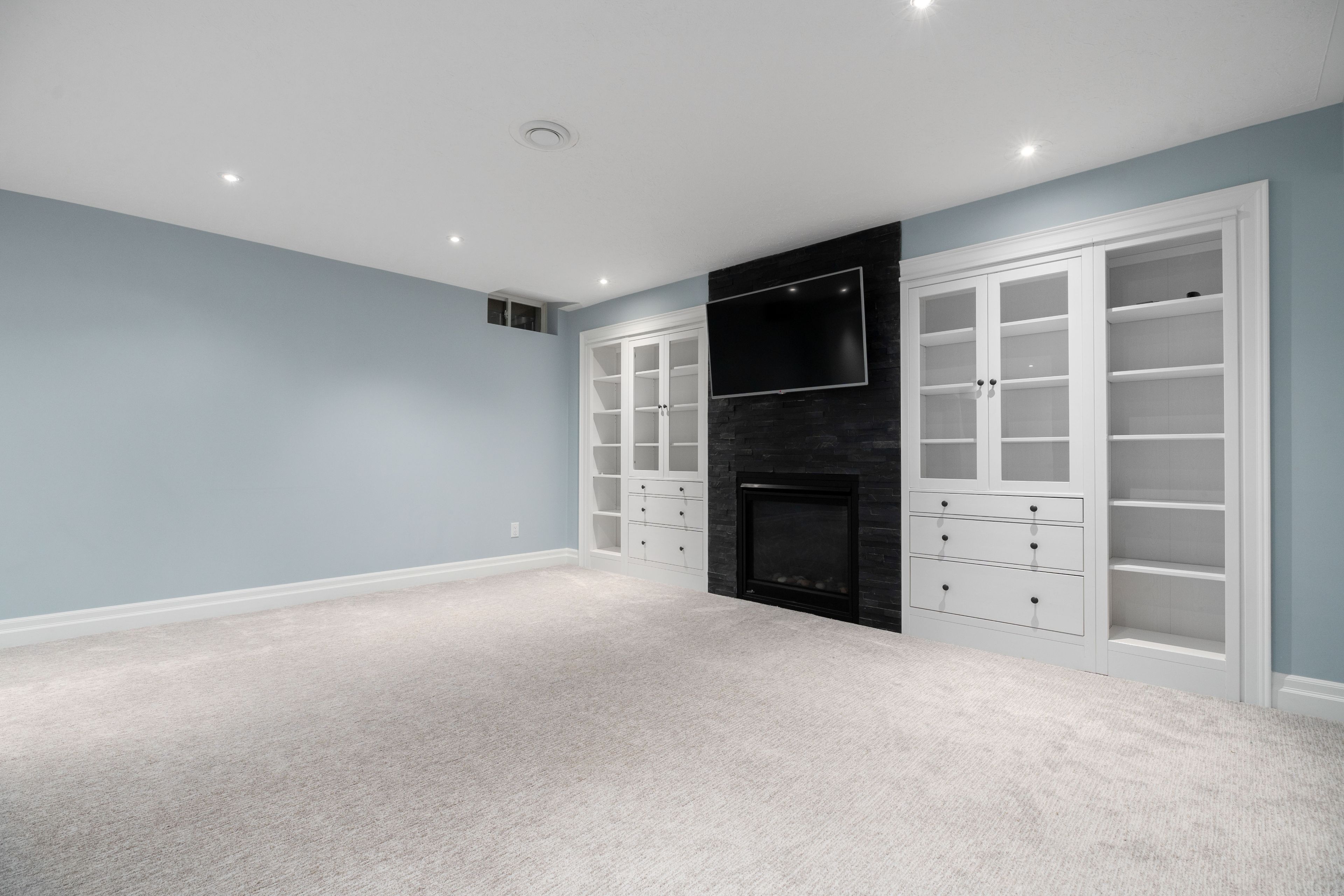 • Fully finished basement includes a gym, bedroom, and bathroom.