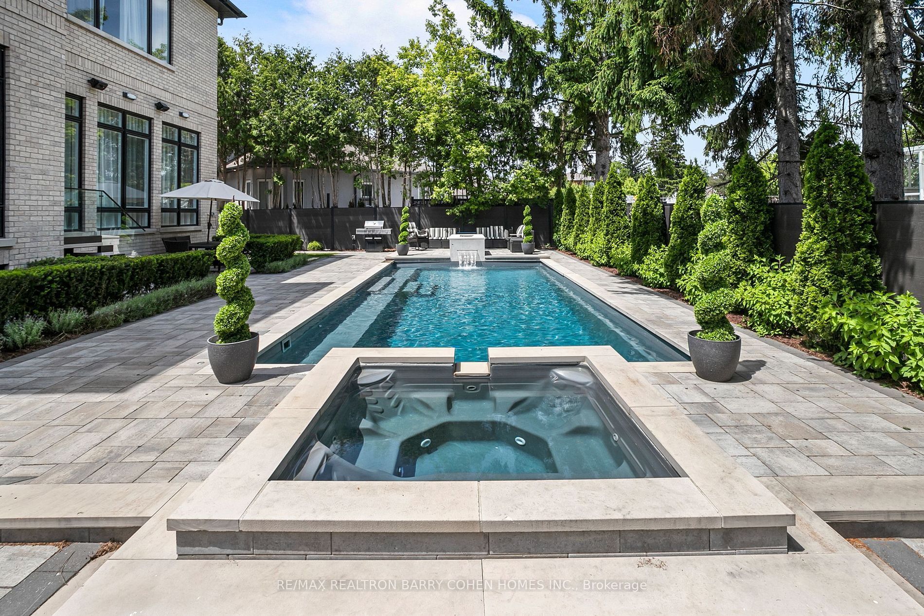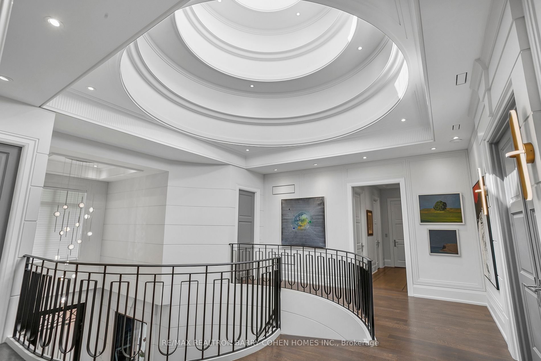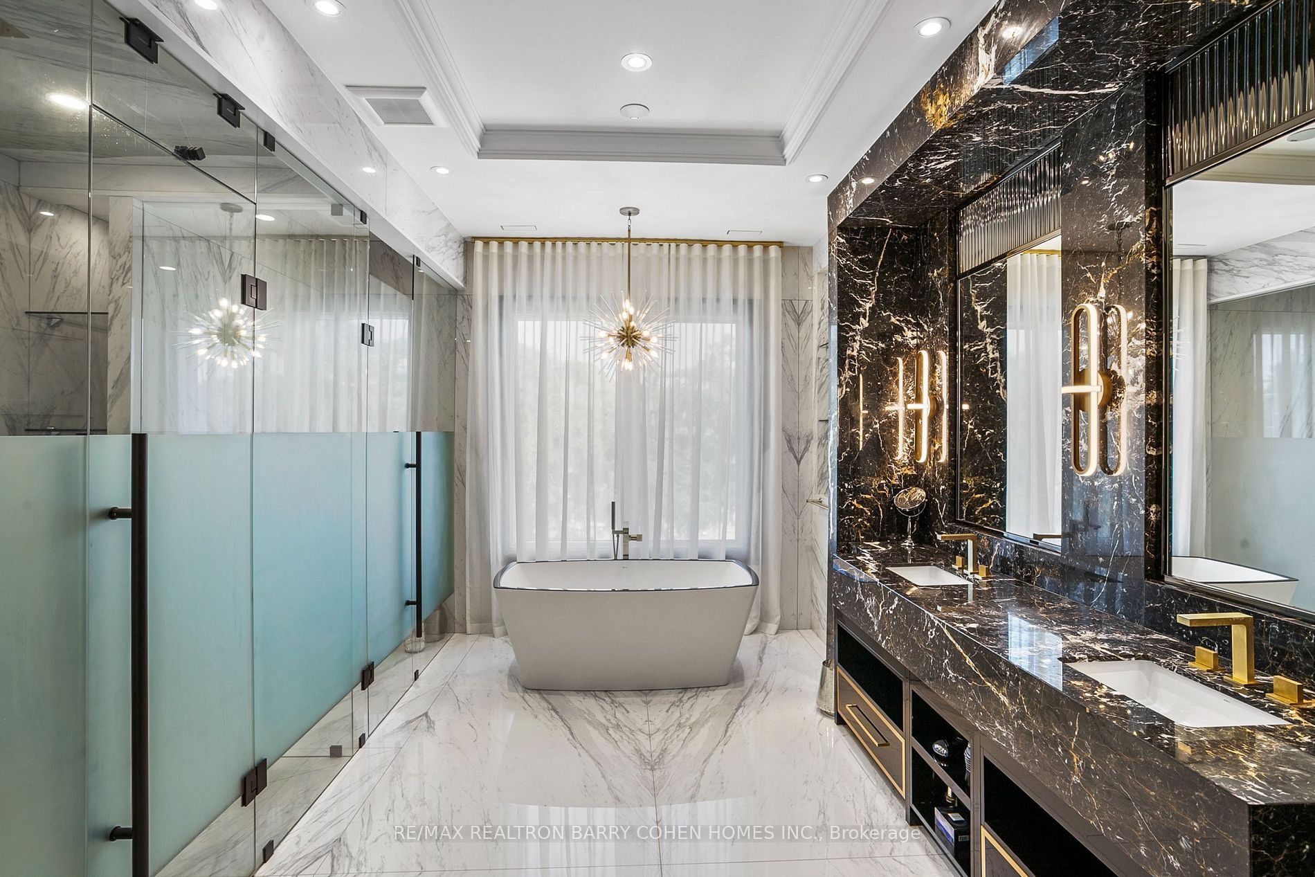 Save up to $250,000. 00 on luxury land transfer tax on this stunning custom built estate, crafted over 8,000 sqft. Of unparalleled living space at quiet crescent in prestigious south richvale local , this exceptional builder's own family residence exemplifies masterful craftsmanship, w/no expense spared in achieving ultimate elegance. Featuring 5+1 beds & 9 baths. The architecturally distinctive exterior is adorned w/indiana-cut limestone, spanning 9-car heated circular driveway & 3 heated garages. An impressive 22' grand entrance hall leads to exemplary principal rooms enhanced by high-end fixtures, natural oak floors, custom crown moulding, fibreglass-panelled & marble natural stone finishes t/o all 3 levels. The private office, enclosed by double glass drs & finished w/full custom wood panelling & b/i shelving, opens to an exquisitely appointed great room w/11' ceiling heights, an expanded linear gas fireplace, a b/i speakers system & w/o access to the terrace. The gourmet chef's kitchen showcases a spectacular marble countertop & backsplash, top-tier b/i appliances, custom cabinetry & premium hardware. The primary suite exudes grandeur w/12' coffered ceiling, a custom wall unit, fireplace & a boutique-quality walk-in closet featuring a central island & b/i makeup desk. The resplendent 7-pcs ensuite is crafted w/magnificent book-matched marble stone on the floors & walls, complete w/heated flooring & custom-designed his/hers vanities. 4 additional bedrooms feature b/i beds w/custom headboards, ensuites w/natural stone vanities, & 3 opulent w/i closets. The lavish entertainer's basement offers a recreation room w/heated flrs, integrated speakers, a steam fireplace, built-in bench seating, a custom-designed wet bar, & a glass wine rm. The gym includes its own washroom, mirrored wall, & beverage cooler. This functional basement walks out to a professionally landscaped backyard oasis.