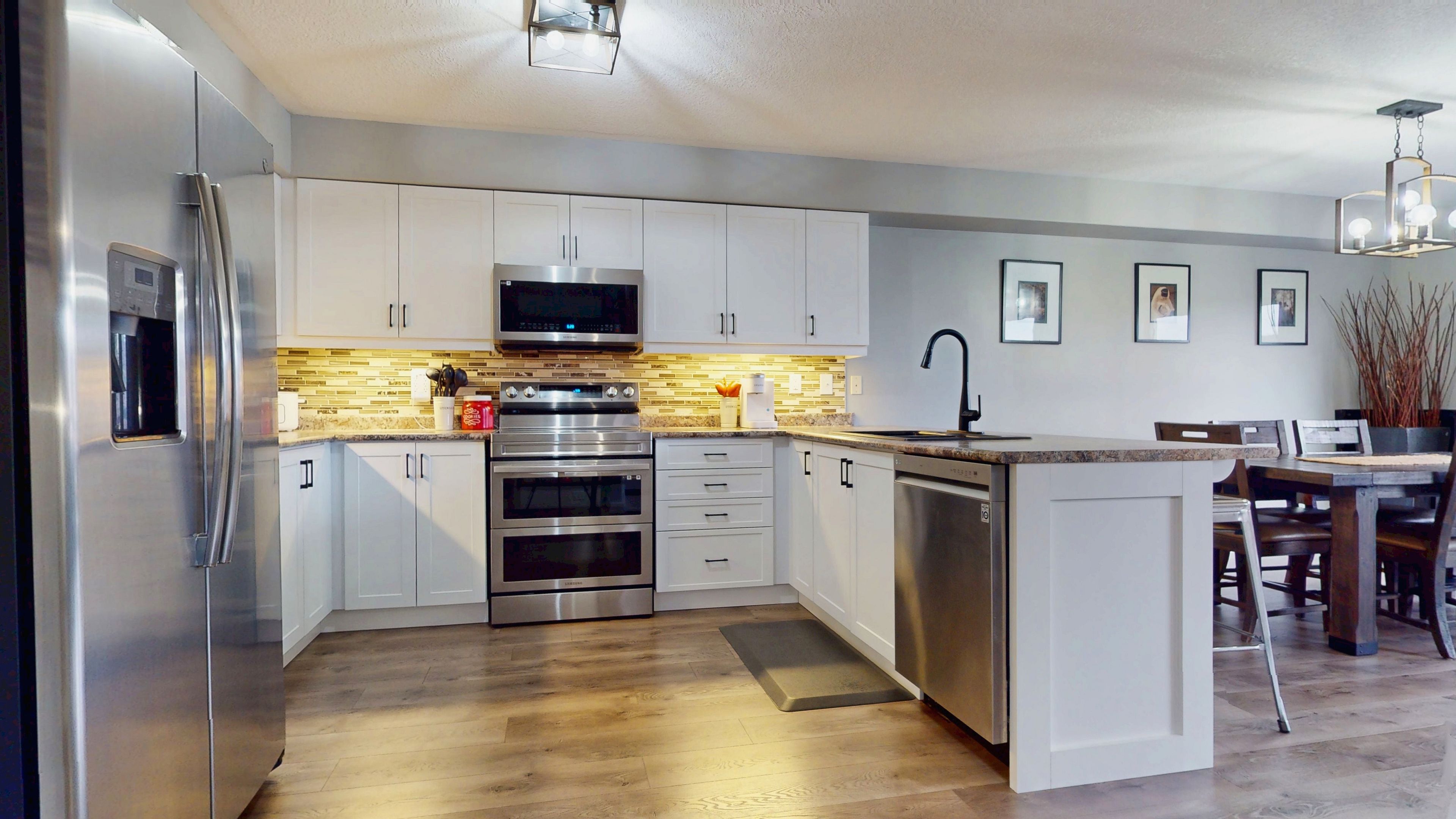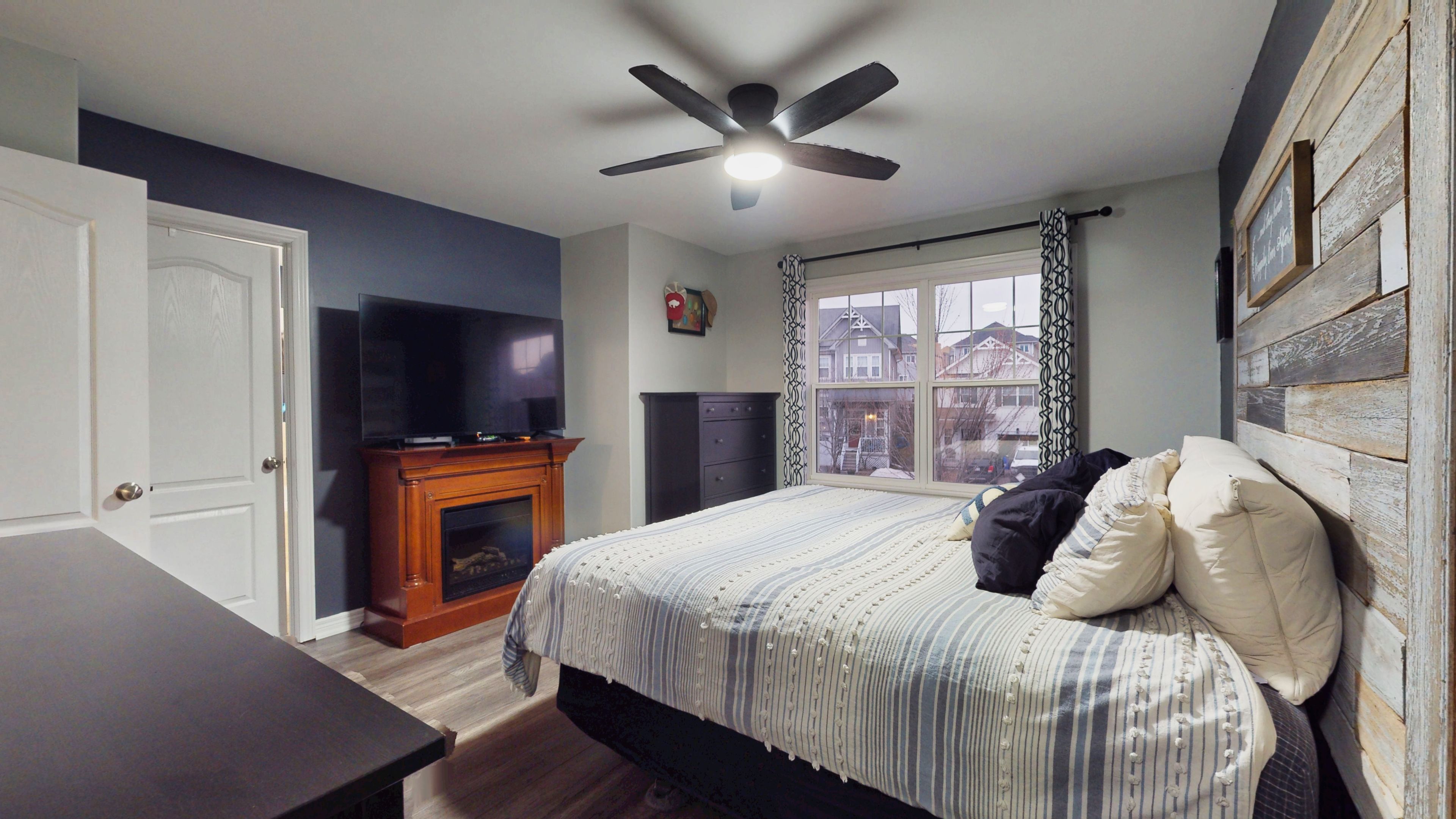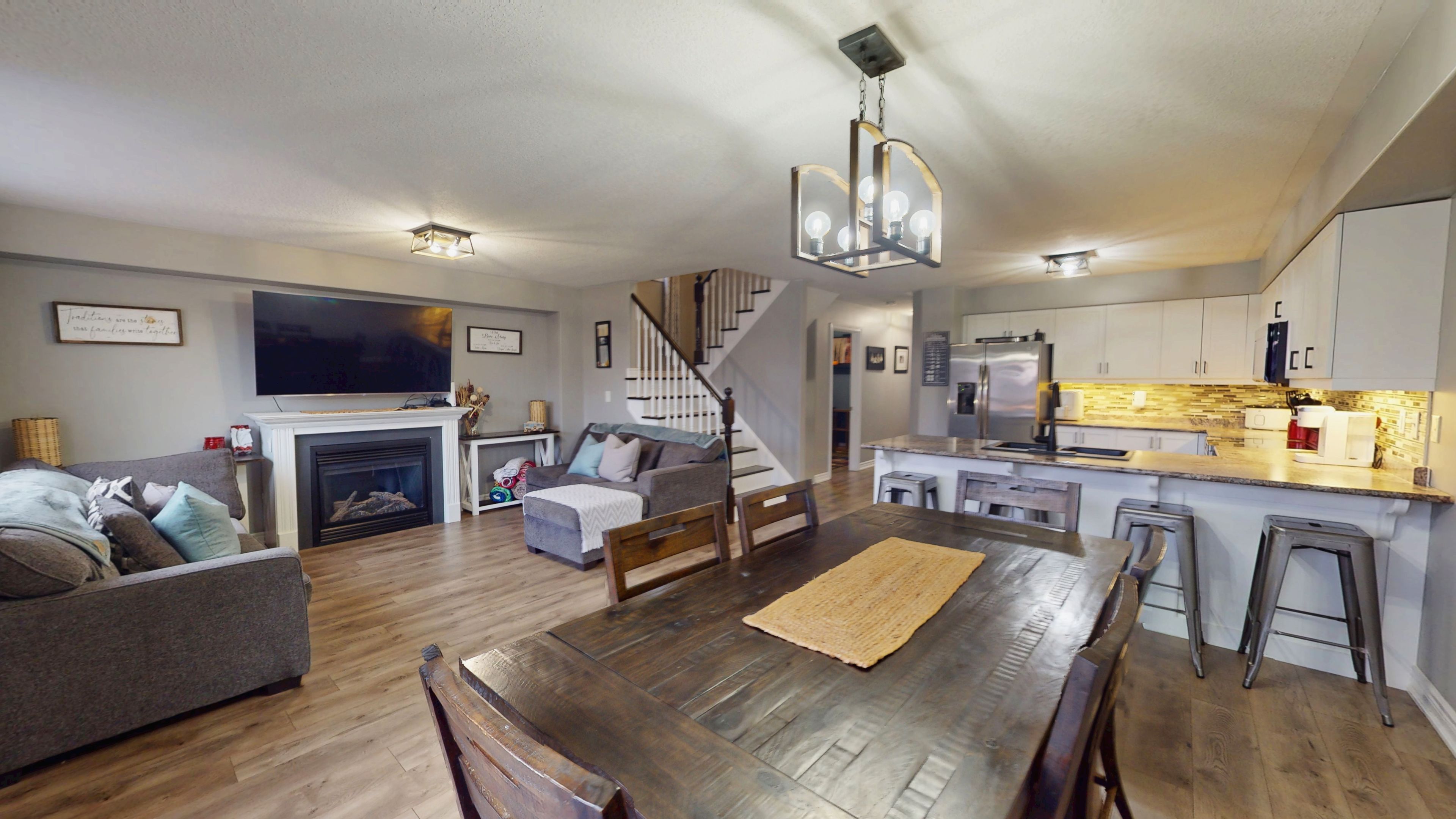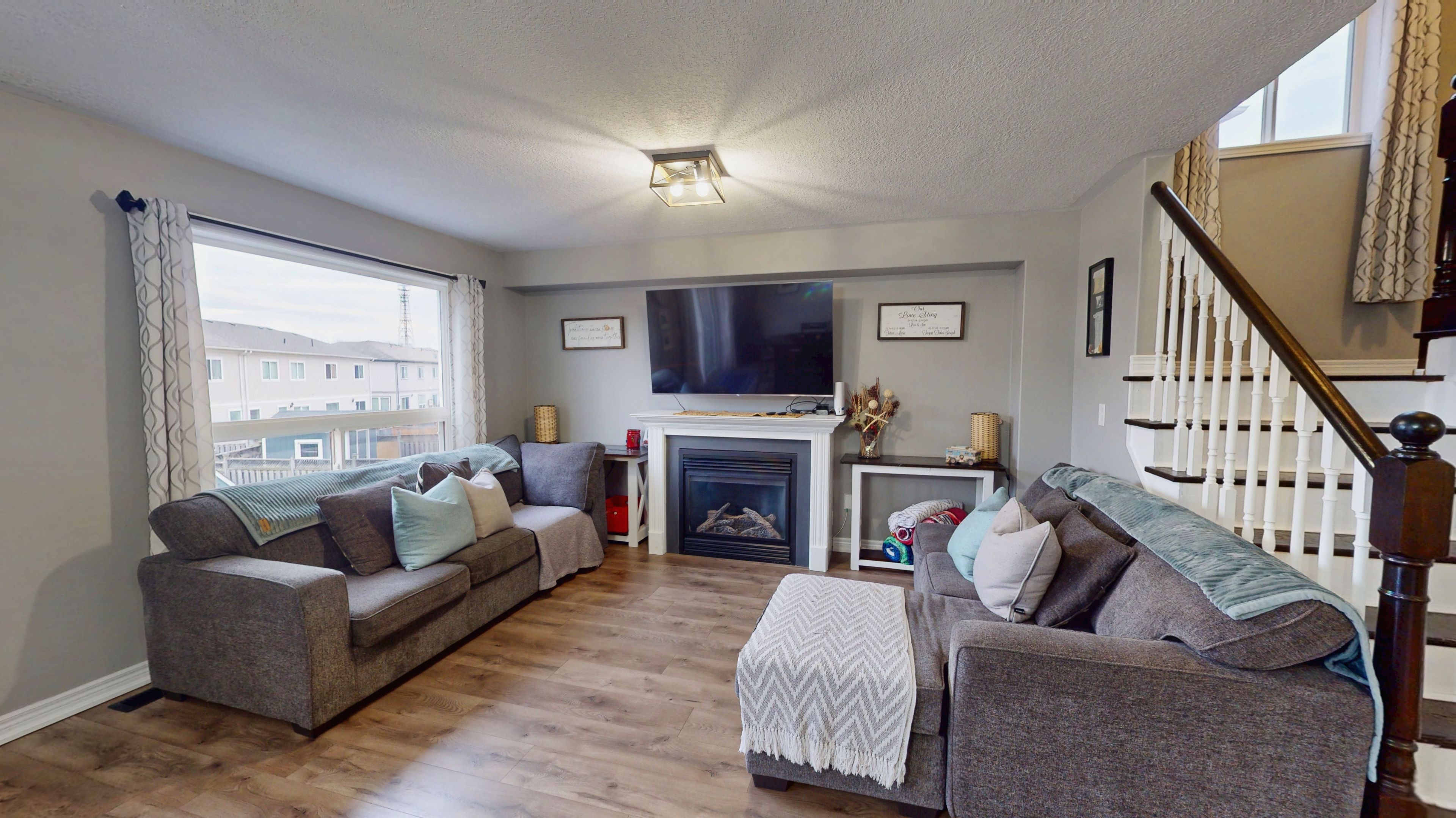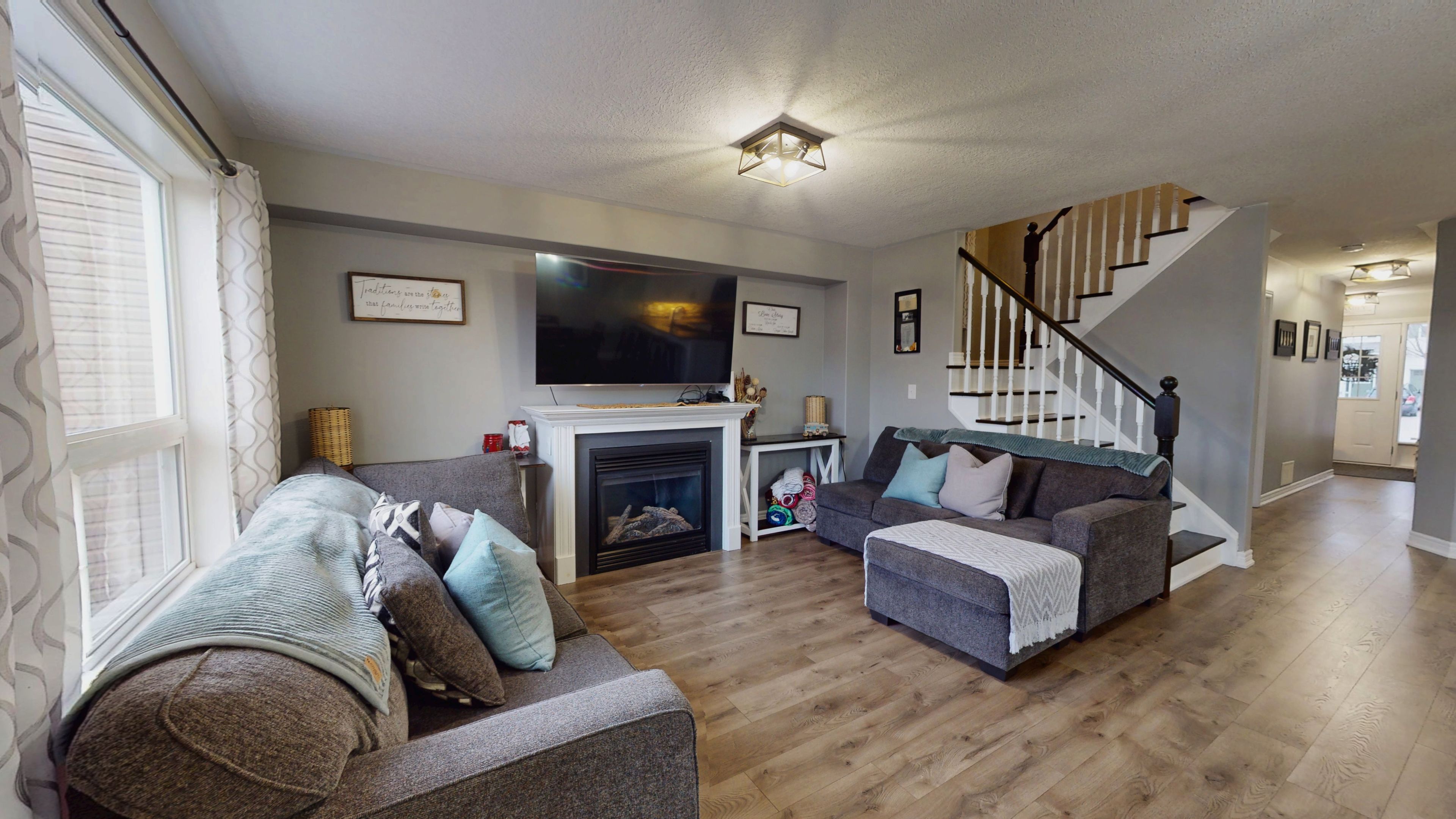• Open-concept main floor with a sleek kitchen and cozy gas fireplace.