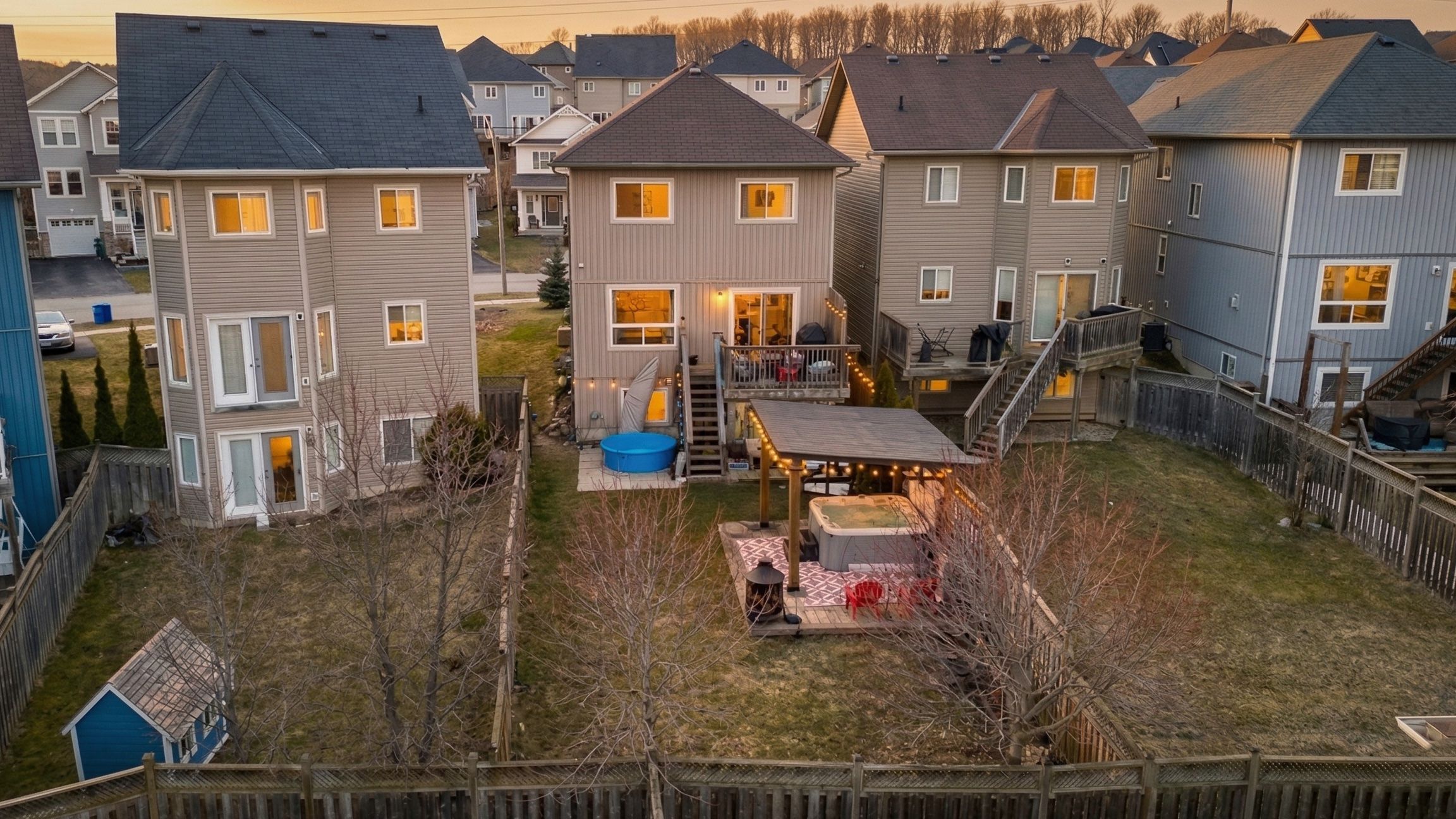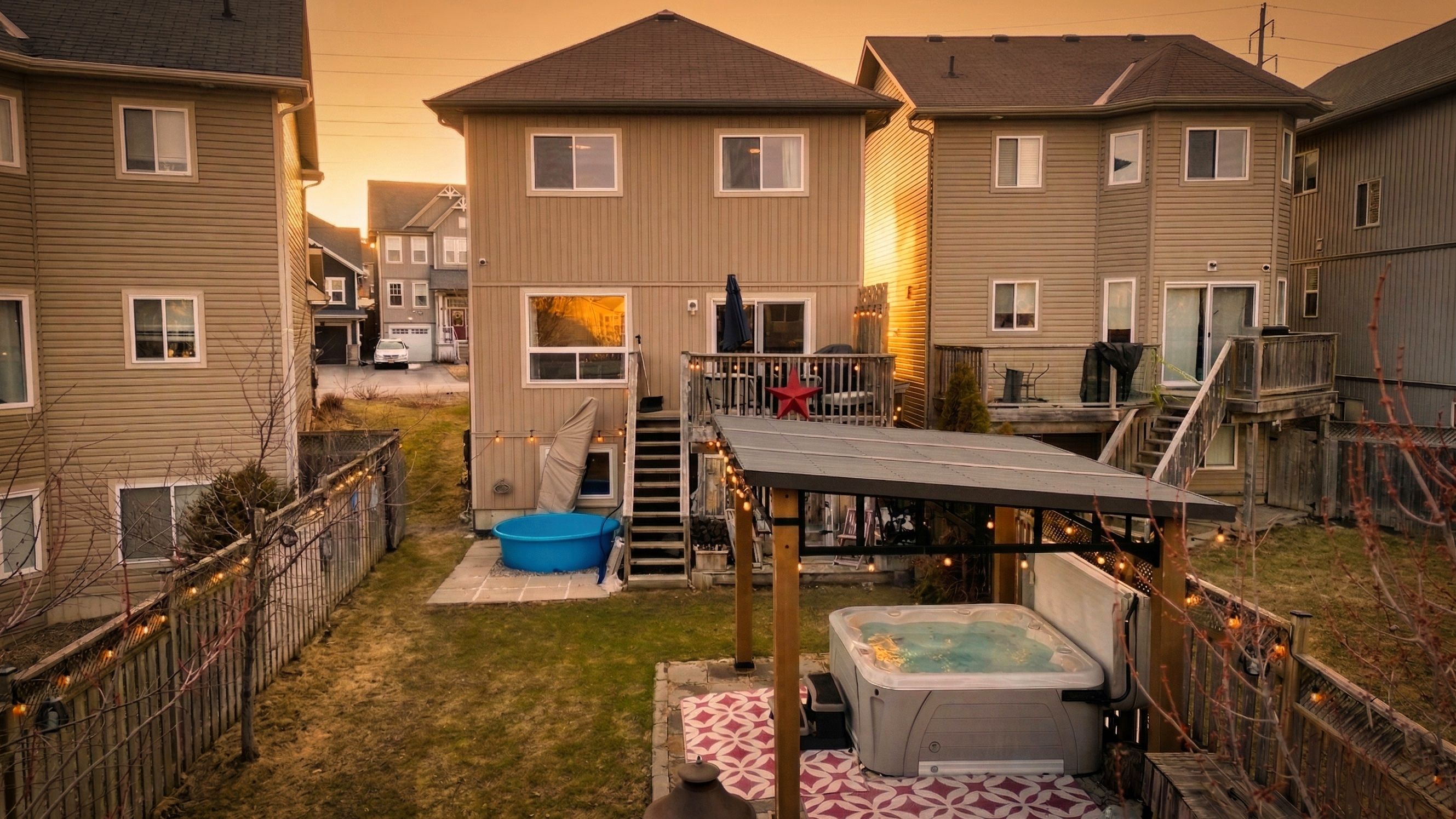 • Private deck and fenced backyard complete with a relaxing hot tub.