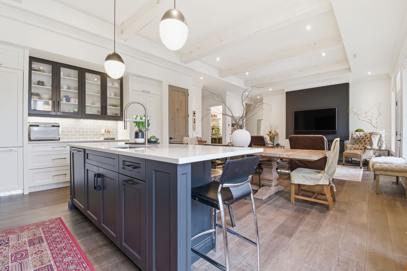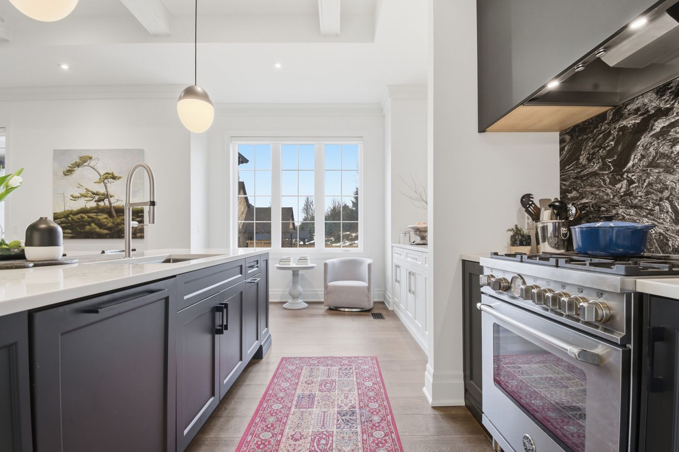• Gourmet kitchen features an oversized island and high-end appliances for cooking.