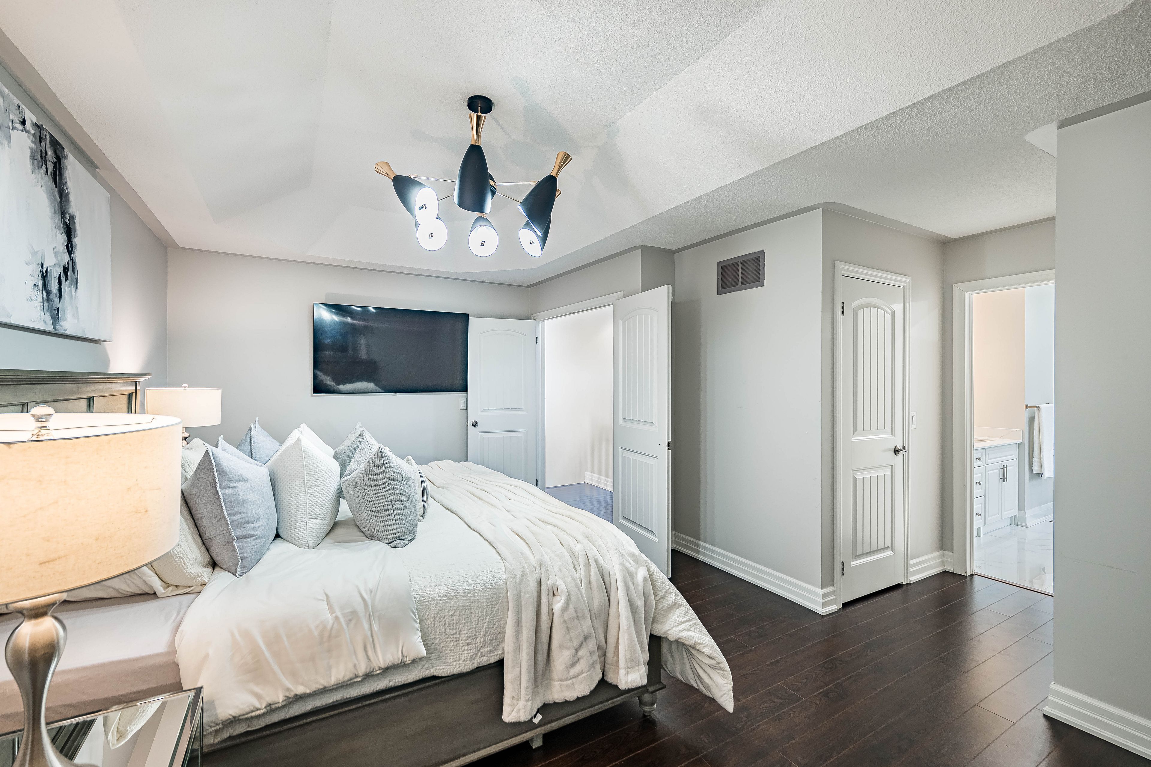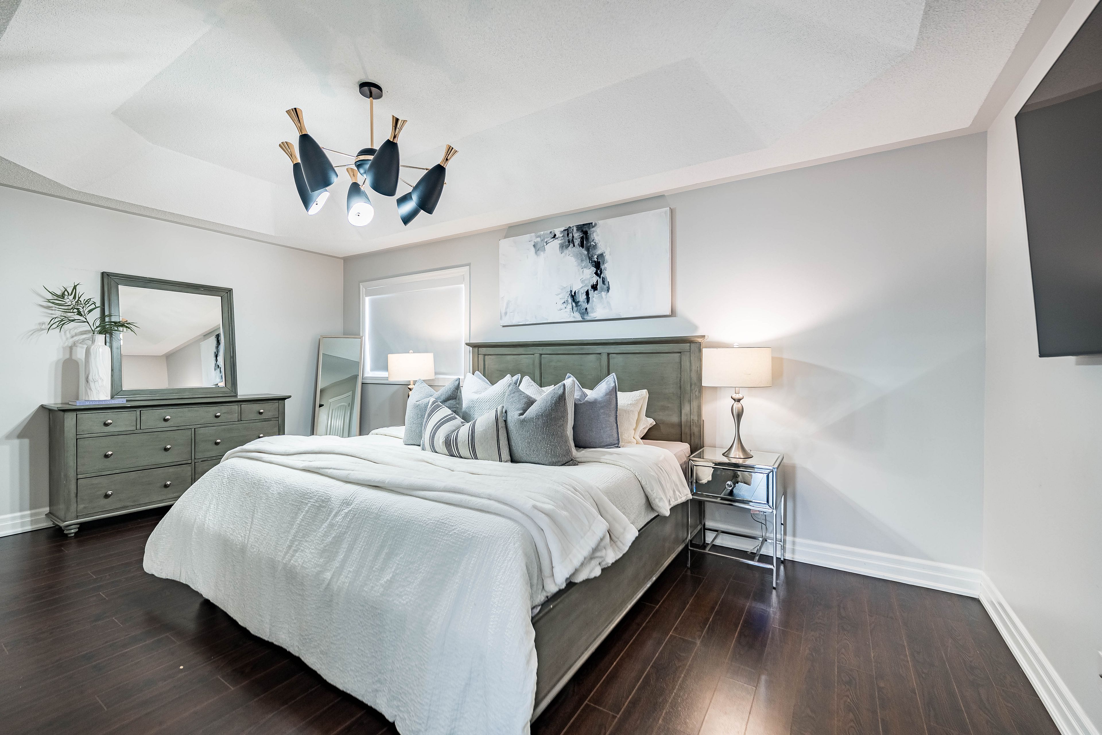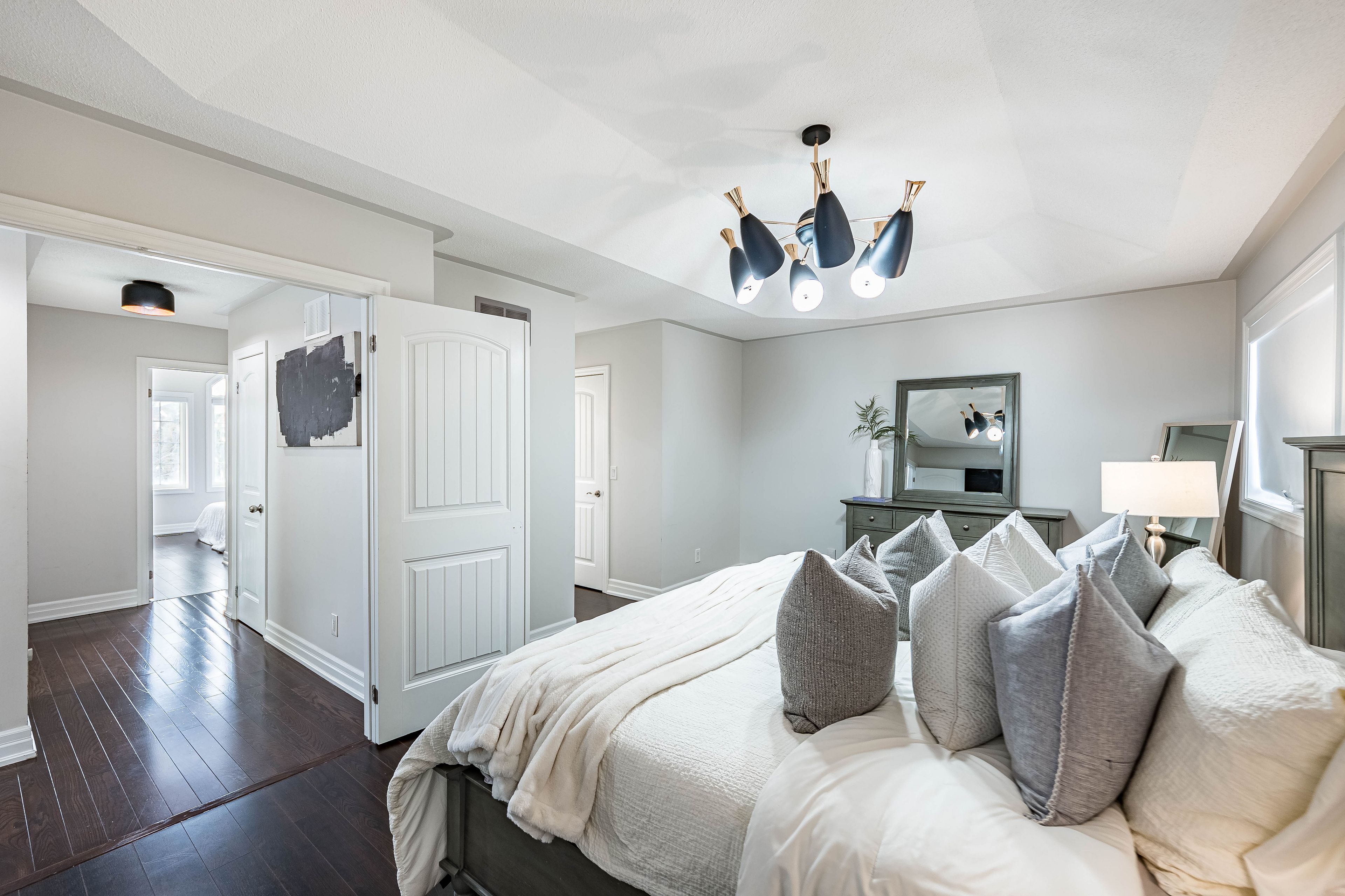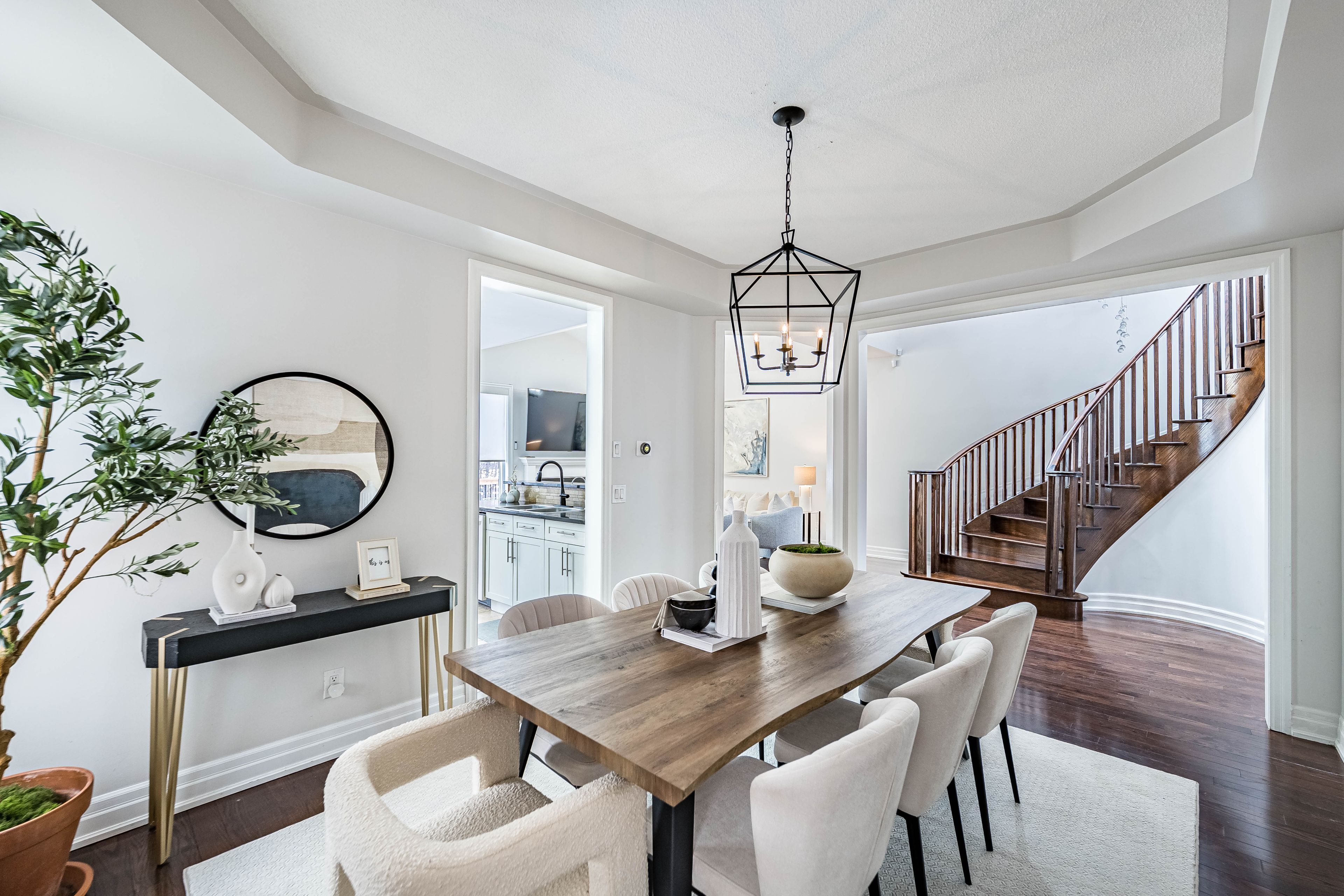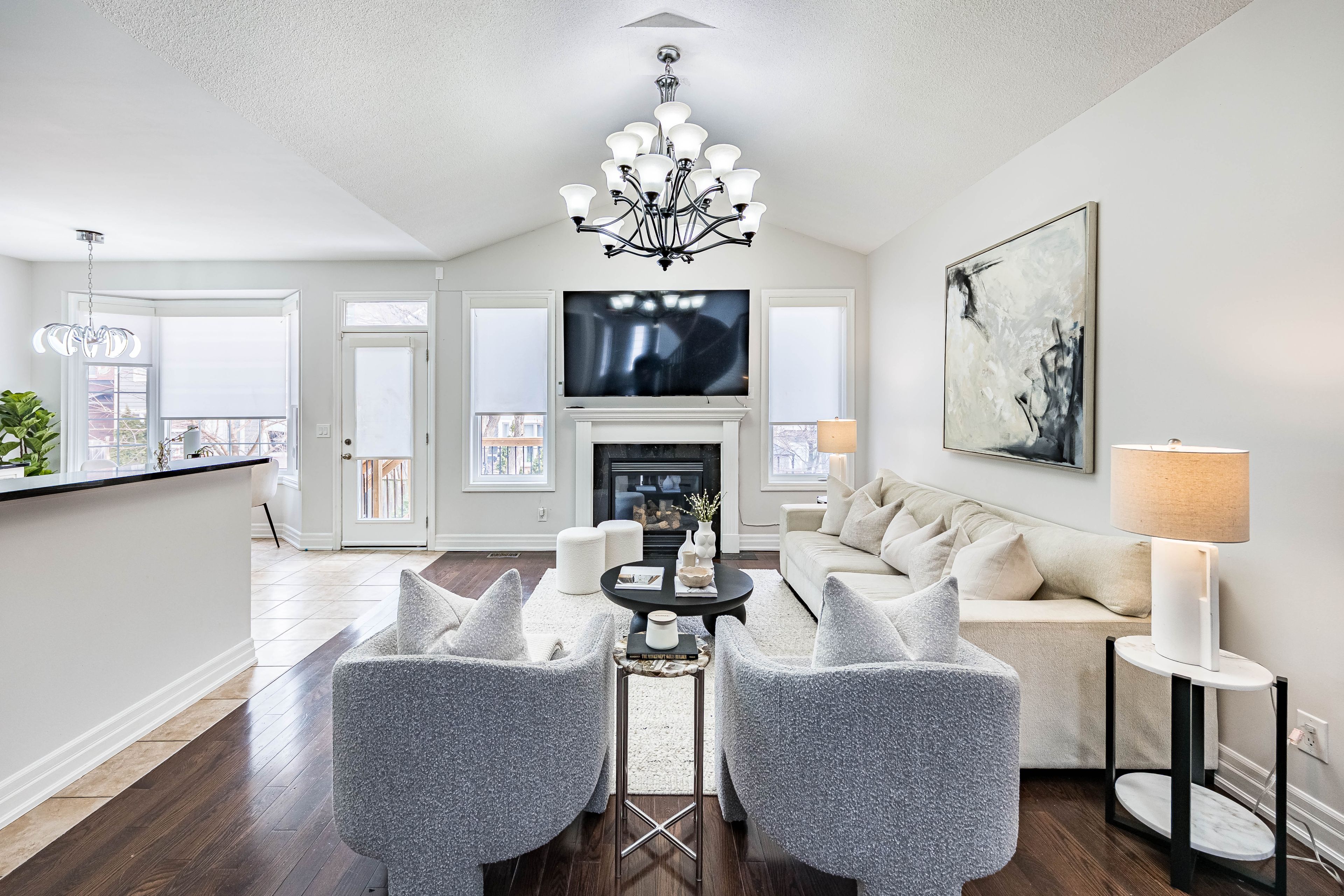 Stone, brick & stucco exterior set on a street lined with triple car garage homes. Located in the award winning traditions community by heathwood homes, this fully upgraded 3 bedroom, 3 bathroom home offers over 2,000 sq ft of refined living in one of milton's most family oriented neighbourhoods. Surrounded by parks, schools and scenic trails, and just minutes to the sherwood community centre and the niagara escarpment, this location blends natural beauty with everyday convenience. With soaring ceilings and luxury finishes throughout, this prestigious home showcases thoughtful renovations & elegant design. From the moment you enter, smooth cathedral ceilings above the staircase & impressive 9 ft ceilings create a bright, open atmosphere. The separate dining room features an elegant tray ceiling. The open concept main floor offers a spacious great room with vaulted ceiling & cozy fireplace, seamlessly connected to a sleek kitchen with crisp white cabinetry, granite countertops, tile backsplash, extended cabinetry and breakfast bar. Walk out to a beautifully landscaped backyard complete with a brand new deck. Up the curved hardwood staircase, oversized windows flood the home with natural light. The primary retreat features vinyl plank flooring, his and hers walk in closets, a tray ceiling, and a newly renovated spa inspired ensuite with a deep soaker tub, frameless glass walk in shower and double vanity. All washrooms have been tastefully updated with luxurious finishes. The fully finished basement (2022) provides exceptional additional living space with laminate flooring, pot lights, egress windows and rough ins for a future kitchen and bathroom, creating excellent in law suite potential. Situated in milton's sought after scott neighbourhood, this home is steps to scenic walking and biking trails, charming local cafes, parks, and the vibrant shops and restaurants of downtown milton, offering an exceptional lifestyle in one of the town's most desirable communities.