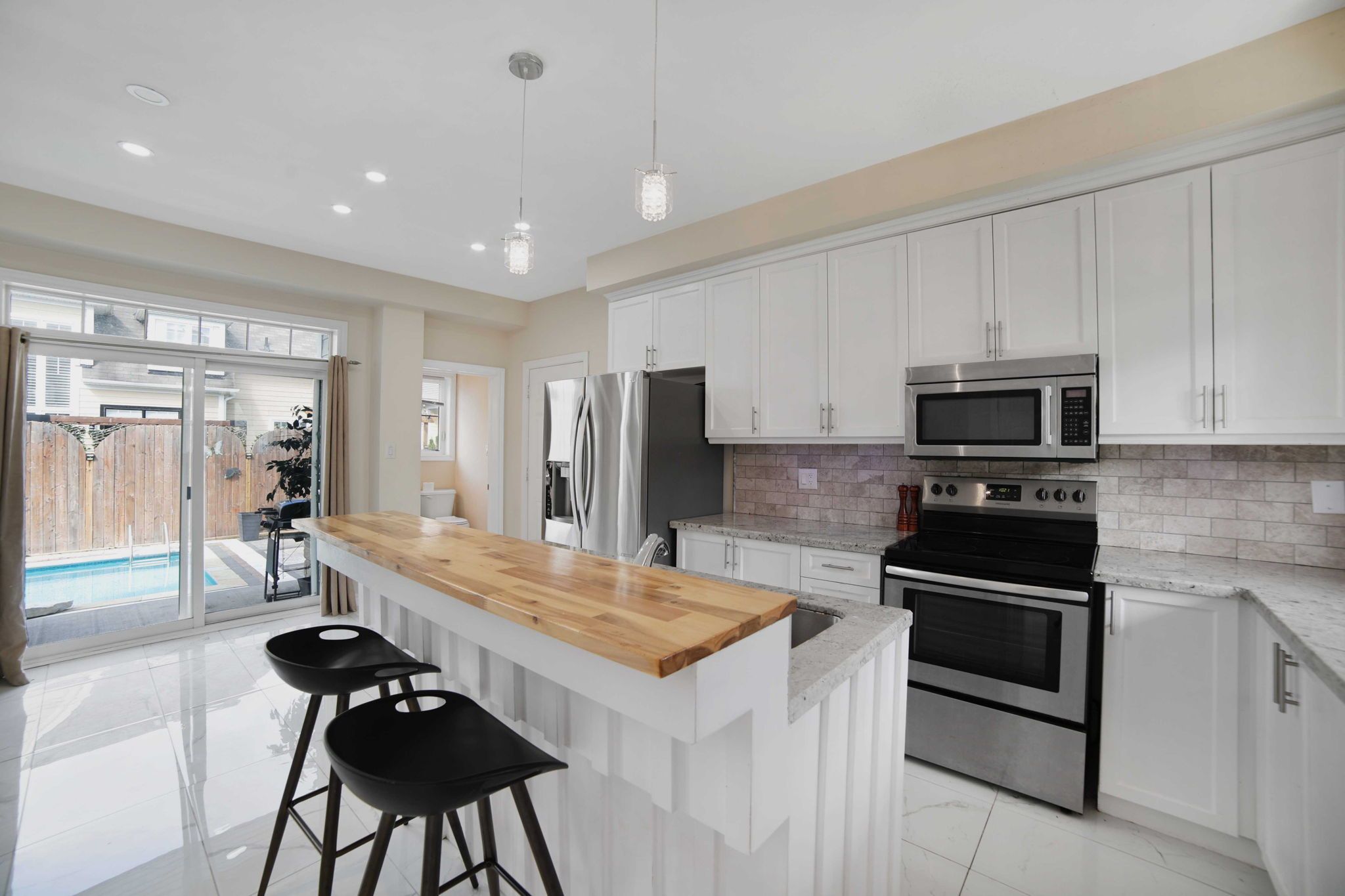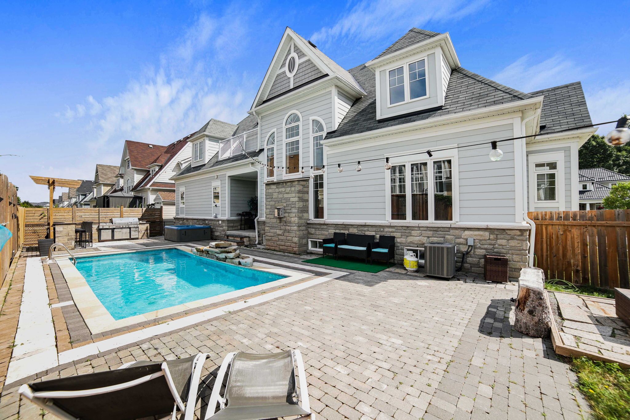 Luxurious living with backyard oasis in waterfront community. Welcome to this exceptional 6-bedroom, 4-bathroom detached bungaloft, where timeless elegance meets modern luxury in an exclusive waterfront enclave. Designed with soaring ceilings, a main floor primary suite, and high-end finishes throughout, this home offers an airy, open-concept layout ideal for sophisticated living and entertaining. Step outside to your own private backyard retreat, featuring an inground heated pool, hot tub, and a fully equipped outdoor kitchen, perfect for summer gatherings. A fully finished basement offers versatile space for rental income, airbnb potential, or extended family living. Just steps from the lake, scenic trails, and the marina, this is refined coastal living at its finest. A rare opportunity to enjoy comfort, style, and convenience inside and out.