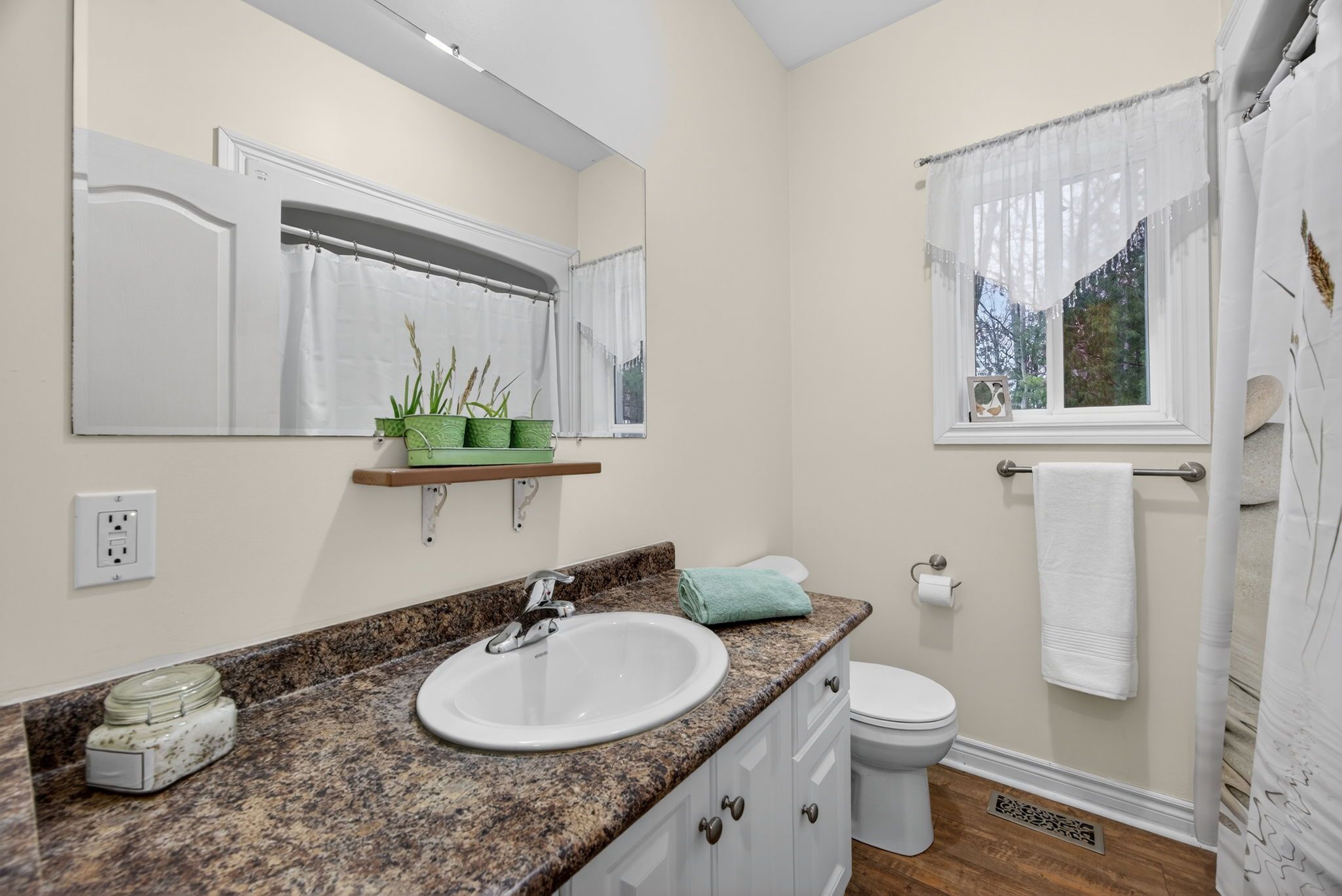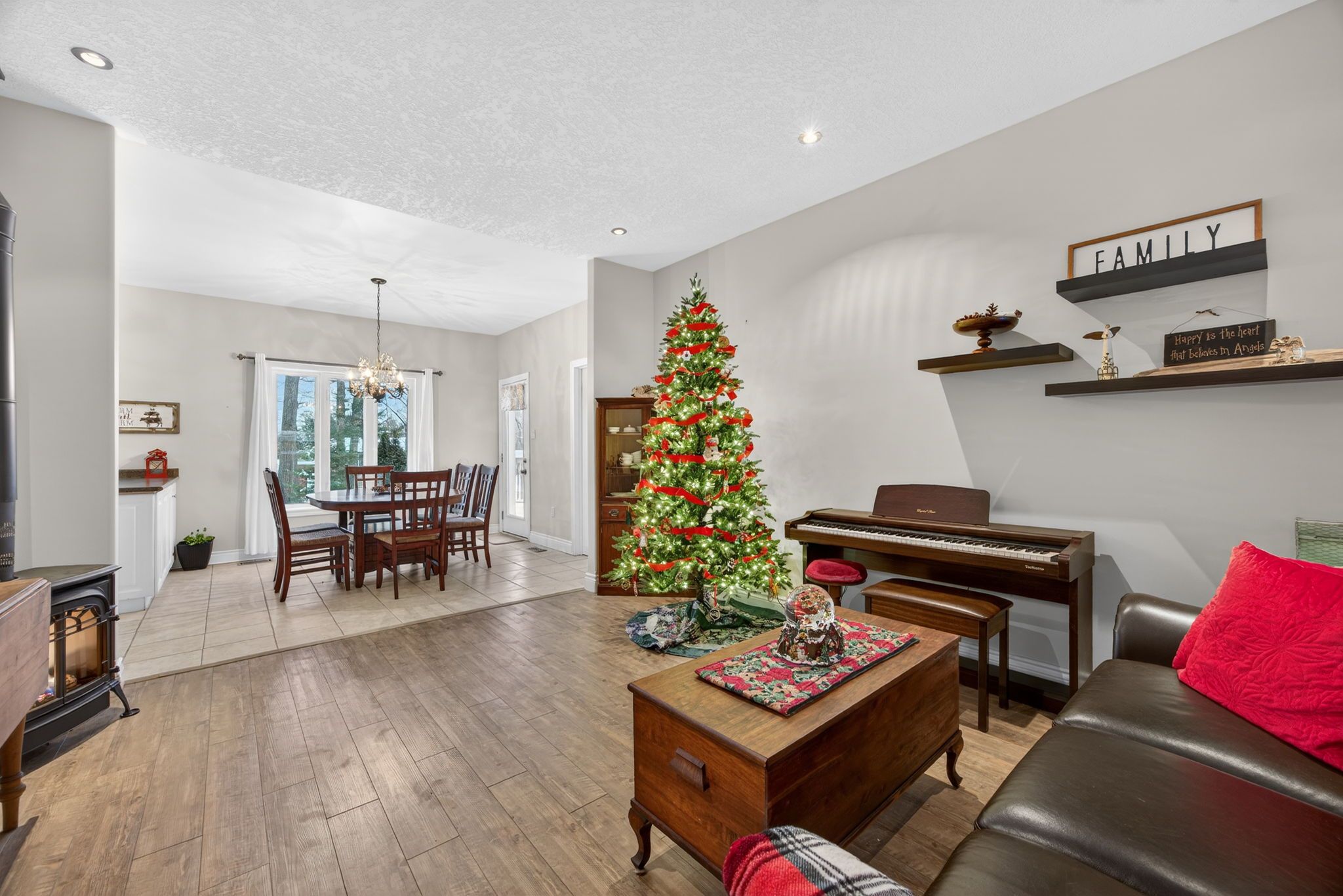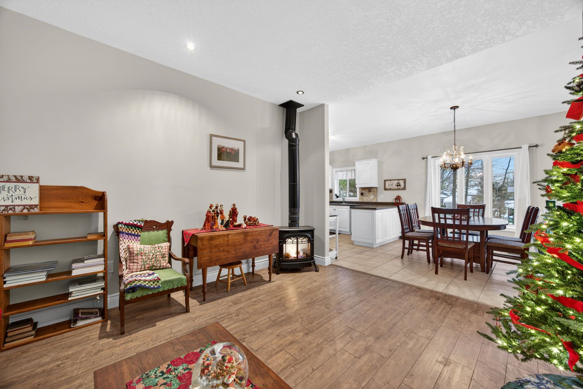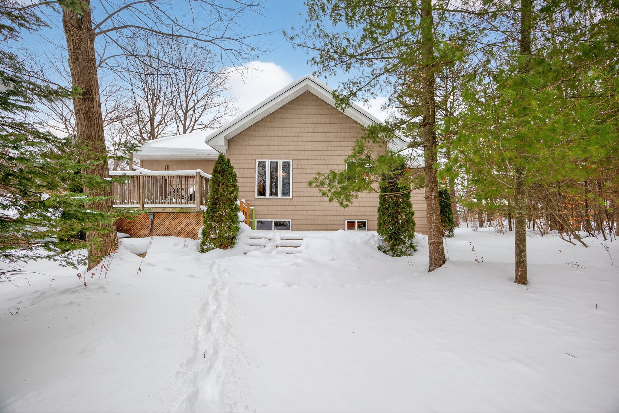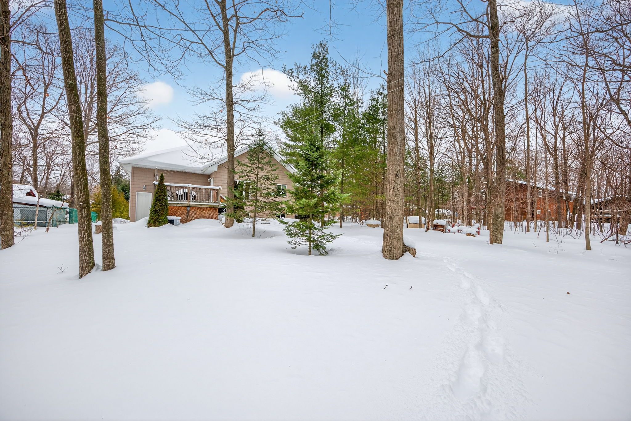 Welcome to this beautifully maintained 5-bedroom bungalow offering four seasons of relaxed, nature-focused living just steps from georgian bay. Enjoy a functional main level with 3 bedrooms and 2 full bathrooms, including a spacious primary suite with walk-in closet and ensuite. The open-concept living, dining, and kitchen space features a warm gas fireplace and a walkout to a private back deck and patio, perfect for morning coffee or hosting friends. The fully finished lower level adds incredible flexibility with 2 additional bedrooms, two large family rooms, and a rough-in for a third bathroom-ideal for multigenerational living, hobbies, or entertainment. Built in 2007 and updated with newer flooring and paint throughout, this home includes bell fibe high-speed internet, gas forced air heat, central air (both brand new august 2025), paved driveway, landscaping, inside entry from the oversized garage, and main floor laundry for everyday convenience. The owned gas hot water tank and municipal water deliver peace of mind. Located just a short stroll to sandy cove beach and surrounded by multiple public beaches along georgian bay, this home offers year-round enjoyment with beach walks in winter and summer, nearby simcoe county forested trails for biking and hiking, and ski hills within an easy drive. Close to local delis, bakery, restaurant, lcbo, outdoor skating rink, parks, and ste-croix elementary school (on a bus route for this one and all other schools in the district), plus only 20 minutes to big box shopping and grocery stores and 90 minutes to the gta. Whether you're a young family seeking space, or retirees craving main-floor living and a peaceful lifestyle, this inviting home blends comfort, nature, and convenience in one exceptional package.