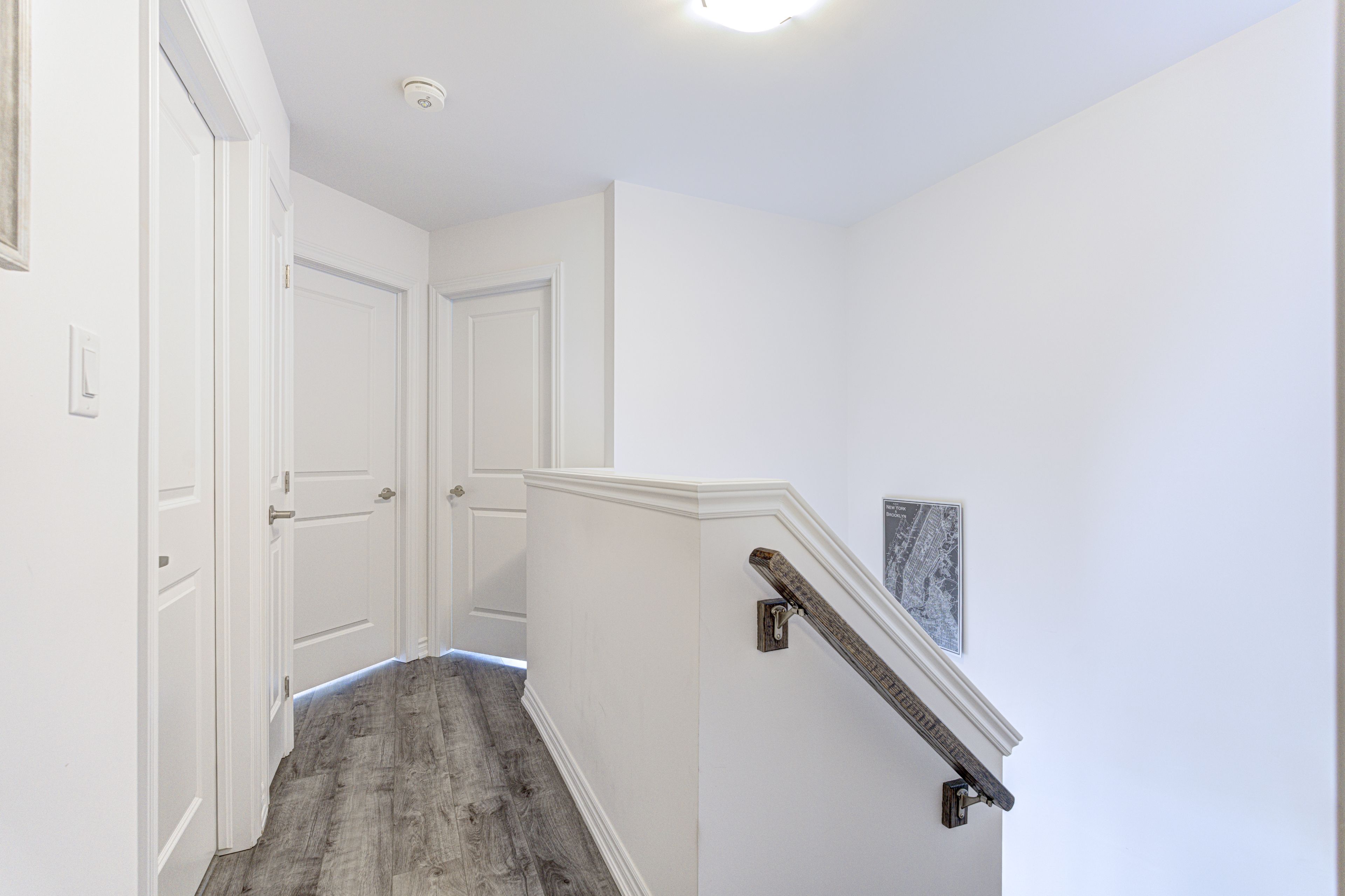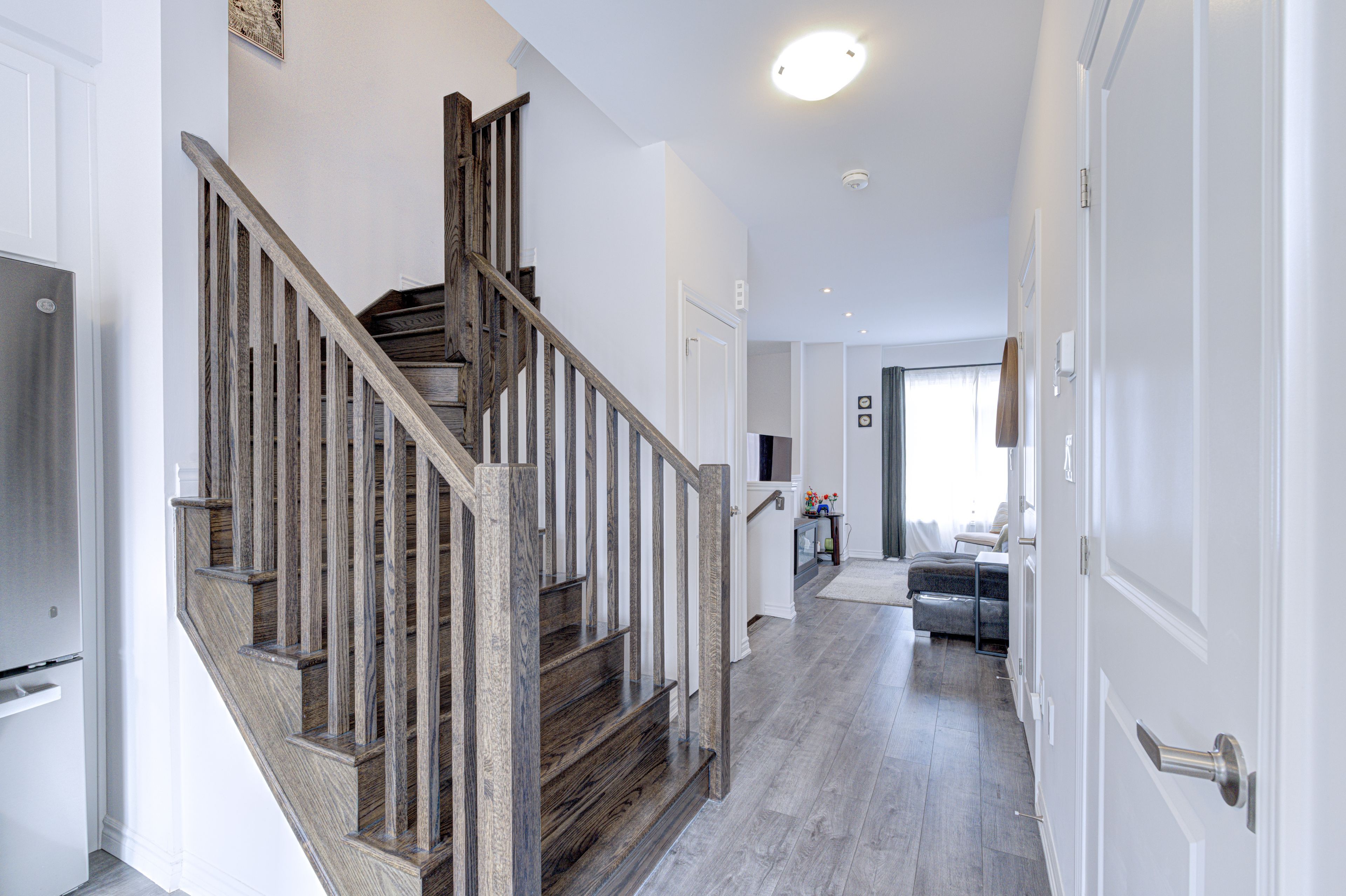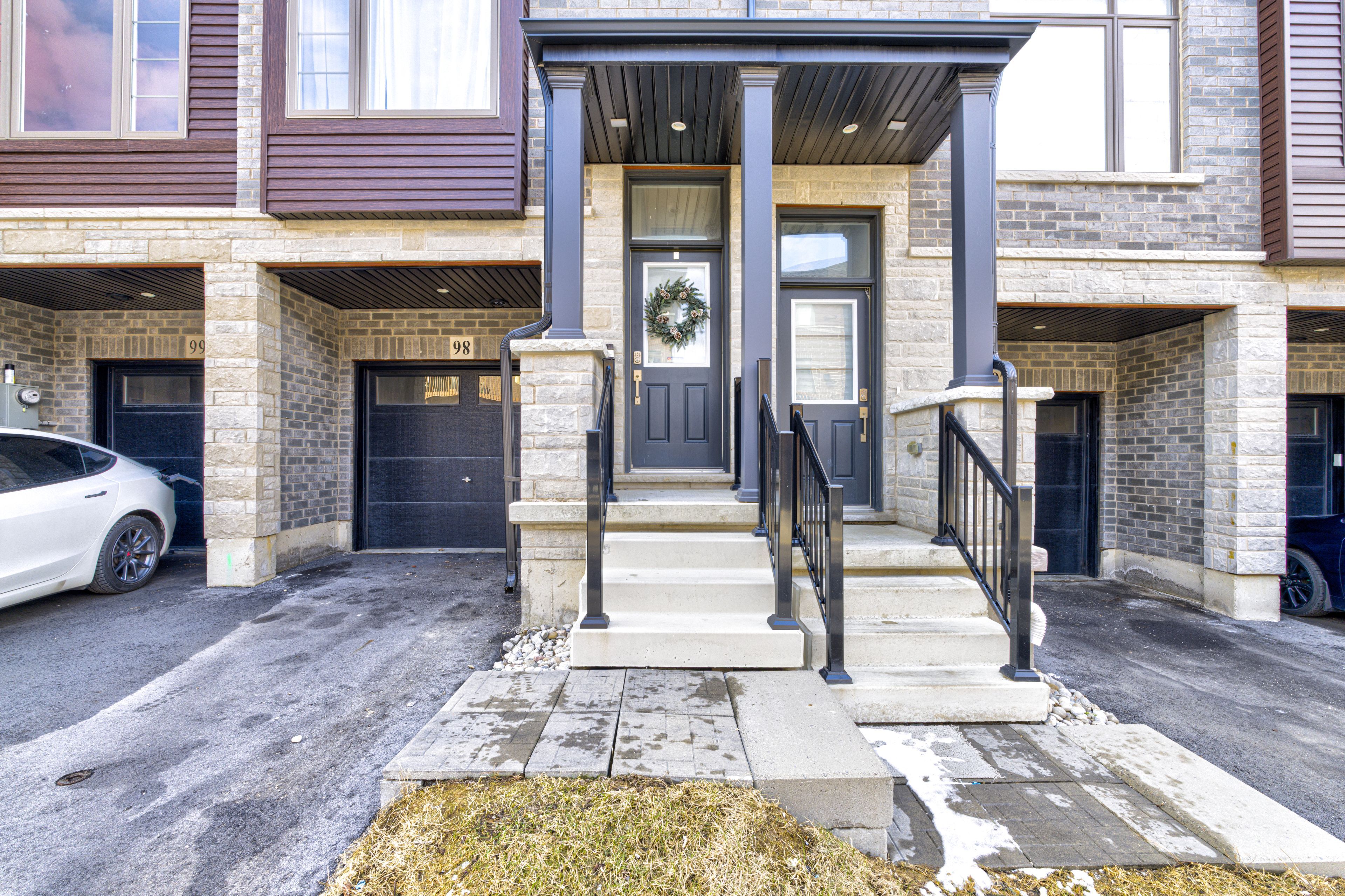 Beautiful 3-storey townhouse in the desirable stoney creek area. This well-maintained 2-year-old home features a spacious main level with an open-concept layout and oversized windows that fill the space with natural light. The modern kitchen is equipped with stainless steel appliances, quartz countertops, and a stylish tiled backsplash, with french doors leading to a private deck overlooking the backyard. The primary bedroom offers a walk-in closet and a private ensuite bathroom. Two additional bedrooms provide flexibility for family living or a home office. Additional highlights include an attached garage with interior access and numerous upscale upgrades such as 9-foot ceilings on the main floor, smooth ceilings, vinyl flooring throughout, wood stairs, and pot lights. Conveniently located close to schools, restaurants, shopping, and major highways including the red hill valley parkway, lincoln m. Alexander parkway (linc), and highway 403. Walking distance to parks and scenic trails, including eramosa karst conservation area.