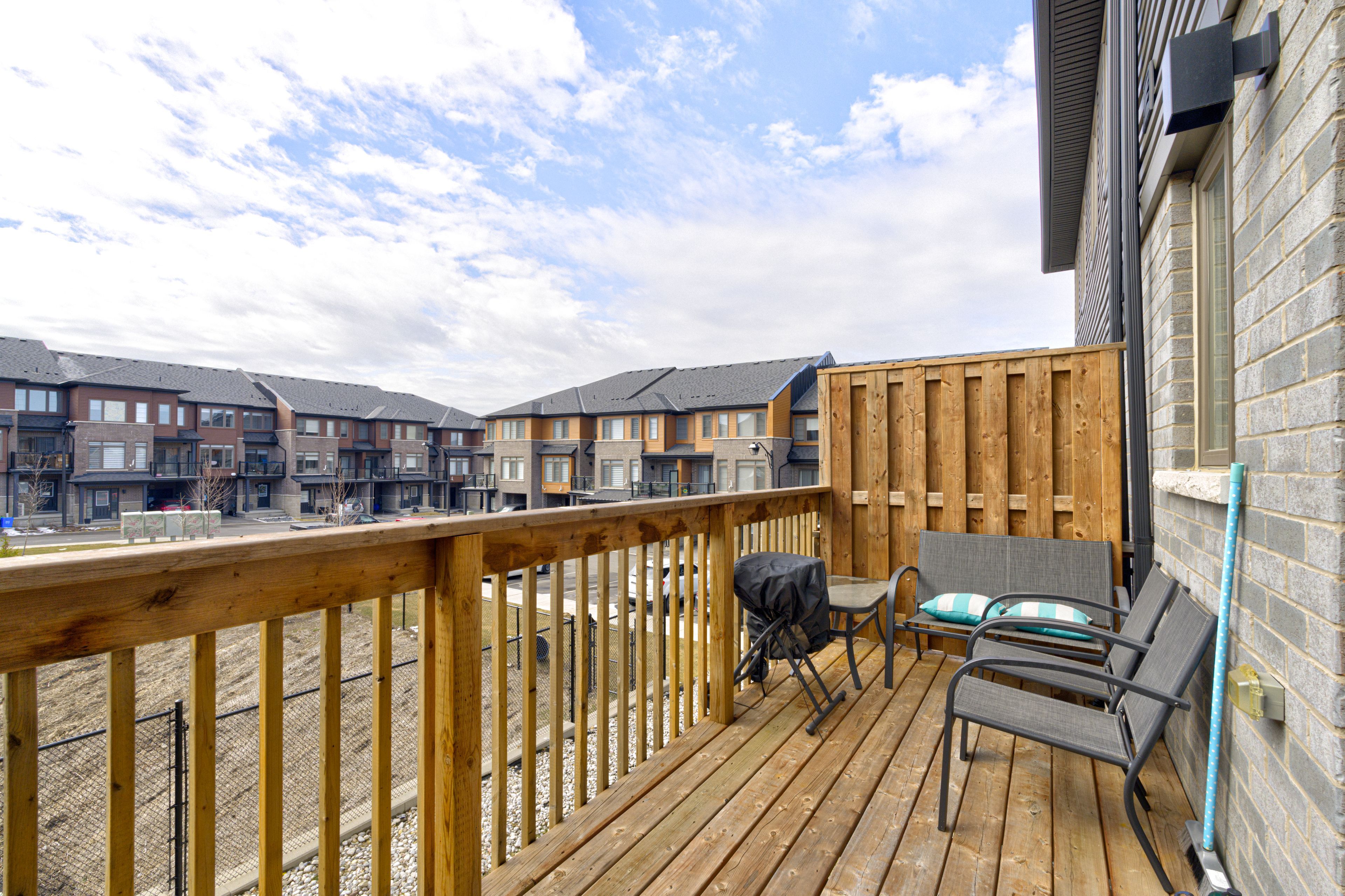 • Private deck overlooking the backyard, perfect for relaxing outdoors.