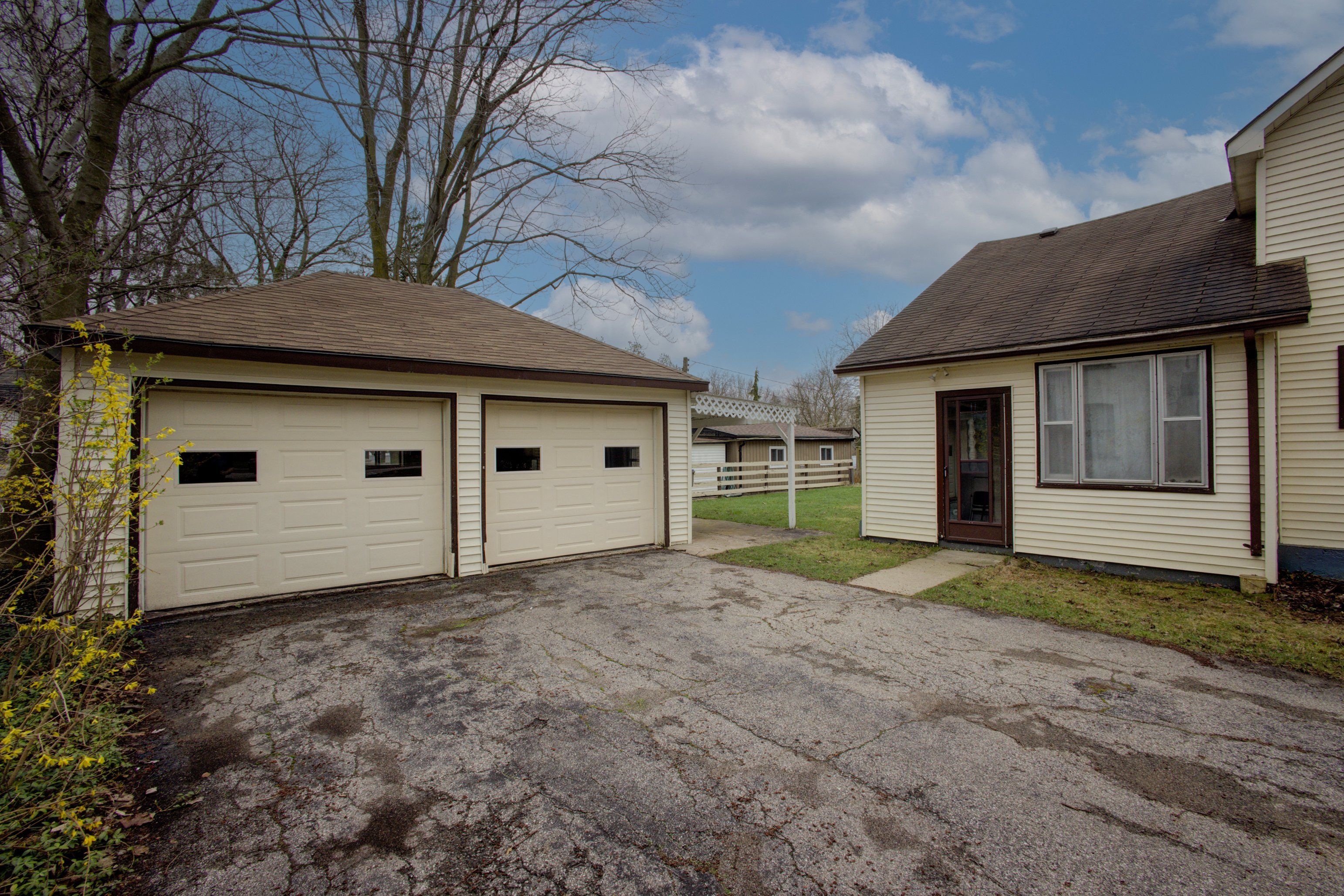• Generous lot with a large double car garage for vehicles or storage.