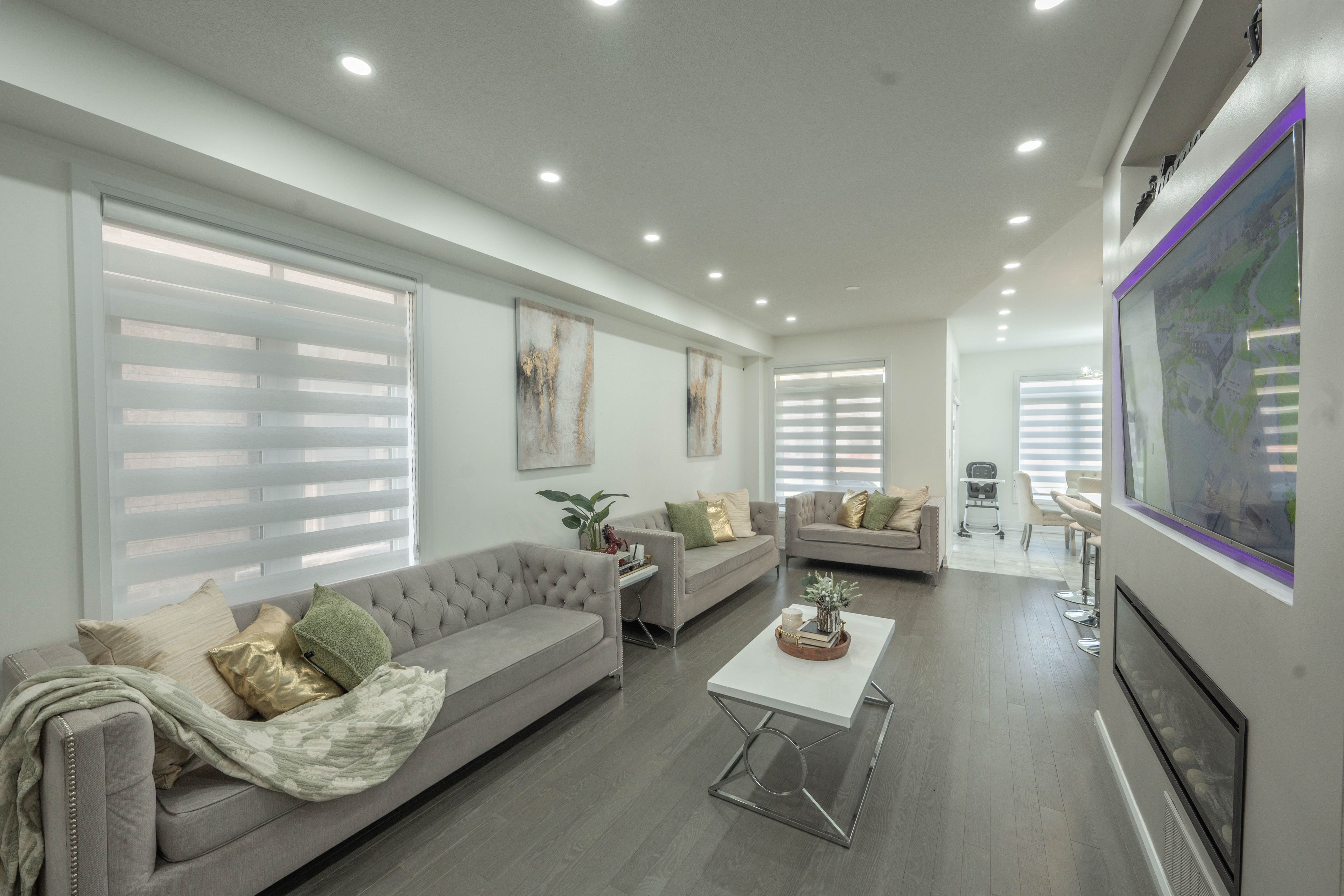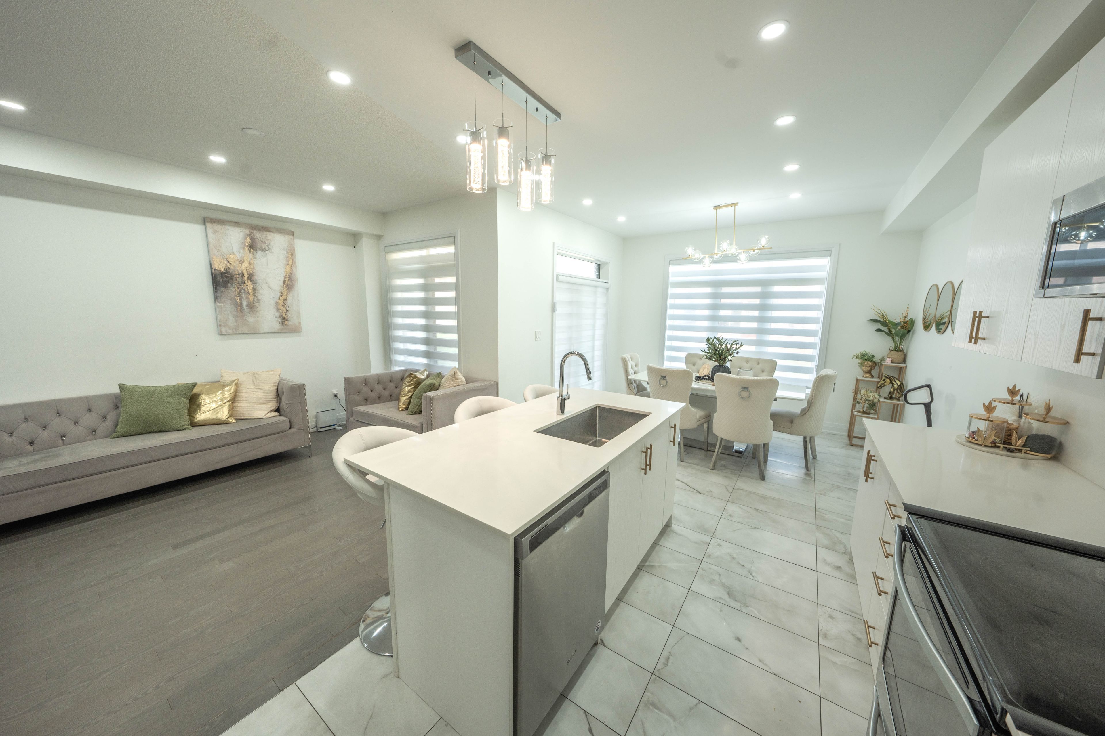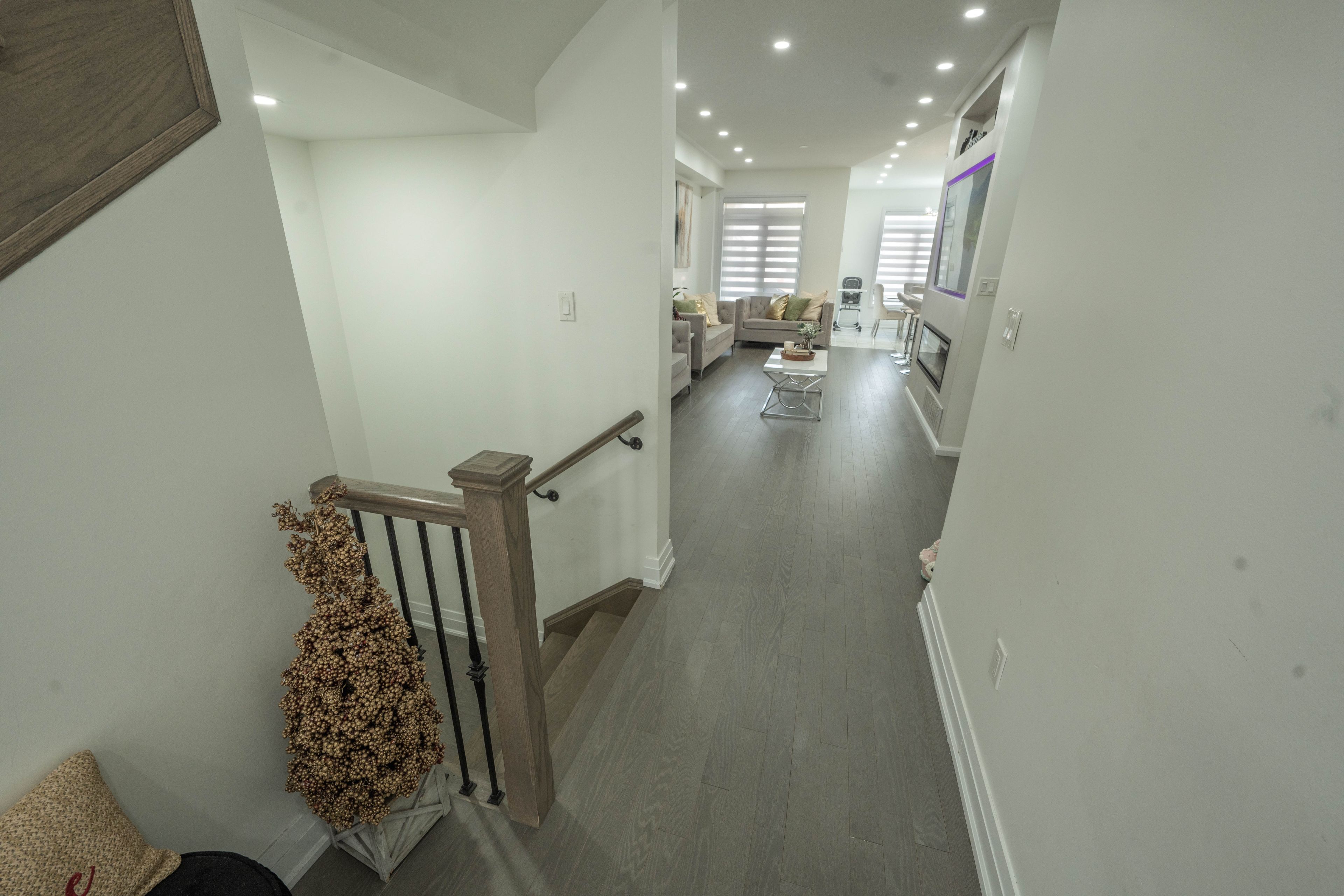 Attention young families and couples who are starting new life!!!! Perfect area to grow your family in kids safe neighborhood, walk to school, play ground, minutes away from shopping mall, food stores, restaurants, 5 minutes drive to hwy 400, community center, almost new, luxury, 3 bedrooms, 3 baths, 2 story semi detached with custom entrance double door, modern hardwood floor and 9 ft ceiling on main level, open concept, luxury kitchen cabinets, s/s appliances, custom remote controlled blinds, custom build media center wall, led pot lights, and much more. Simply come and see your self!!! Not finished basement but yet perfect to set your own rec room, put all your exercise equipment or set play ground for your kids, or simply get your own idea and do as you like with this huge area.