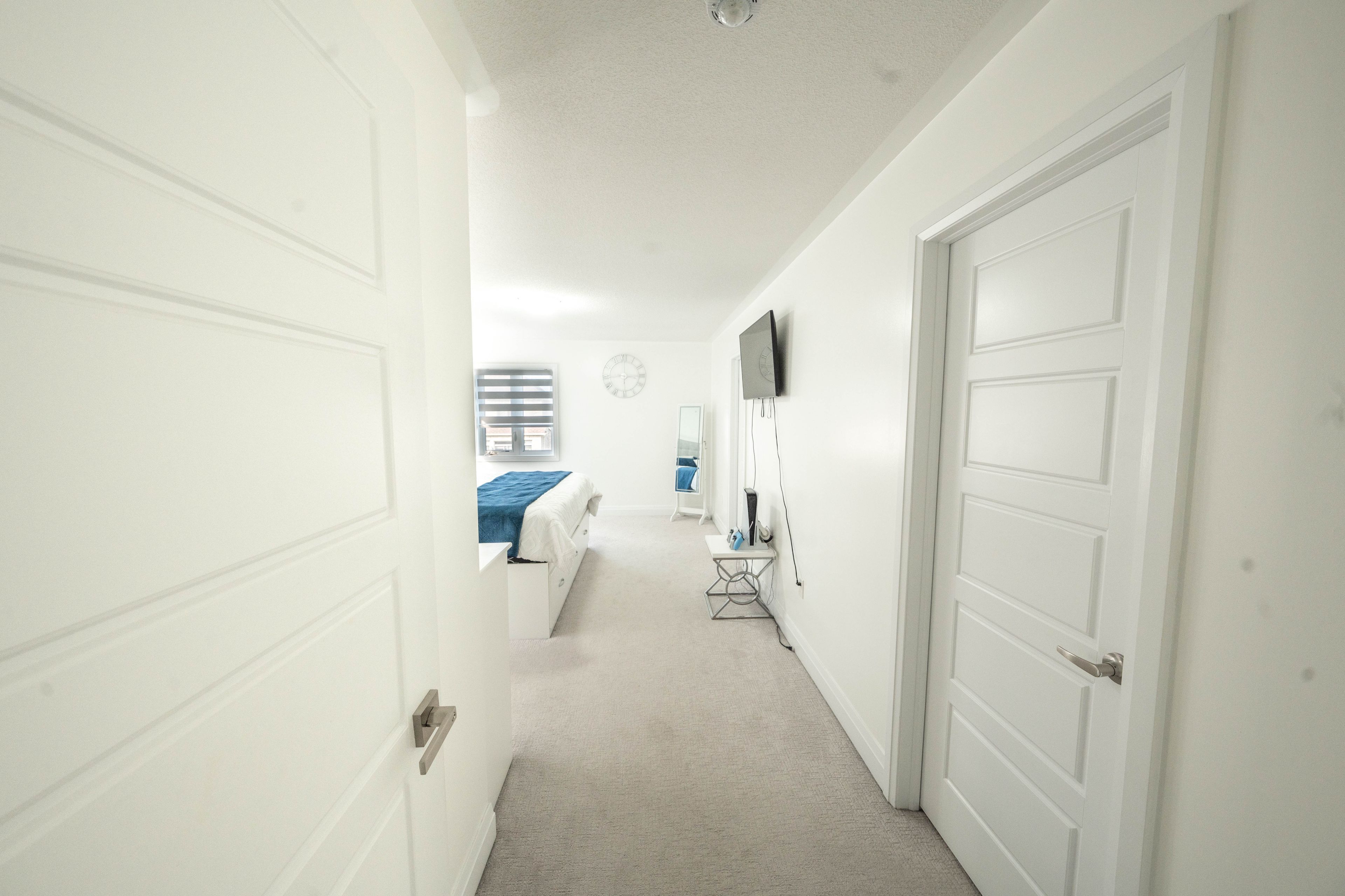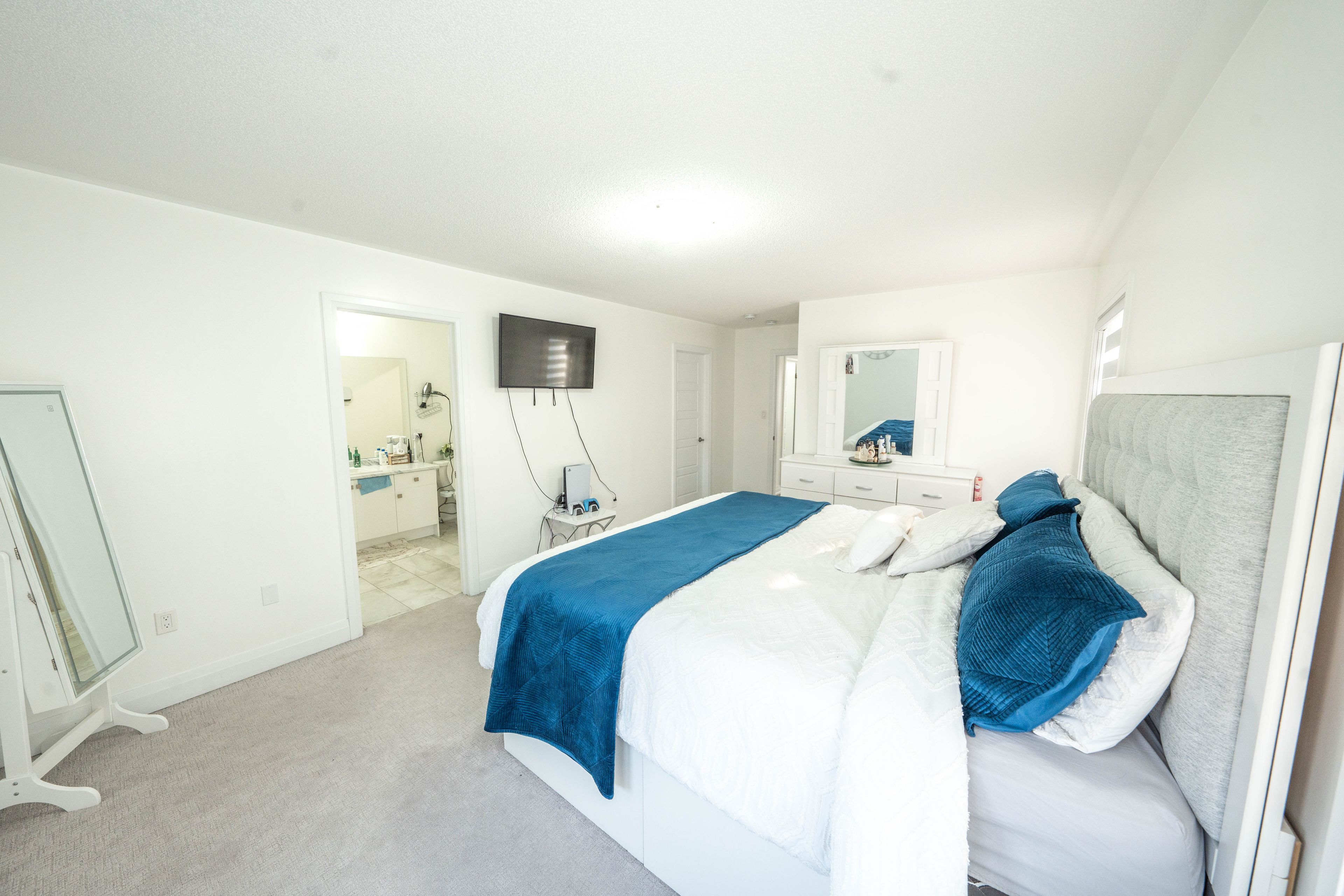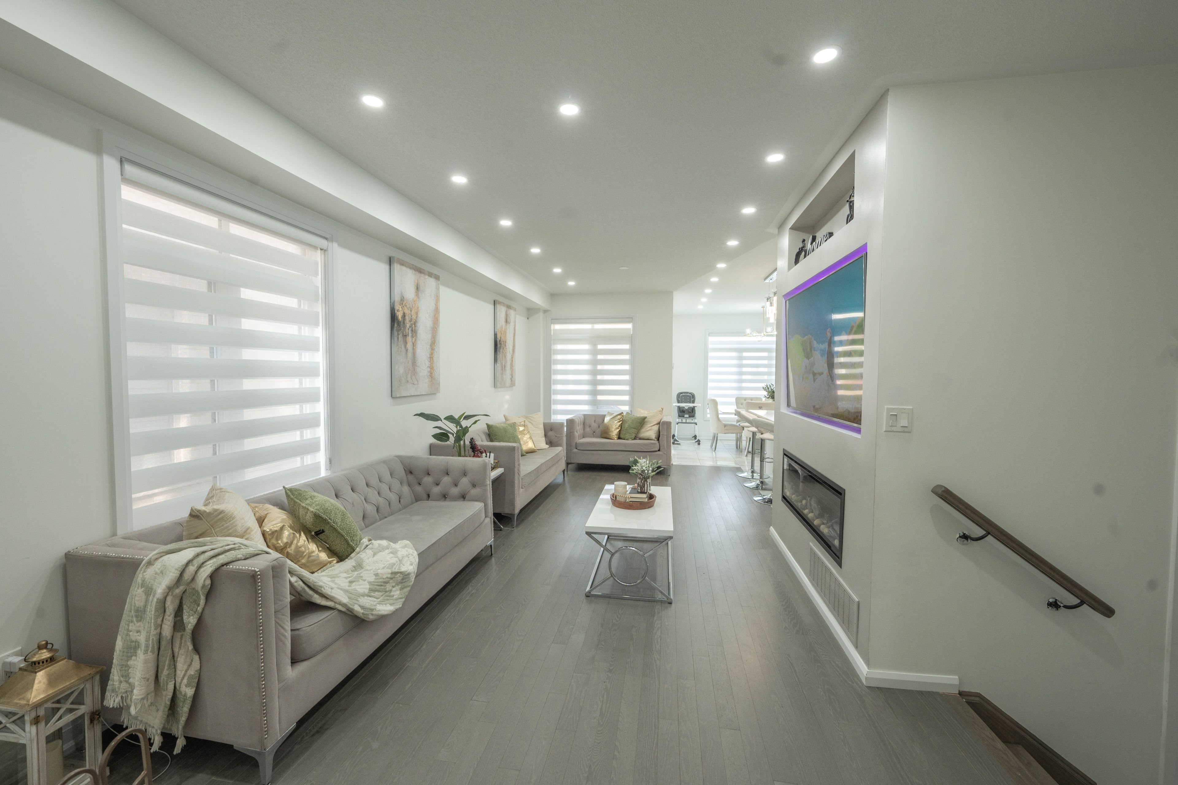 Attention young families and couples who are starting new life!!!! Perfect area to grow your family in kids safe neighborhood, walk to school, play ground, minutes away from shopping mall, food stores, restaurants, 5 minutes drive to hwy 400, community center, almost new, luxury, 3 bedrooms, 3 baths, 2 story semi detached with custom entrance double door, modern hardwood floor and 9 ft ceiling on main level, open concept, luxury kitchen cabinets, s/s appliances, custom remote controlled blinds, custom build media center wall, led pot lights, and much more. Simply come and see your self!!! Not finished basement but yet perfect to set your own rec room, put all your exercise equipment or set play ground for your kids, or simply get your own idea and do as you like with this huge area.