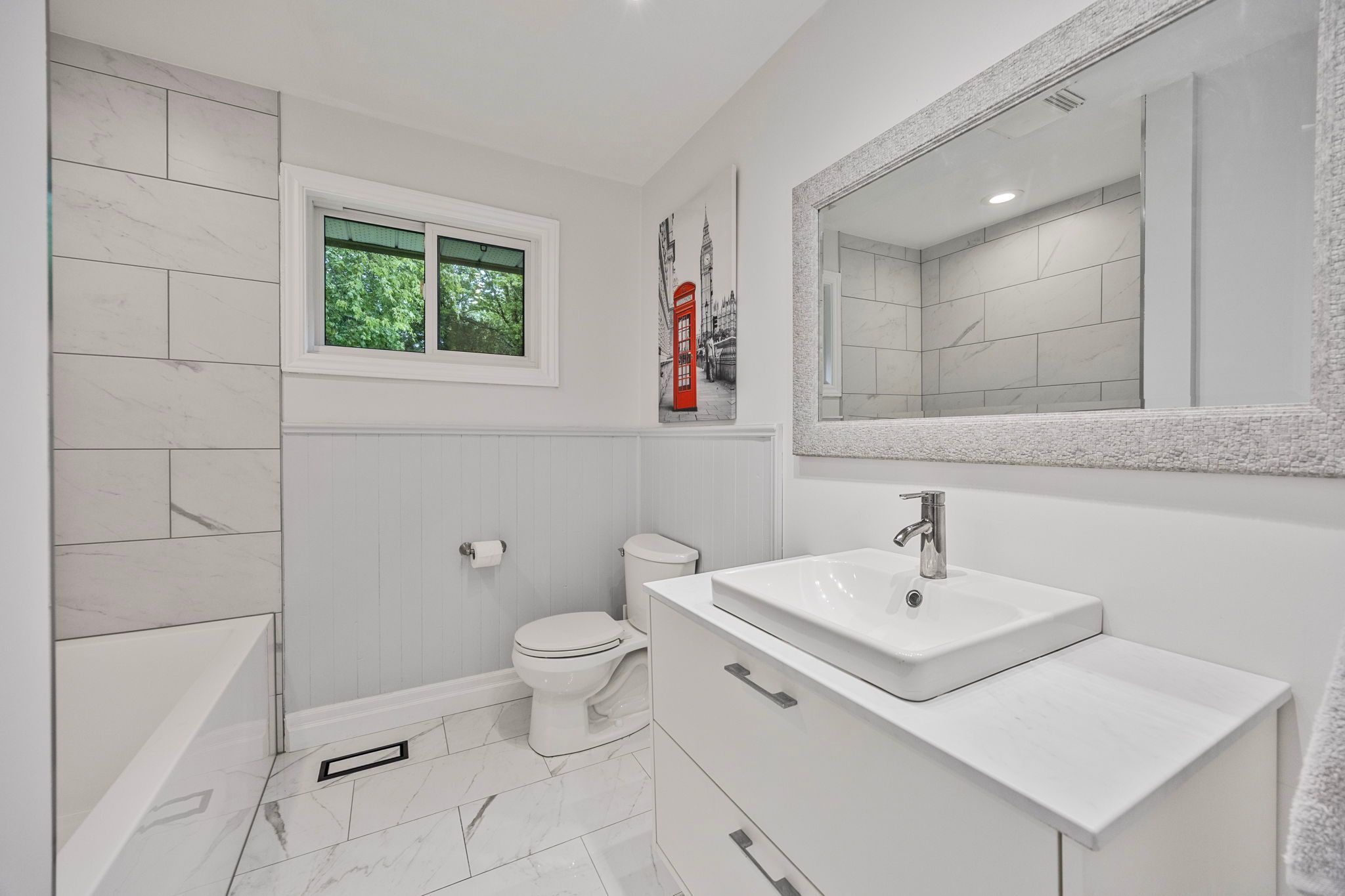 • Separate entrance leads to a fully remodeled basement.