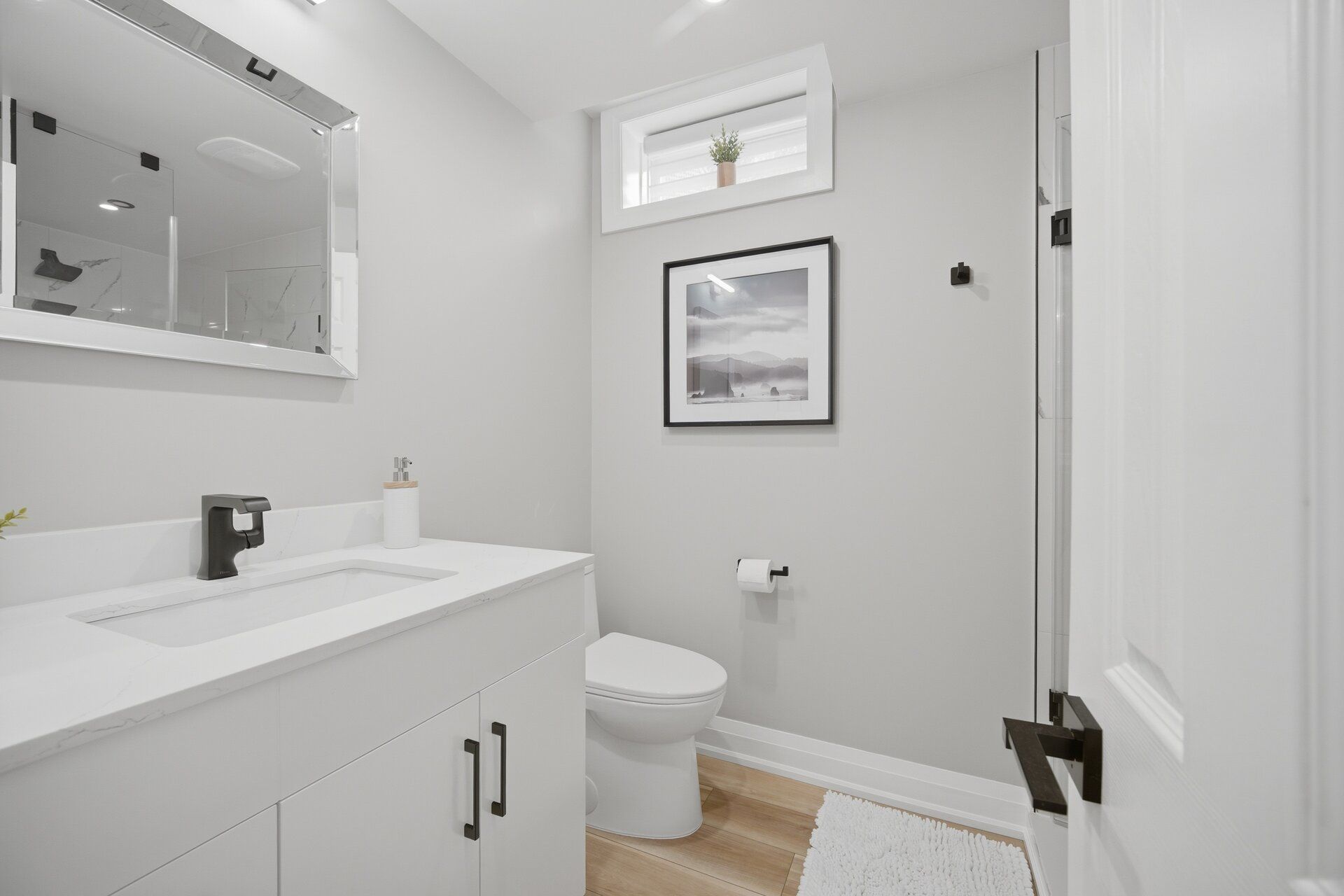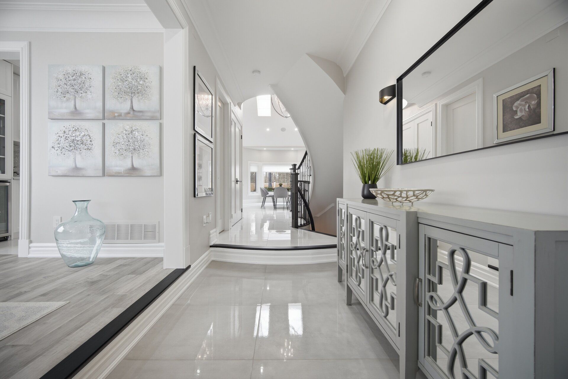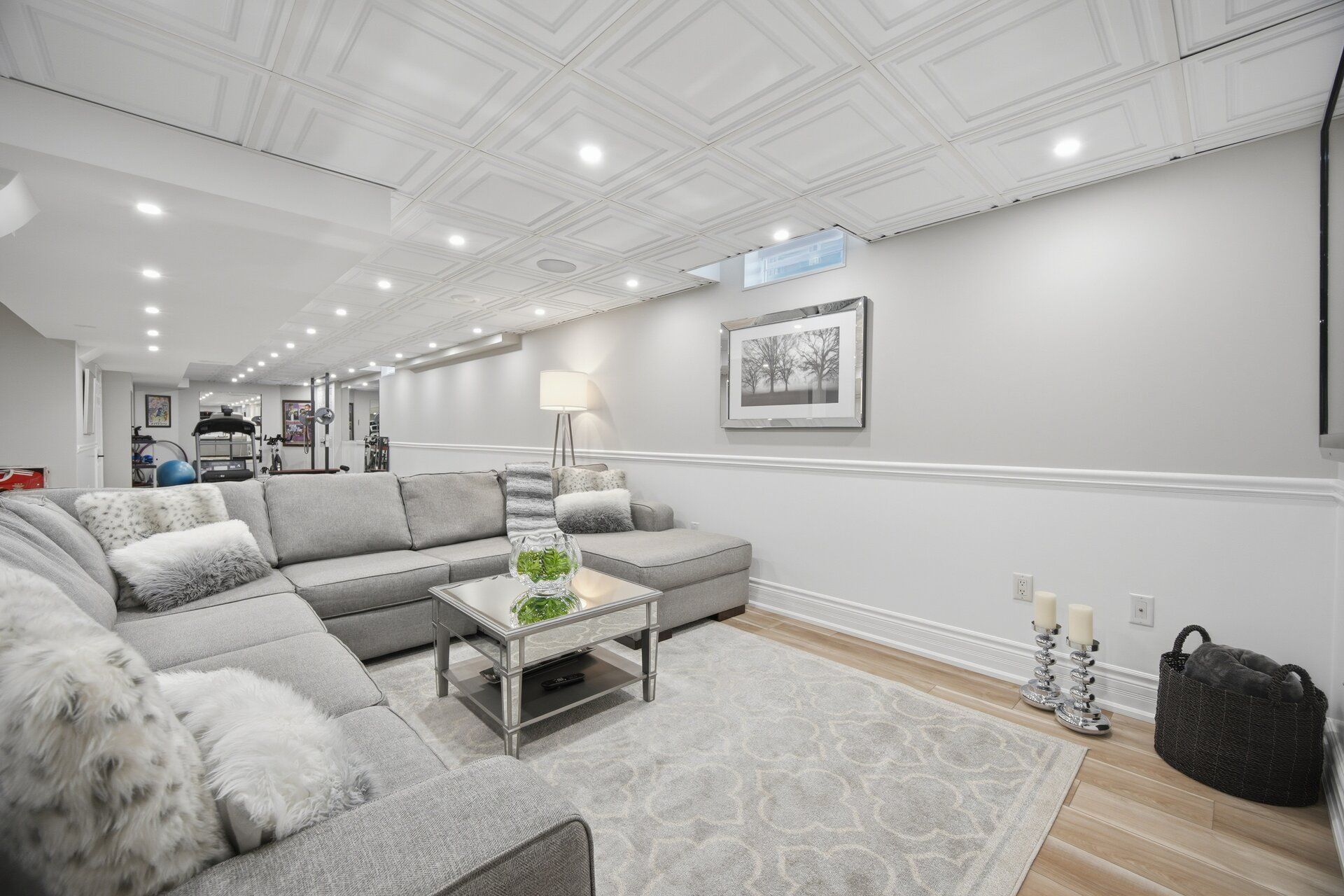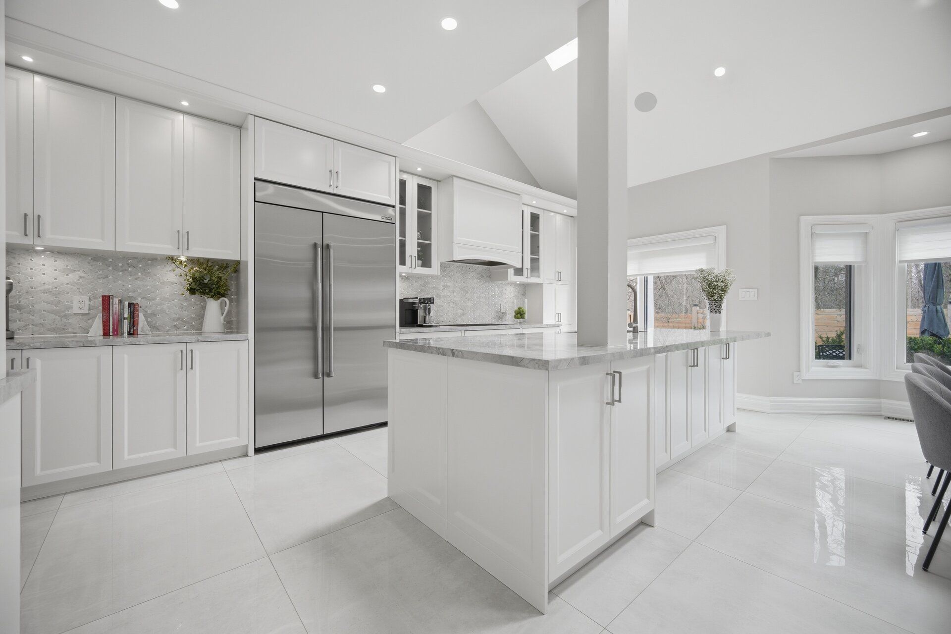 • Open-concept layout filled with natural light from skylights and high ceilings.
