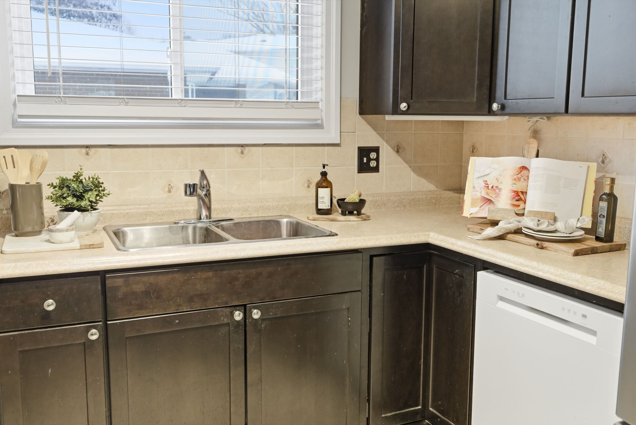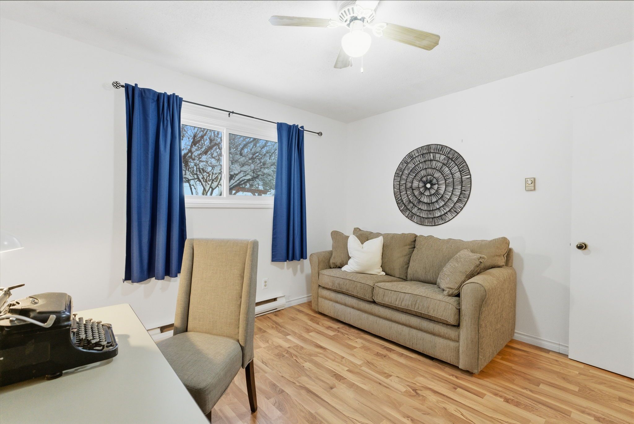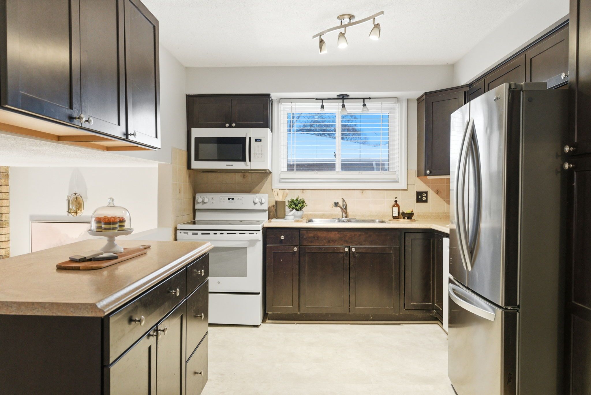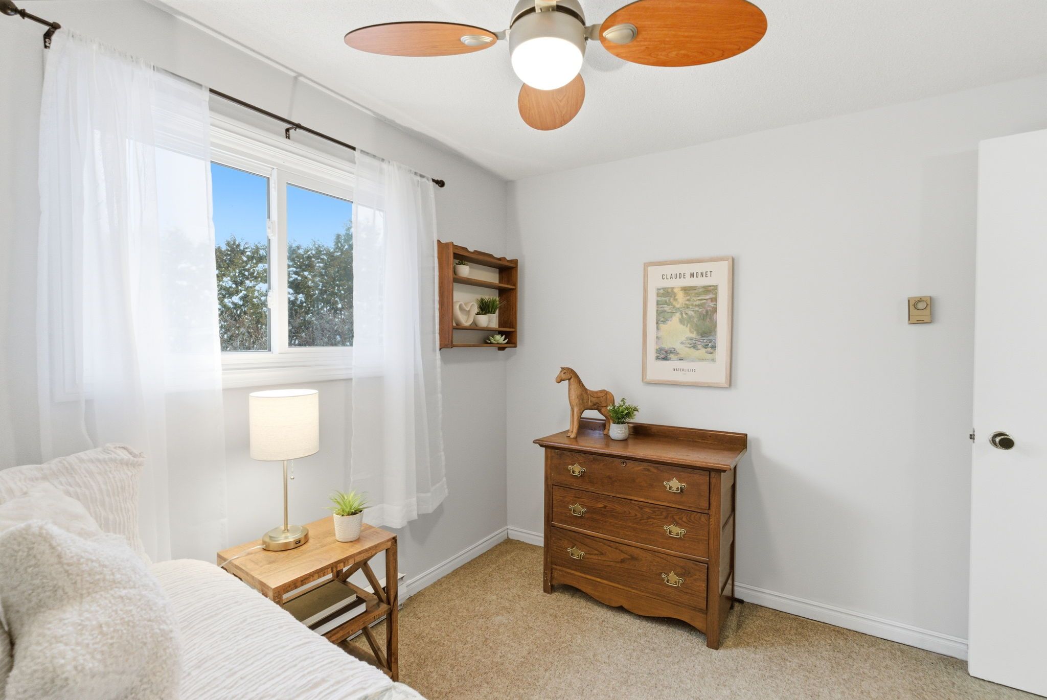 Tucked away on a quiet court in a mature northwest neighbourhood, this solid 4-level backsplit offers far more space than meets the eye and an exceptional level of privacy both inside and out. Set on a rare pie-shaped lot with greenspace directly behind, the home enjoys a peaceful, family friendly setting with no future development. The extra-long driveway accommodates up to six vehicles, while the thoughtfully designed layout makes the home feel spacious and functional for everyday living. The main level features a bright living room with a large picture window overlooking the front yard, seamlessly connected to the open-concept dining area. The updated kitchen boasts spacious cabinetry, a pantry, modern countertops, and a stylish backsplash, with an open sightline to the lower-level family room. Upstairs, you'll find three well-sized bedrooms, including a generous primary with mirrored closet doors. Both bathrooms have been refreshed with new flooring, along with a new vanity and fresh paint in the upper bathroom. Recent updates also include luxury vinyl flooring, adding a modern touch throughout key living areas. The lower level offers a cozy family room with a gas fireplace and walk-out to the private backyard, perfect for relaxing or entertaining-along with a fourth bedroom. The finished basement extends the living space further with a large recreation room, laminate flooring, newer windows, a built-in work area with shelving, and a cold cellar/cold room for added storage. After years of thoughtful ownership and care, this home stands as a true testament to space, privacy, and everyday livability. An exceptional opportunity in a quiet, family-friendly setting where the home truly lives much larger than it appears.