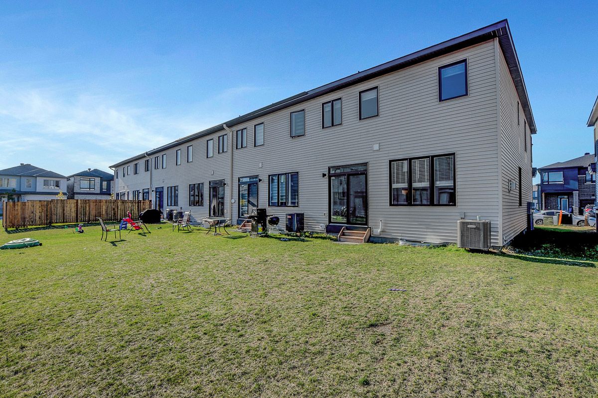 Welcome to this stunning end-unit townhome, newly built in 2024, in barrhavens prestigious stonebridge community home to the renowned stonebridge golf course and celebrated for its family-friendly charm. Offering 3 spacious bedrooms and 3. 5 bathrooms, this modern residence blends comfort, convenience, and style. Flooded with natural light, the open-concept main floor showcases oversized windows dressed with stylish, custom coverings, creating a warm and polished atmosphere throughout. The inviting living and dining spaces flow seamlessly into a chef-inspired kitchen, featuring sleek stainless steel appliances, abundant counter space, and contemporary finishes ideal for both everyday meals and entertaining. Upstairs, the primary suite offers a true retreat, complete with a spa-inspired ensuite featuring a glass-enclosed shower and a luxurious freestanding soaker tub perfect for unwinding at the end of the day. The convenience of second-floor laundry and two additional versatile bedrooms add to the thoughtful design. The fully finished basement extends the living space with a bright recreation room and a full bathroom, ideal for guests or family movie nights. A deep driveway provides extra parking, while the end-unit setting offers privacy and additional natural light. Located minutes from schools, parks, and transit, this home captures the very best of stonebridge living.