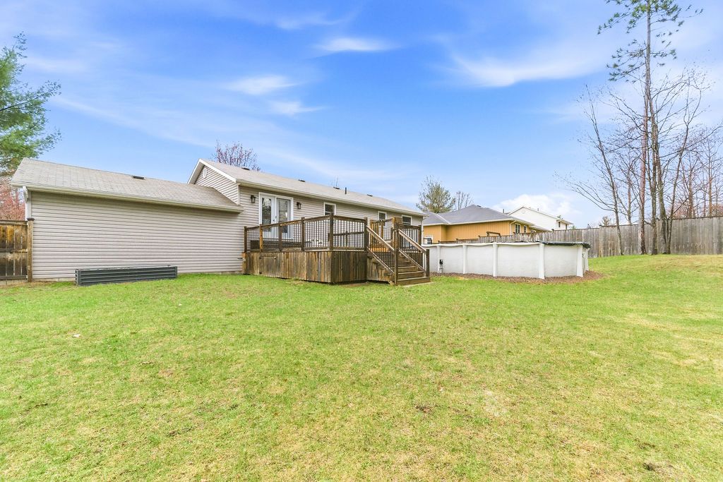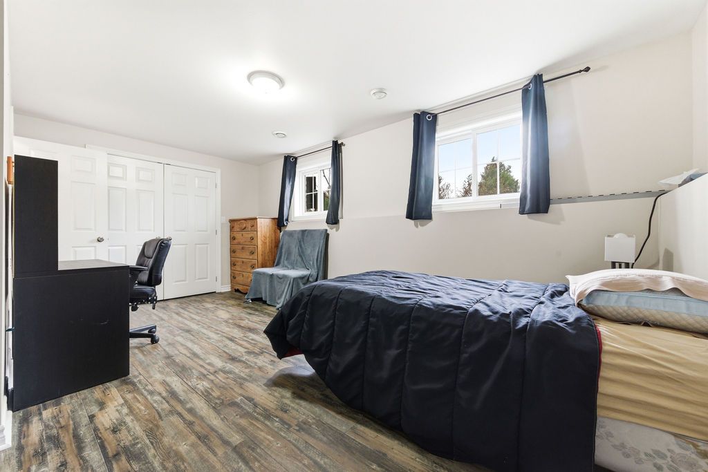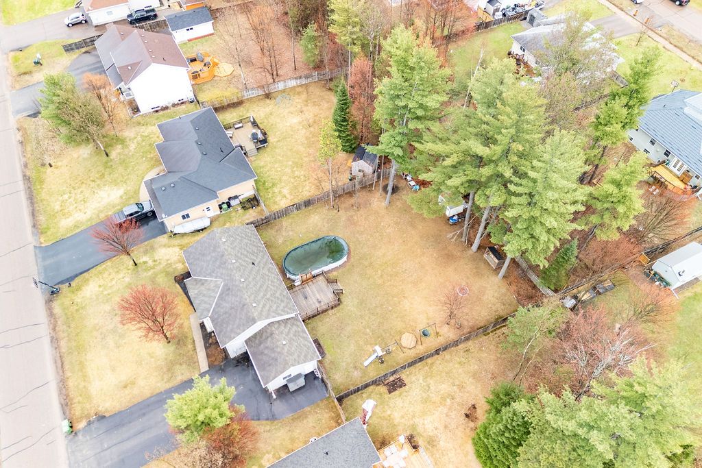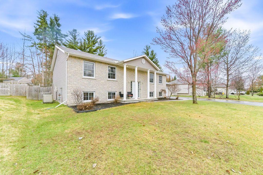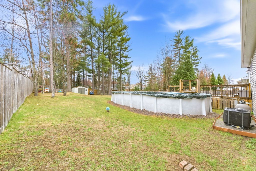 3+1 bedroom 2+1 bathroom open concept home in a quiet desired neighbourhood. Primary bedroom features a 4-piece ensuite bathroom complete with a whirlpool tub and walk-in closet. The fully finished lower level has an extra large 4th bedroom and a luxury bathroom which includes a walk-in, tiled shower. Spacious recreation room has a built in electric fireplace and shelving. The lower level also contains a generous sized laundry room and an office/den (currently a playroom). The private fully fenced yard contains mature trees, shed and even a fire pit. The riding lawn mower stays with home.