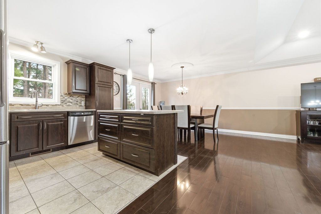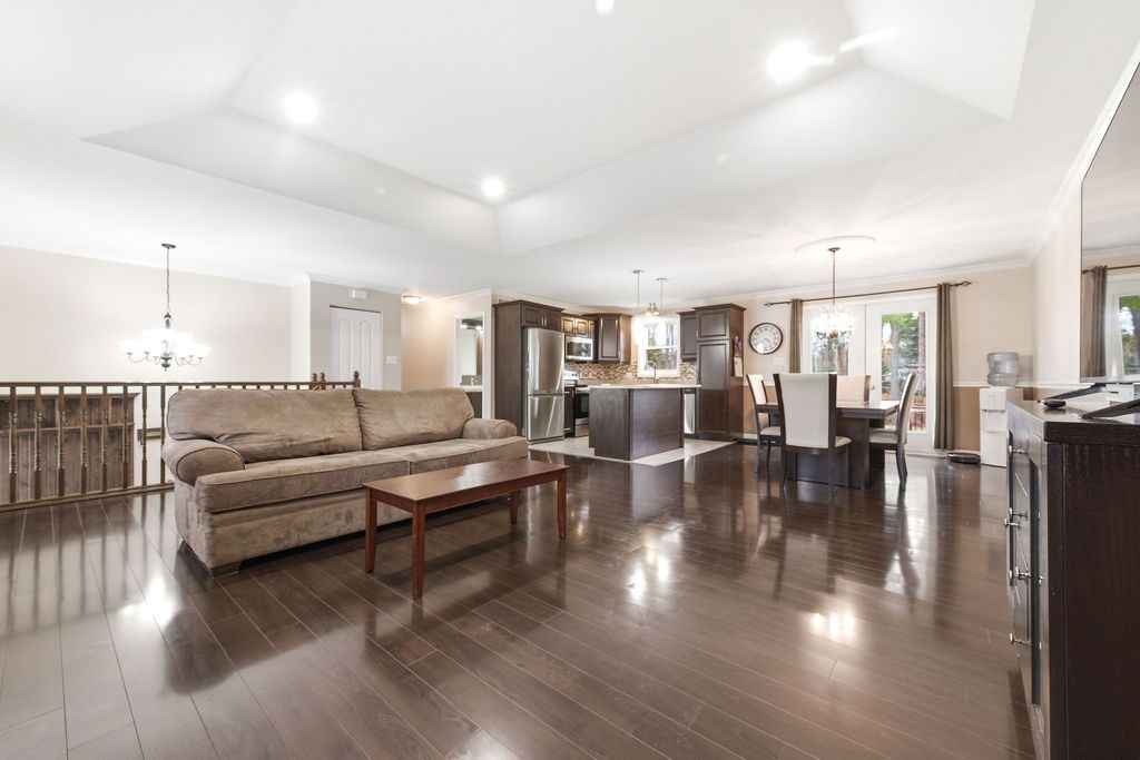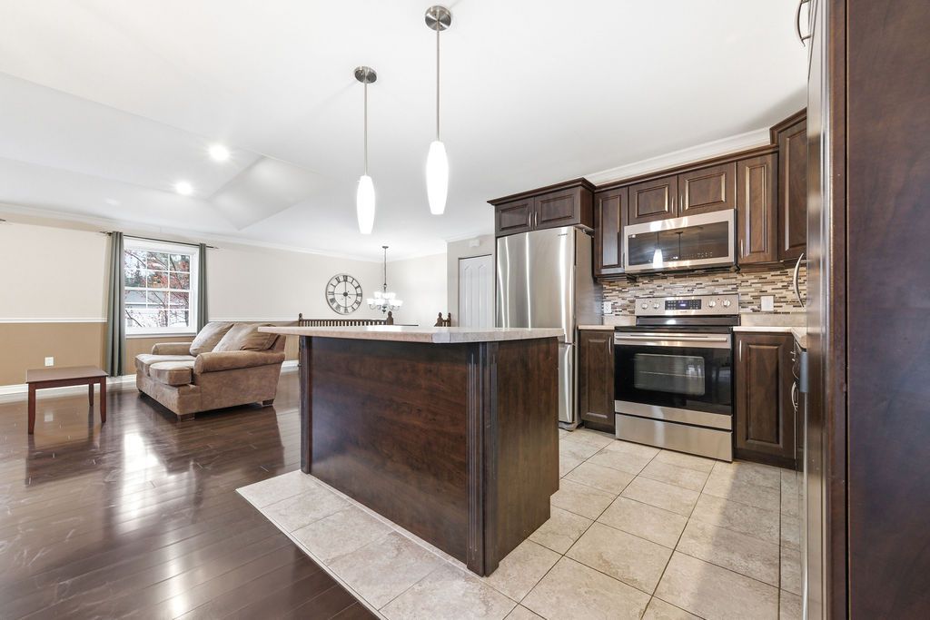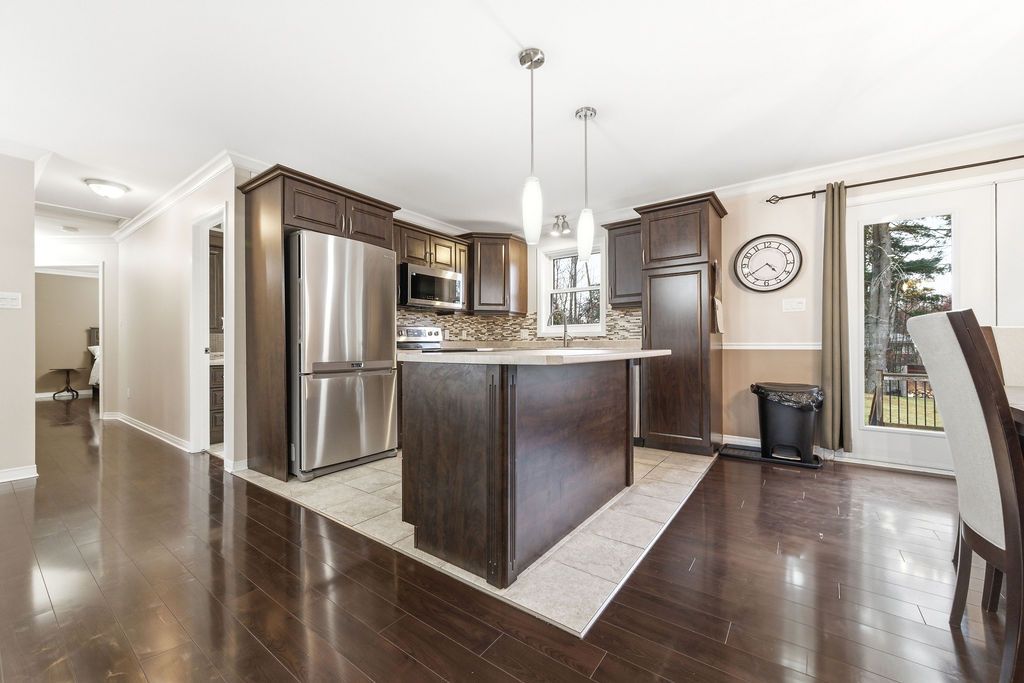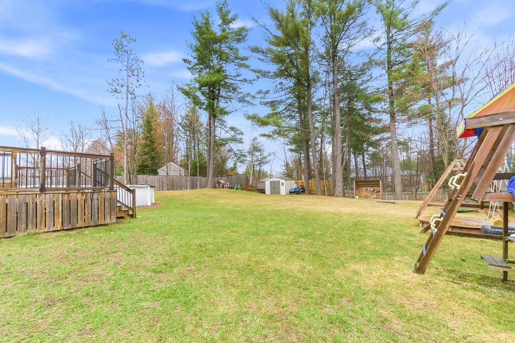 3+1 bedroom 2+1 bathroom open concept home in a quiet desired neighbourhood. Primary bedroom features a 4-piece ensuite bathroom complete with a whirlpool tub and walk-in closet. The fully finished lower level has an extra large 4th bedroom and a luxury bathroom which includes a walk-in, tiled shower. Spacious recreation room has a built in electric fireplace and shelving. The lower level also contains a generous sized laundry room and an office/den (currently a playroom). The private fully fenced yard contains mature trees, shed and even a fire pit. The riding lawn mower stays with home.