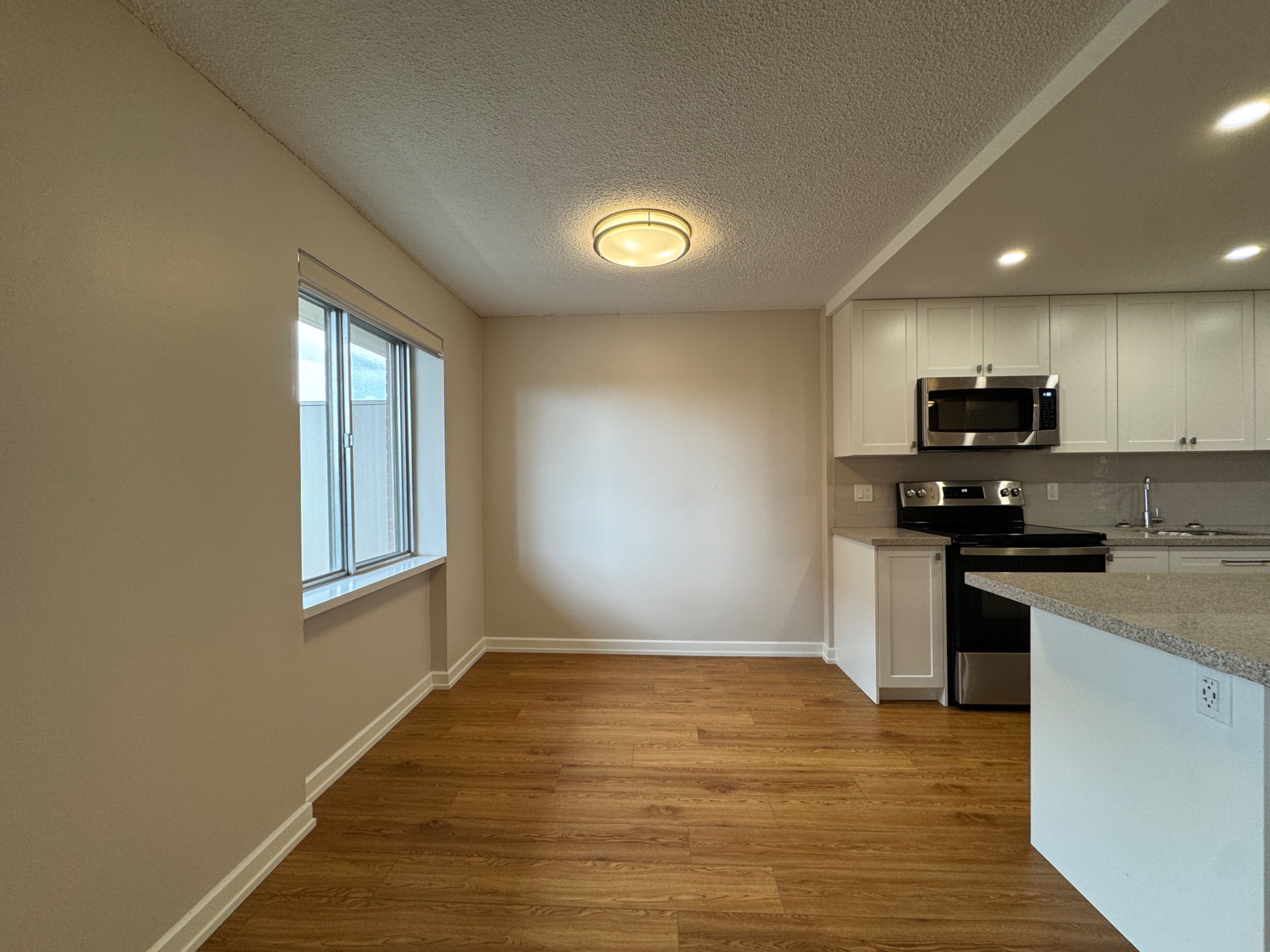 • Upgraded stainless-steel appliances and fresh white cabinetry add a modern touch.