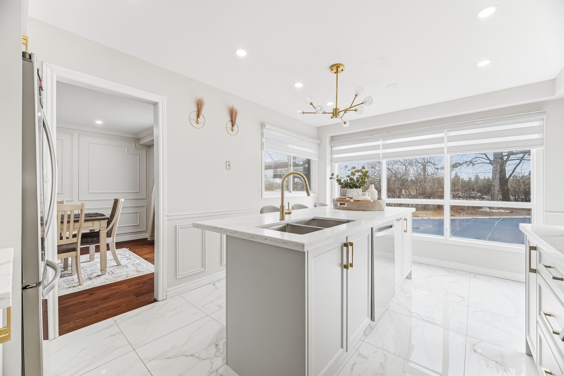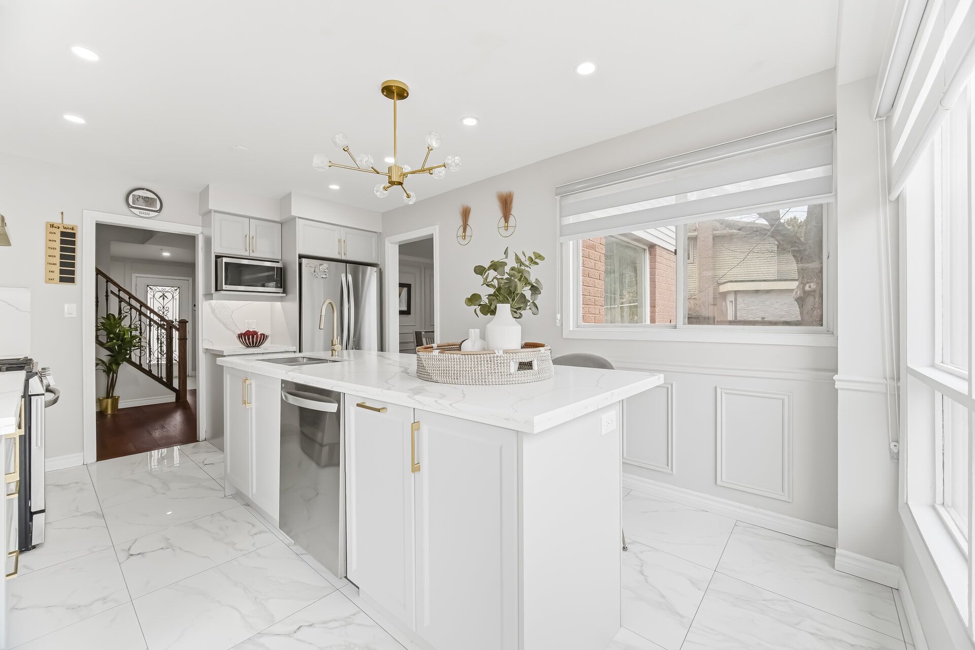 • Massive basement with a legal entrance, second kitchen, and versatile spaces.