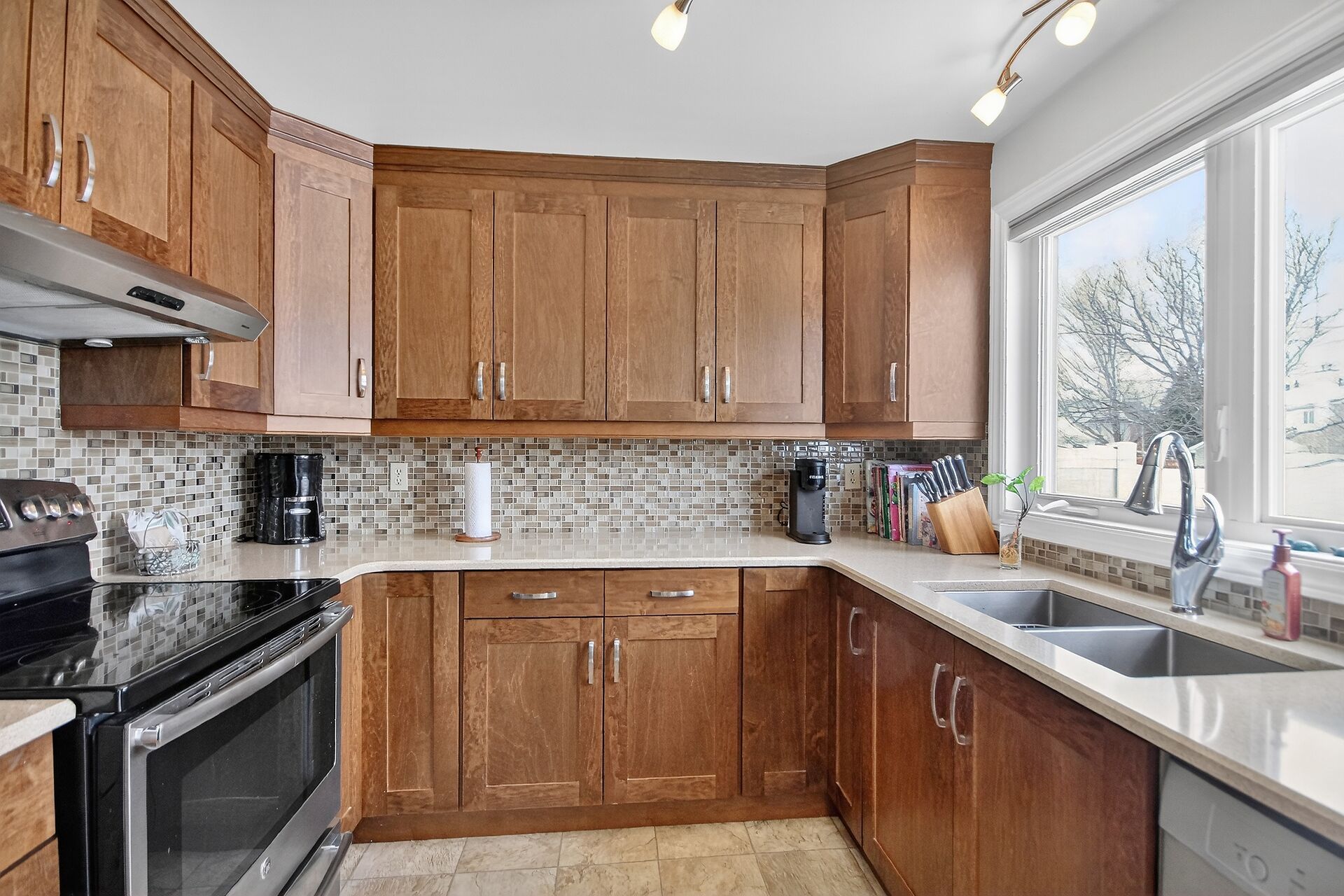 • Updated kitchen with quartz countertops and a sunny eat-in area.