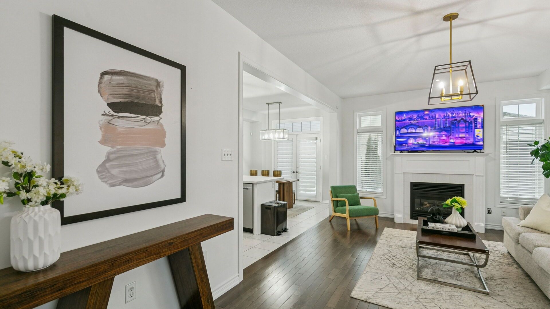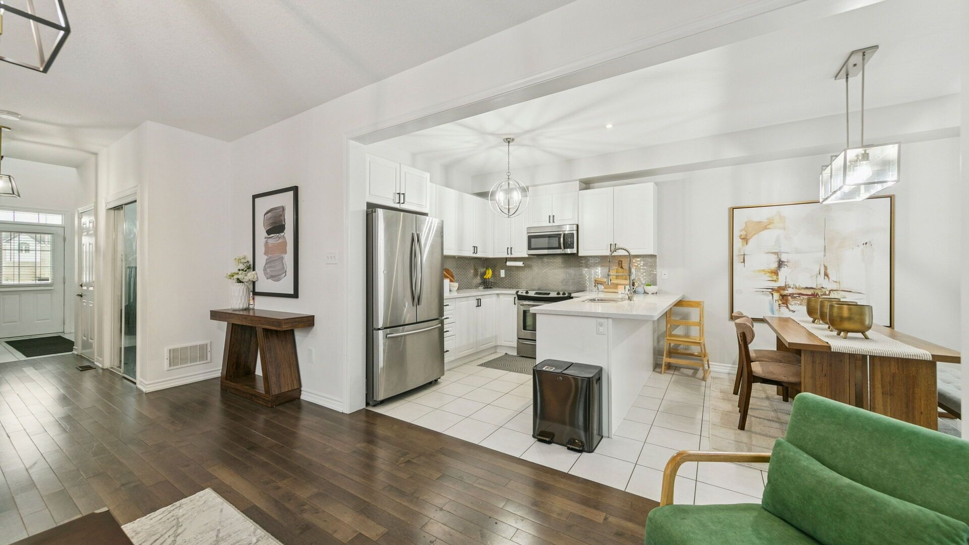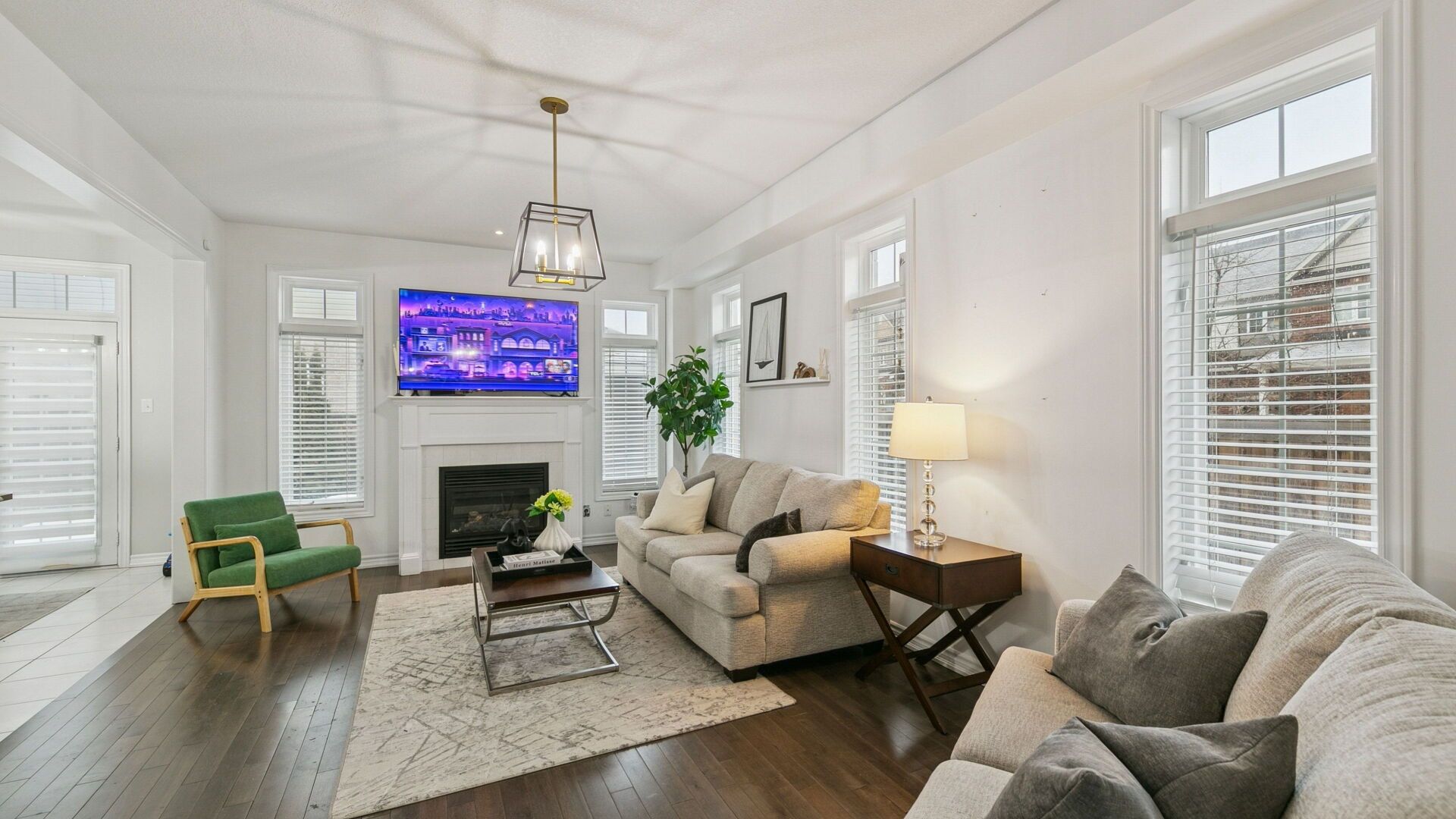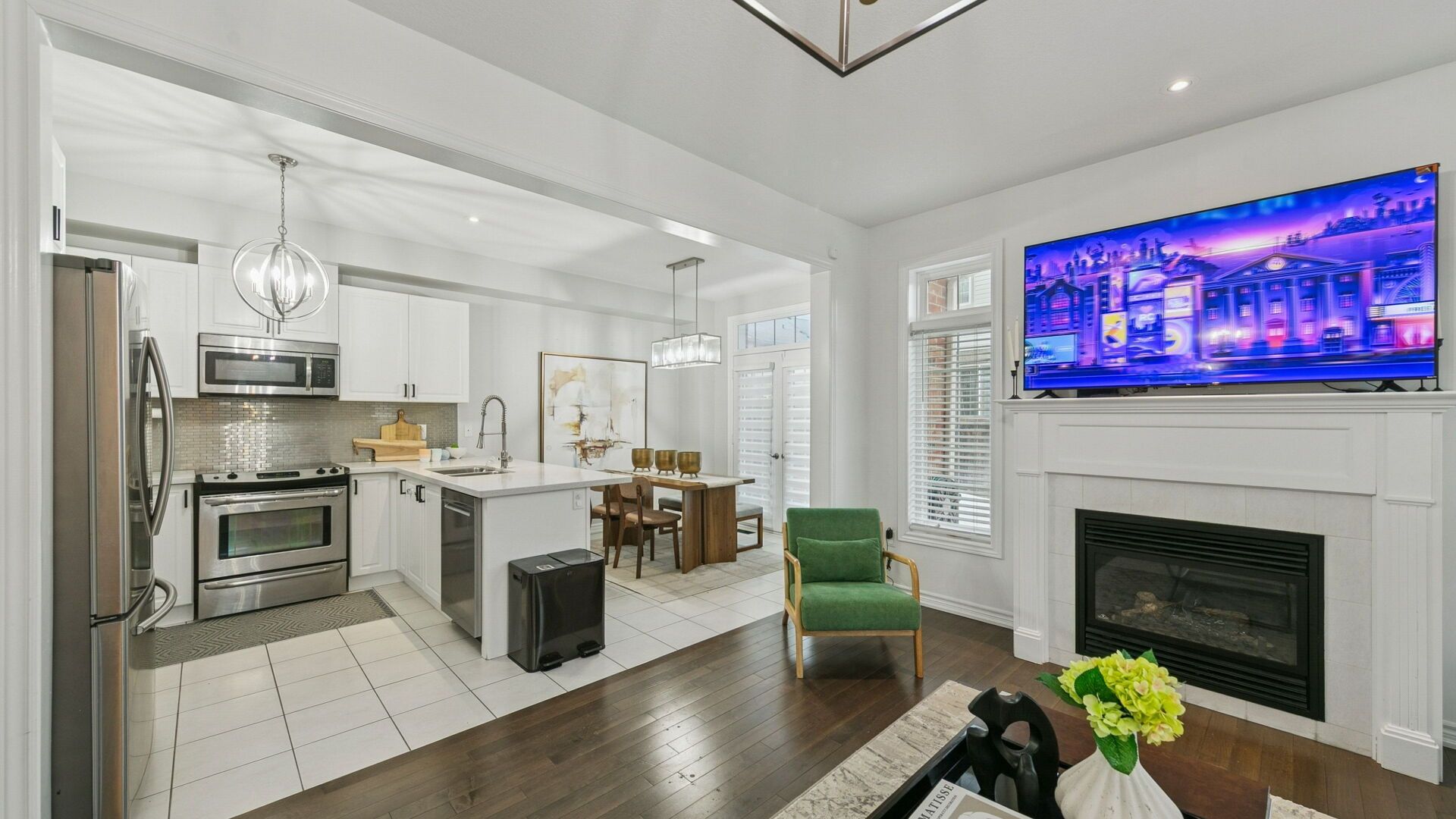 Here it is - a luxury freehold corner townhome offering over 1,700 sq. Ft. Of beautifully designed living space, with the feel of a semi-detached home. This impressive property features 3 spacious bedrooms plus an additional bedroom in the finished basement, providing flexibility for growing families or guests. The modern eat-in kitchen is equipped with stainless steel appliances, quartz countertops, and a walk-out to the yard - perfect for entertaining or everyday enjoyment. The main floor boasts 9-foot ceilings, elegant hardwood flooring, and a bright open-concept layout that seamlessly connects the living, dining, and kitchen areas. A cozy gas fireplace adds warmth and sophistication to the living space. Enjoy the added convenience of direct interior access to the garage. Upstairs, you'll find three generously sized bedrooms, including a spacious primary retreat complete with a walk-in closet and a luxurious 3-piece ensuite featuring a glass stand-up shower. The finished basement offers excellent additional living space - ideal for movie nights, a recreation area, and includes a dedicated office space perfect for working from home. A rare opportunity to own a stylish and functional freehold corner townhome that truly checks all the boxes