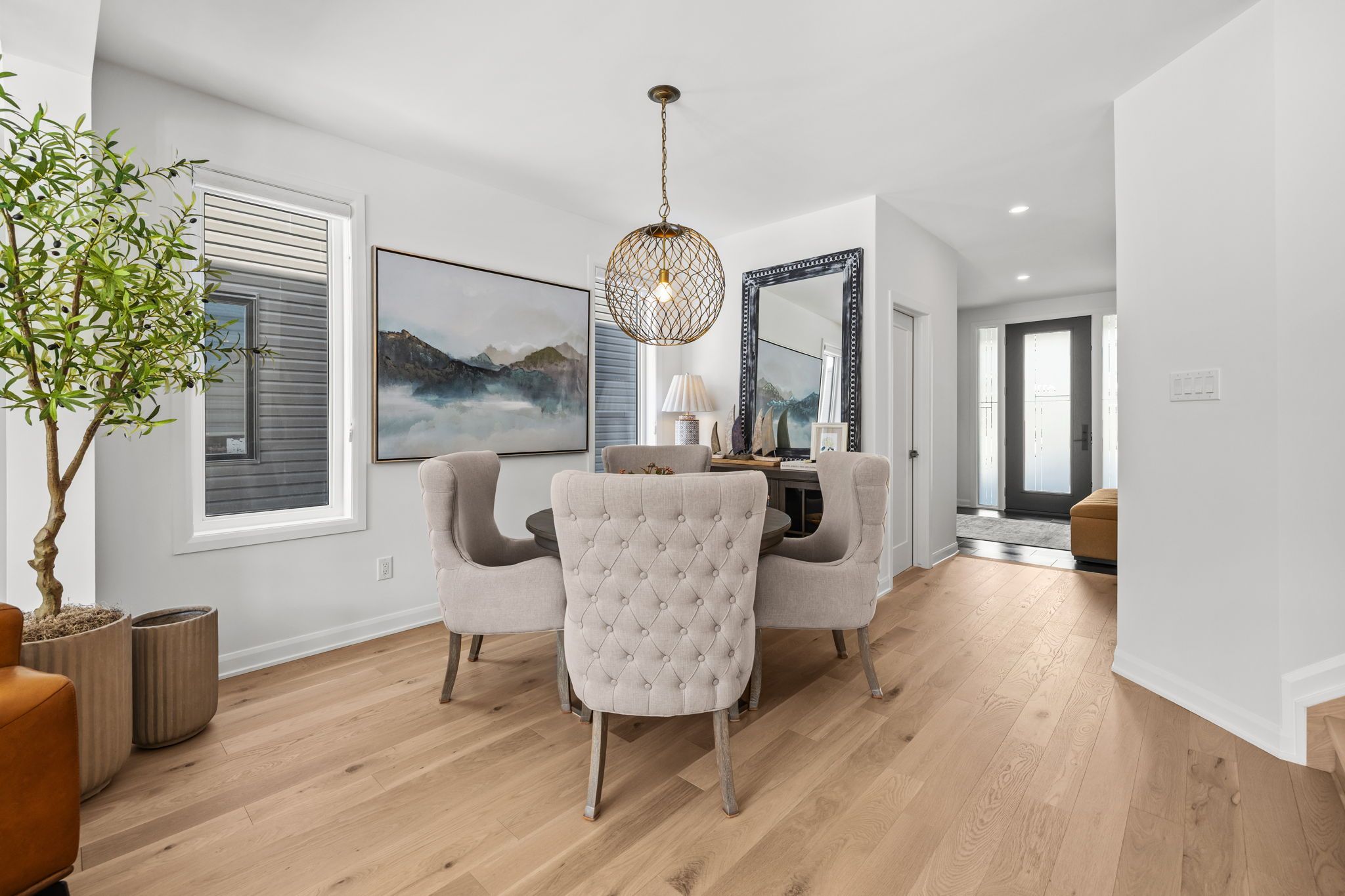 Nestled within the prestigious enclave of mahogany in manotick, this home is a masterclass in quiet sophistication and light-filled grace. Bathed in the soft glow of its south-west exposure, the home has been meticulously refined with over $160,000 in designer upgrades, creating a sanctuary that feels both timeless and deeply intentional. Both levels of the home unfold with soaring nine-foot ceilings and the organic warmth of white oak hardwood, where every element from the welcoming foyer to the seamless flow of the open, airy layout is designed to let the home breathe. The heart of the home is a grand chef's kitchen that balances high-end function with artisanal beauty, featuring custom two-tone cabinetry, a moroccan mosaic marble backsplash, and a classic statement apron sink. Ascending to the second floor, the sense of serenity continues with an expansive open loft and oversized bedrooms that ensure privacy for every member of the household. The primary suite serves as a true retreat, offering double walk-in closets and a spa-inspired five-piece ensuite designed for ultimate relaxation. Set within one of ottawa's most coveted communities, surrounded by nature and the charm of manotick village, this is a home crafted for balance, longevity, and a lifestyle of elegant tranquility.