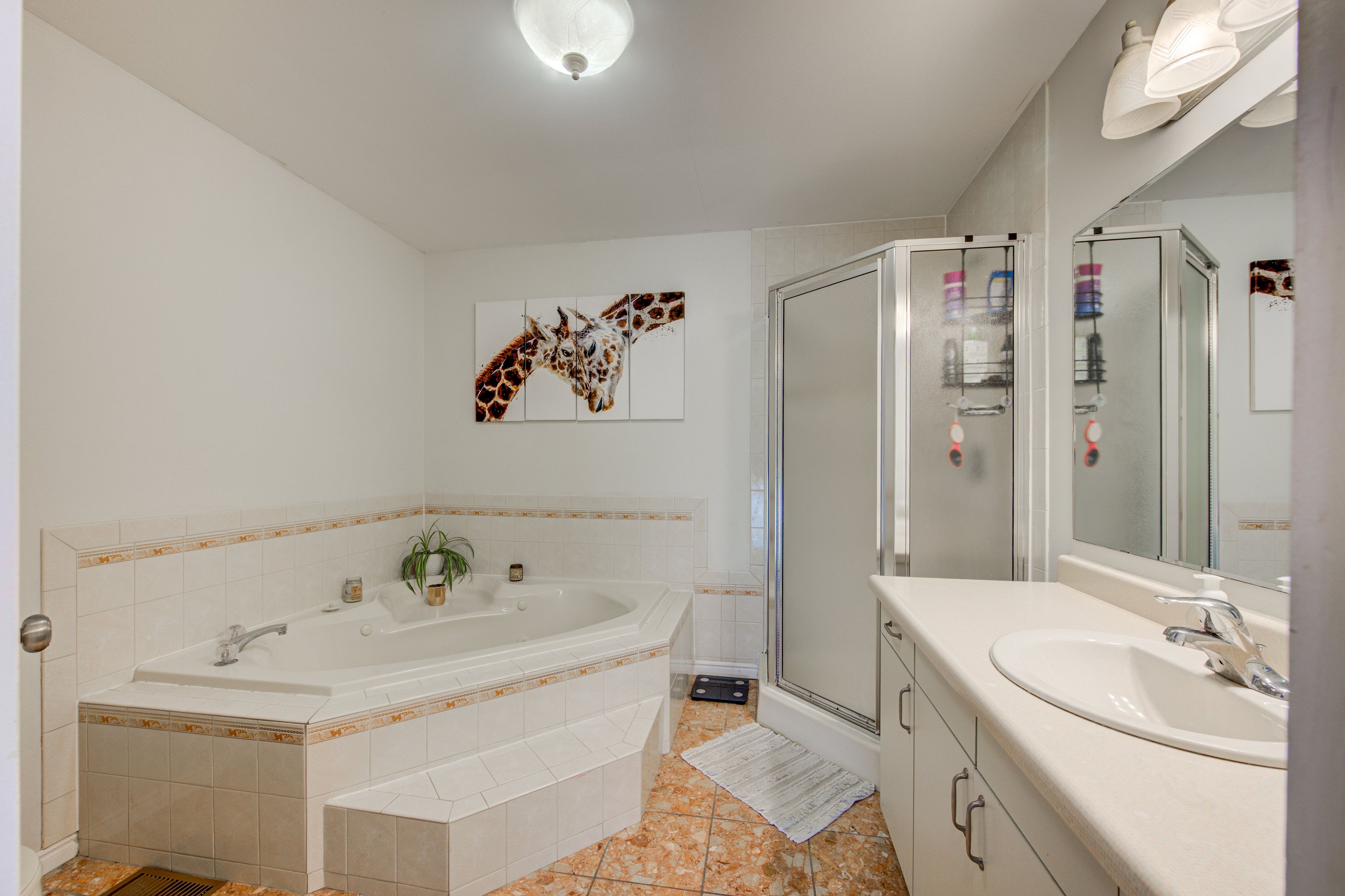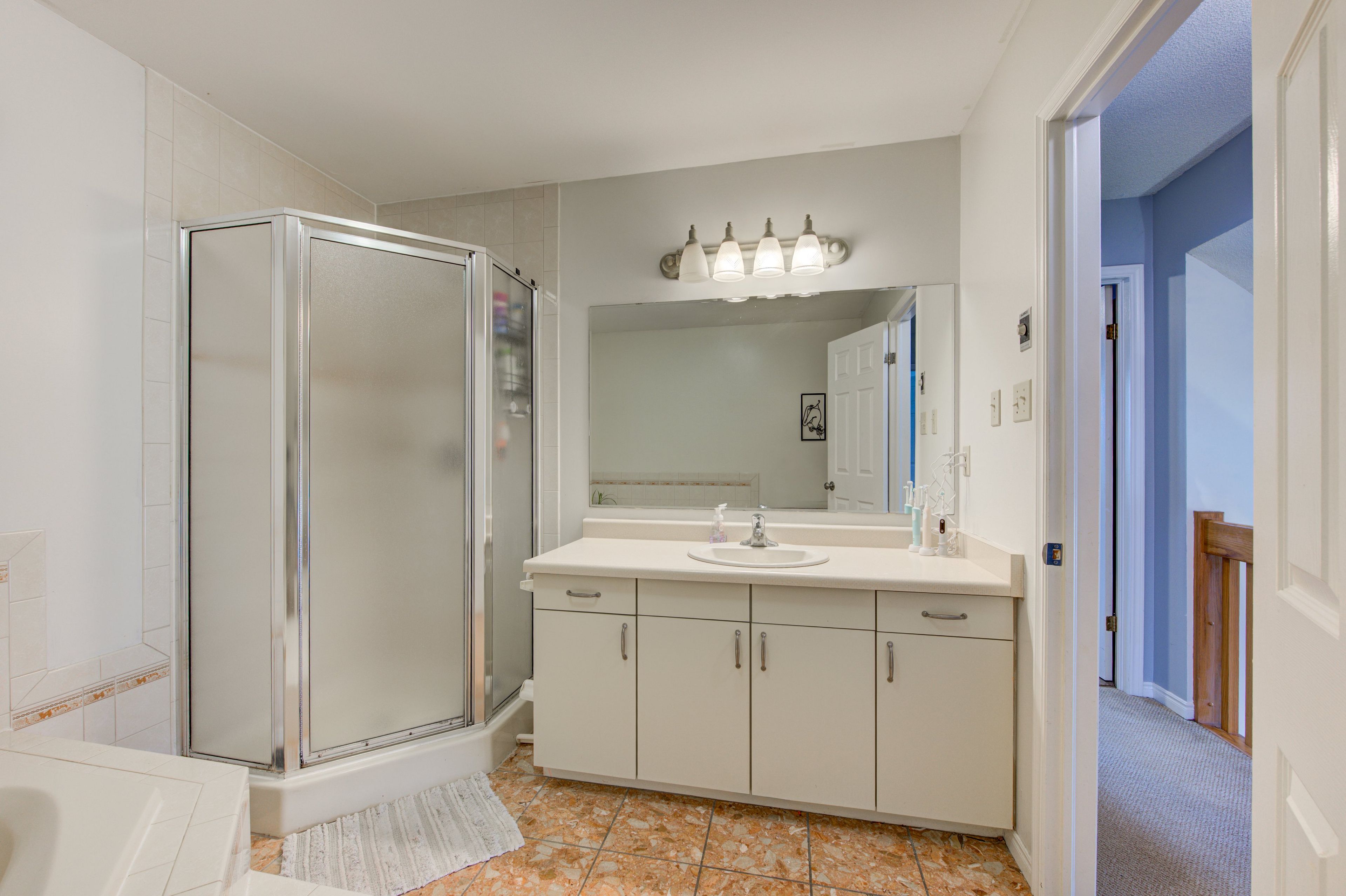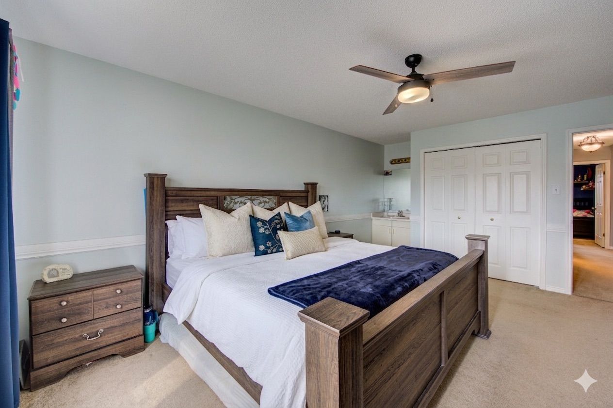 • Primary bedroom includes a makeup vanity for added comfort.