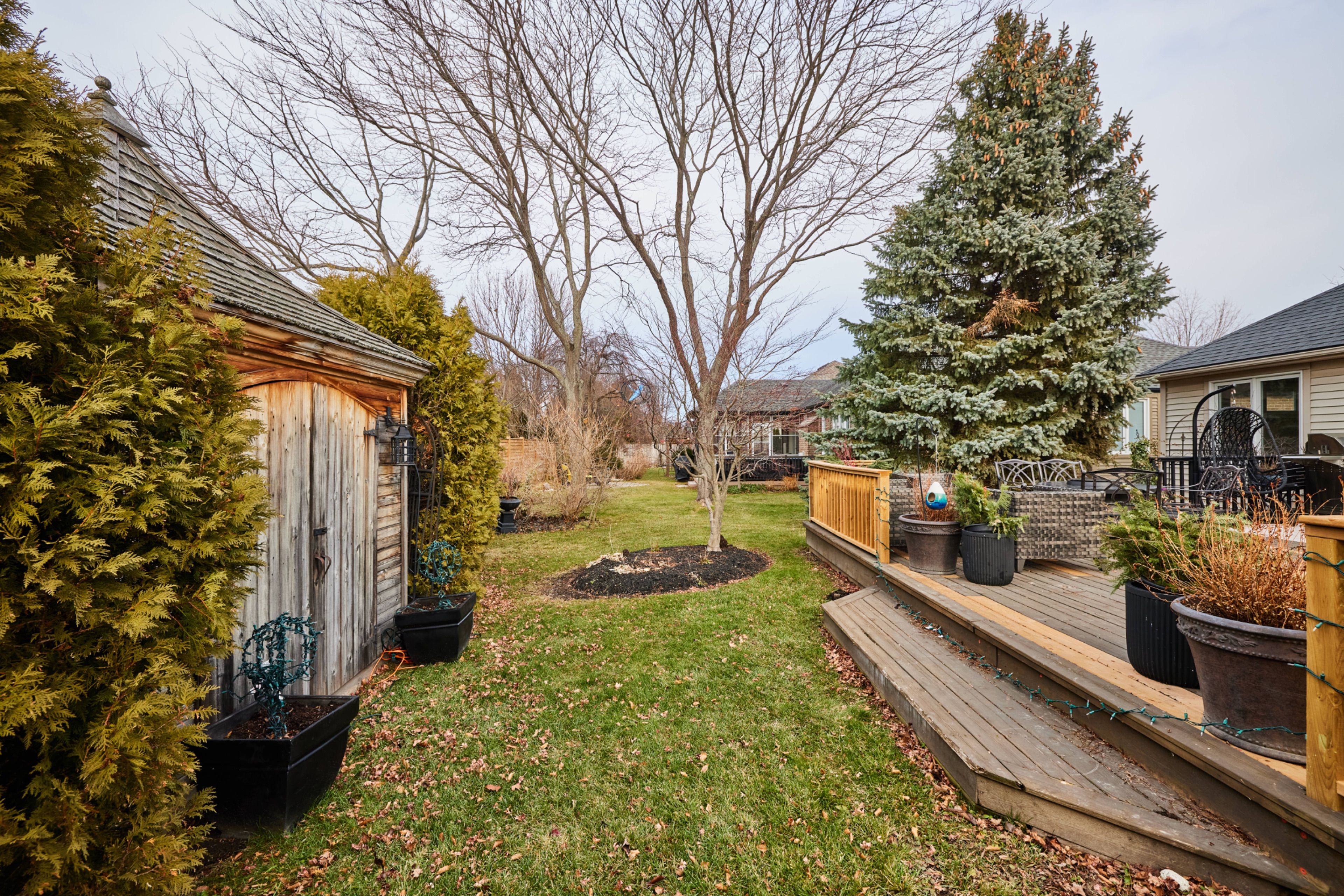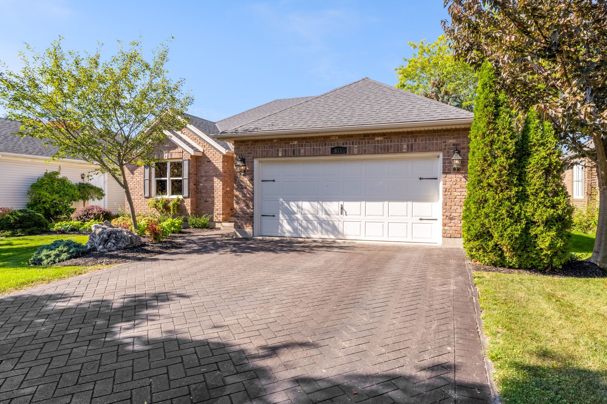 This picture perfect 2 bedroom bungalow awaits you! Welcome to 611 victoria street! Nestled in a prime niagara-on-the-lake old town neighbourhood that is only a short walk away from many award winning wineries - this quiet location is the perfect place to enjoy all the best notl has to offer. To say the landscaping of this property is stunning would be an understatement. The rear yard offers a large deck surrounded by mature trees and flower beds, and as cute as can be garden shed. Inground sprinklers keep both the front & back yards lush and green. The home itself has been painstakingly renovated in the last year and features gleaming luxury finishes at every turn. As you walk up to the gorgeous wood and glass front door you'll appreciate the great amount of natural light that fills every room of the home. The living room offers a natural gas fireplace, gleaming hardwood floors and a cozy environment perfect for relaxing in at the end of a long day. The stunning dining room will be your favourite place to host lavish dinner parties with your loved ones. The completely renovated kitchen includes stunning white cabinets, a herringbone tile backsplash, stainless steel luxury appliances with a panel-covered dishwasher, a breakfast nook and even a fluted farmhouse sink. The primary bedroom suite includes the same gorgeous hardwood found throughout the rest of the home, a spacious walk-in closet and a private 3 pc ensuite bathroom. The 2nd bedroom (currently used as a den) is nicely tucked away behind double doors with a great view of the backyard and also includes a 4 pc ensuite bathroom. A mud room just off the main entrance provides ample storage (includes hidden laundry hook-ups). The partially finished basement is great for storage but can easily be finished into additional living space (3 pc bathroom rough is available). All major amenities are only a few minutes away - simply just move in and begin enjoying the very best of niagara's coveted wine region!