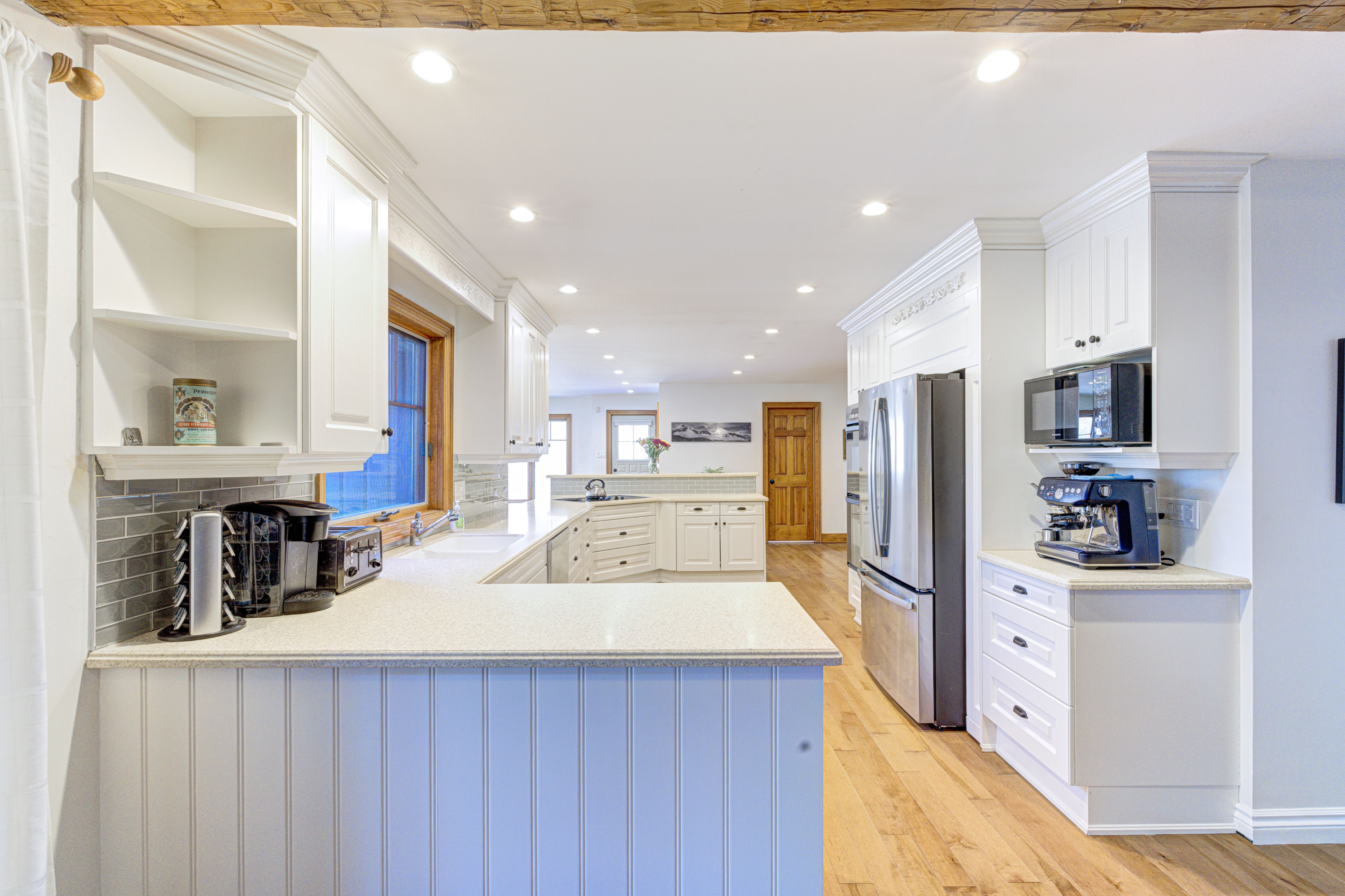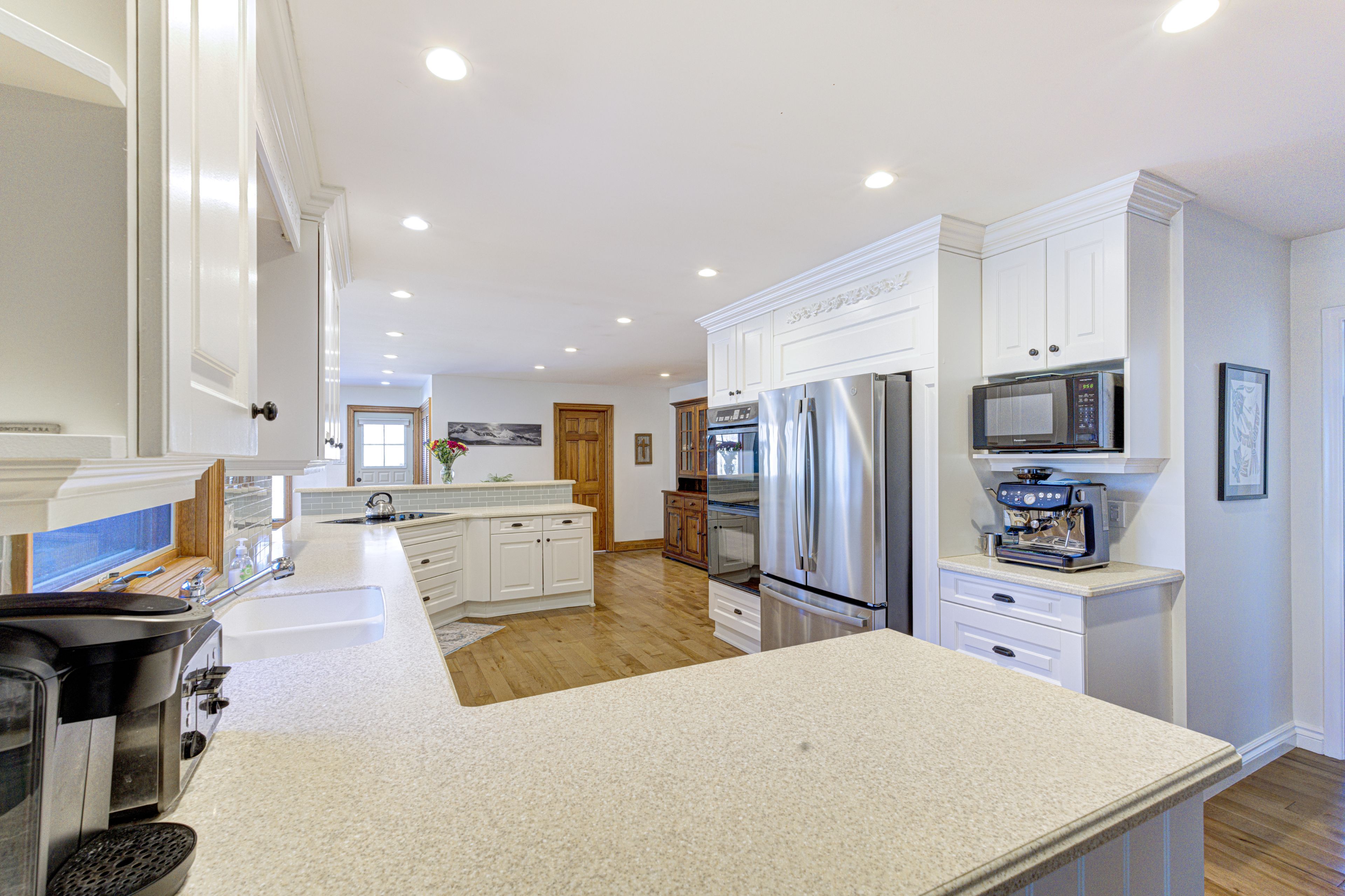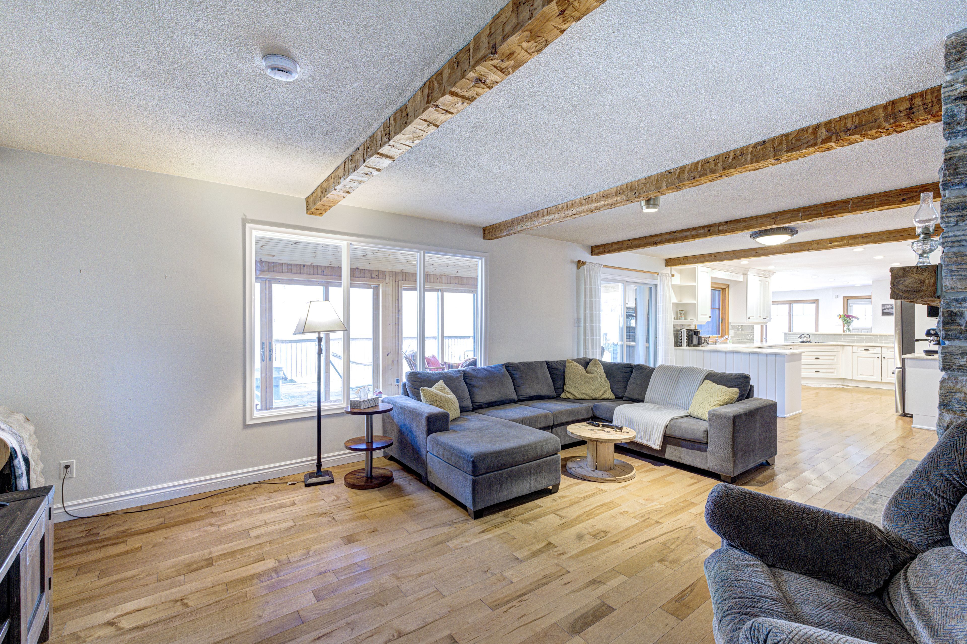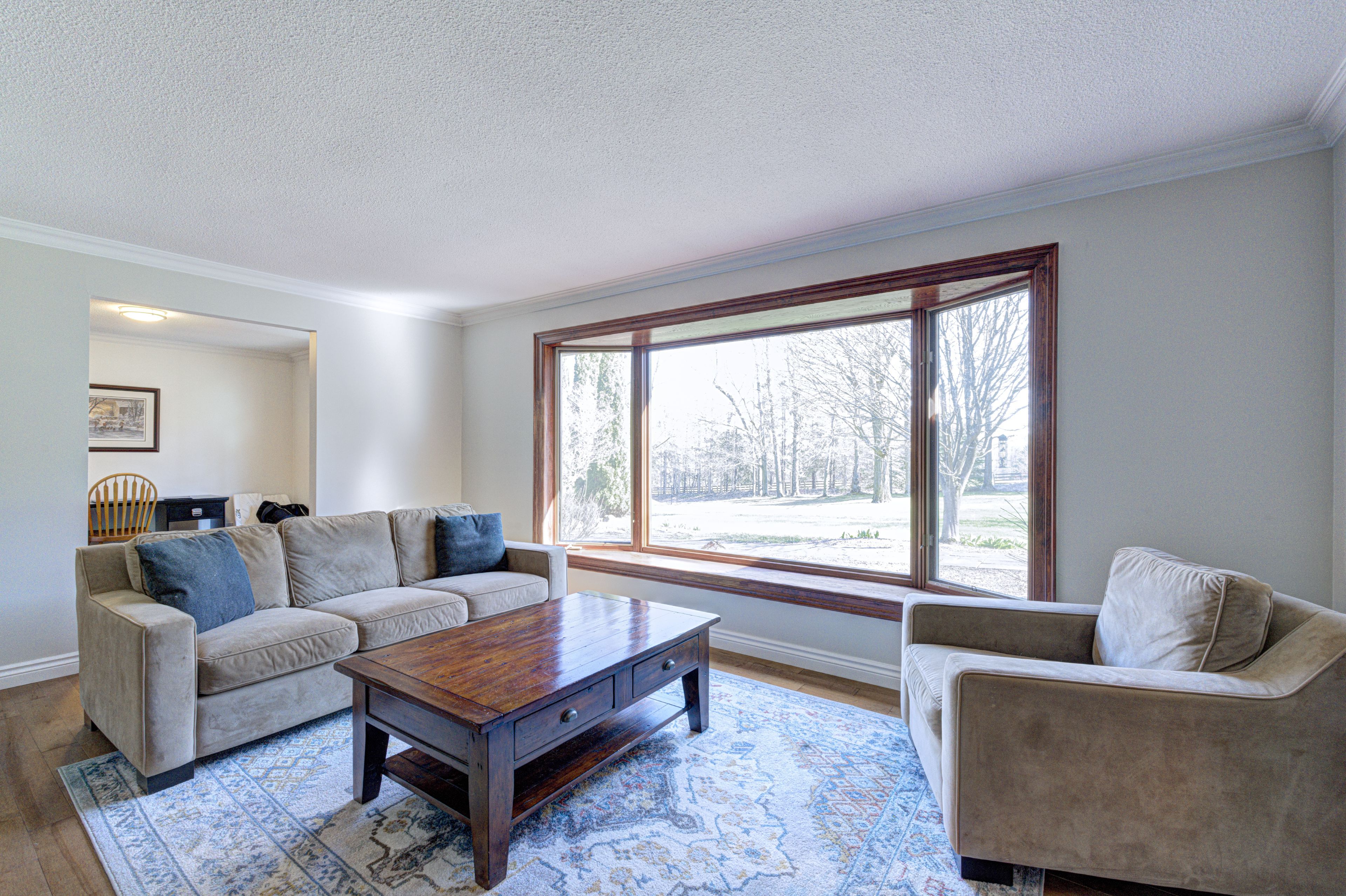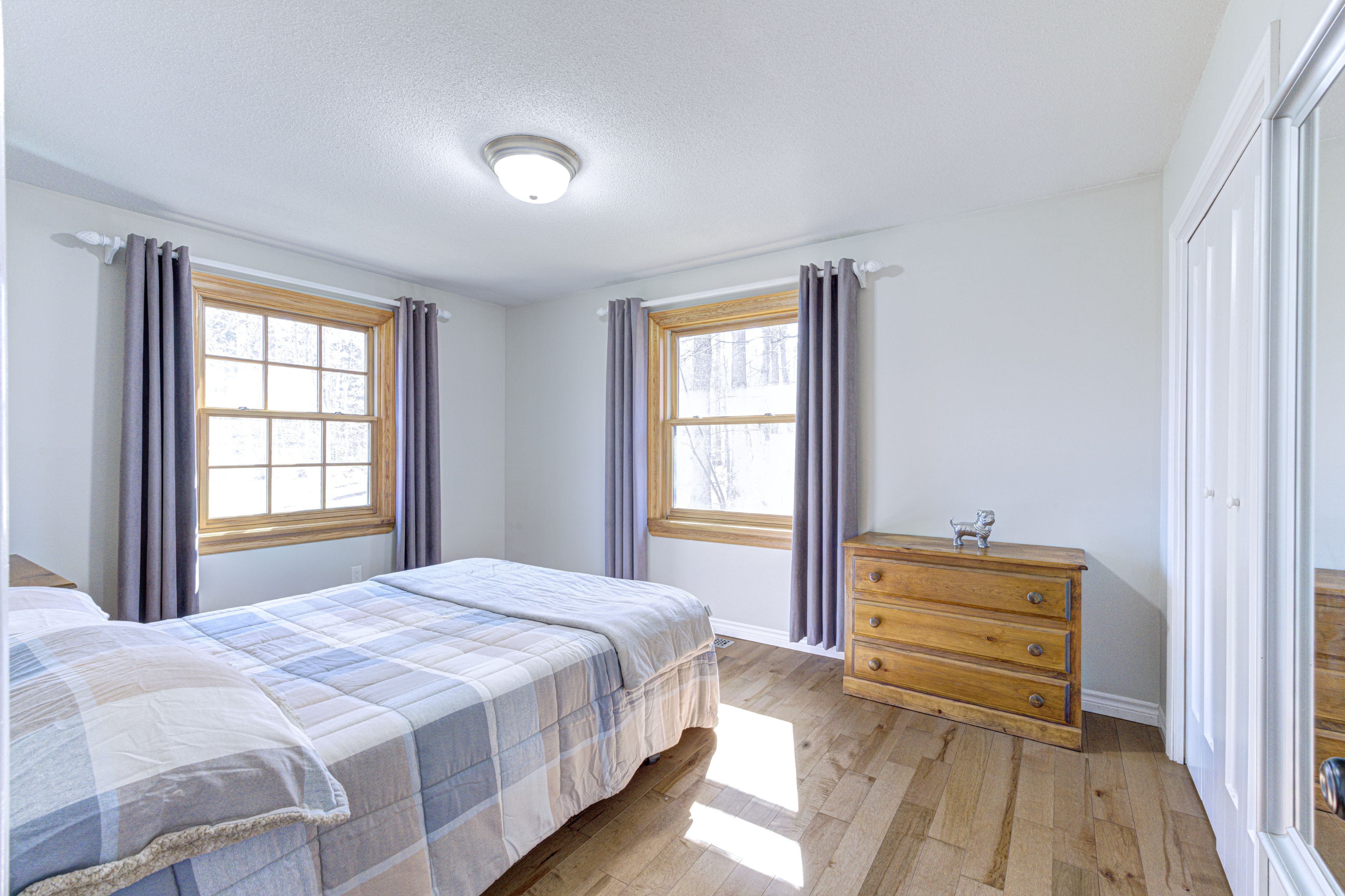 Spacious and well-maintained 4-bedroom bungalow with an attractive stone façade, set on an expansive ~5-acre property with approximately 500 feet of frontage. This open-concept home features a large kitchen with built-in appliances and a breakfast bar, flowing seamlessly into the dining area, sitting room with fireplace, and a generous family room with a double-sided fireplace and walkout to the sunroom. The bright sunroom offers three walkouts to the deck and hot tub, creating an ideal space for entertaining or relaxing. A formal dining room and living room with hardwood flooring add to the home's versatility and charm. The primary bedroom includes a 3-piece ensuite and a walk-in closet. Key updates and features include: pool (2023), generator (2023), hot tub (2019), roof (approx. 5 years old), propane furnace (2025), owned hot water tank, and two 200-amp electrical panels-providing ample power capacity for modern living. The in ground pool is fully prepared and ready to be enjoyed for the upcoming summer season.