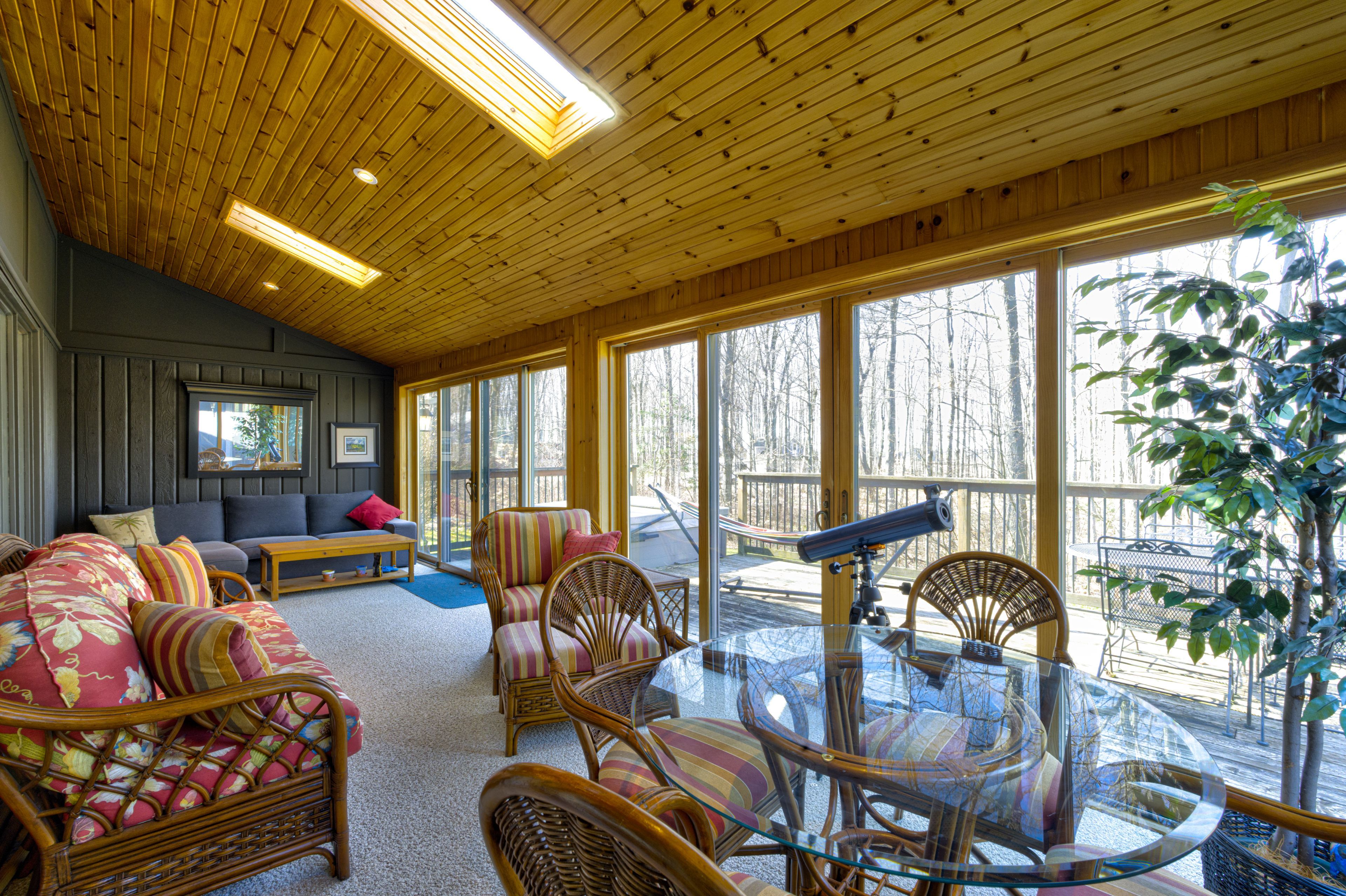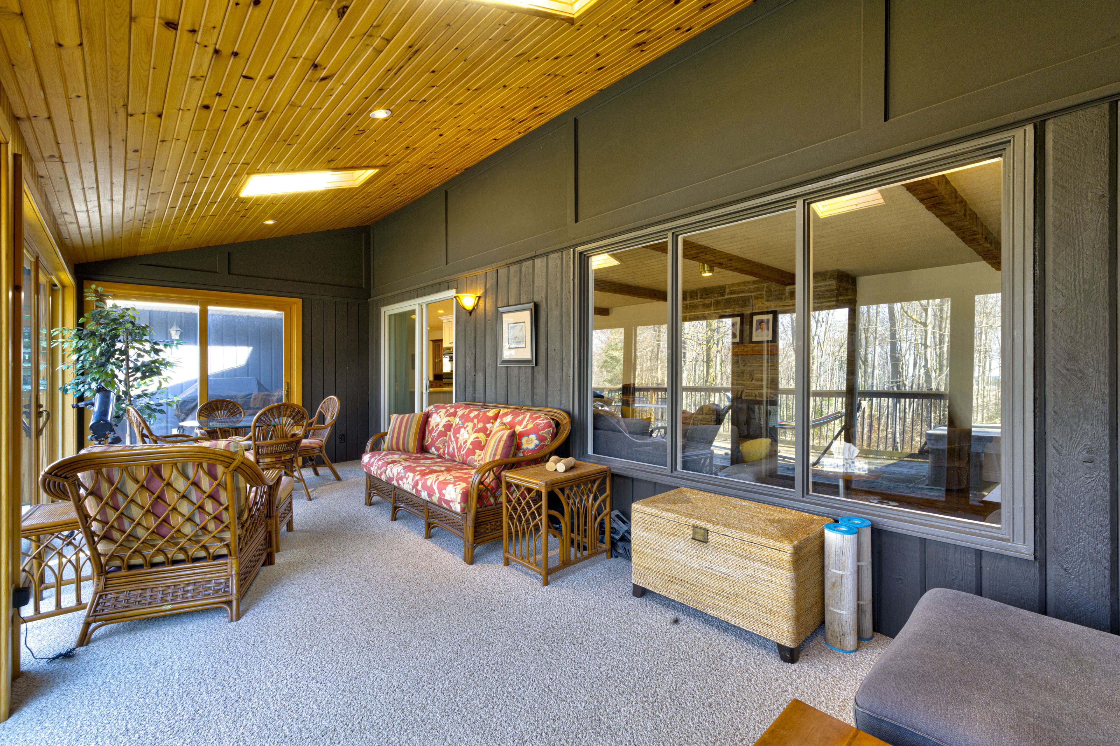 • Bright sunroom with walkouts to deck and hot tub, perfect for entertaining.