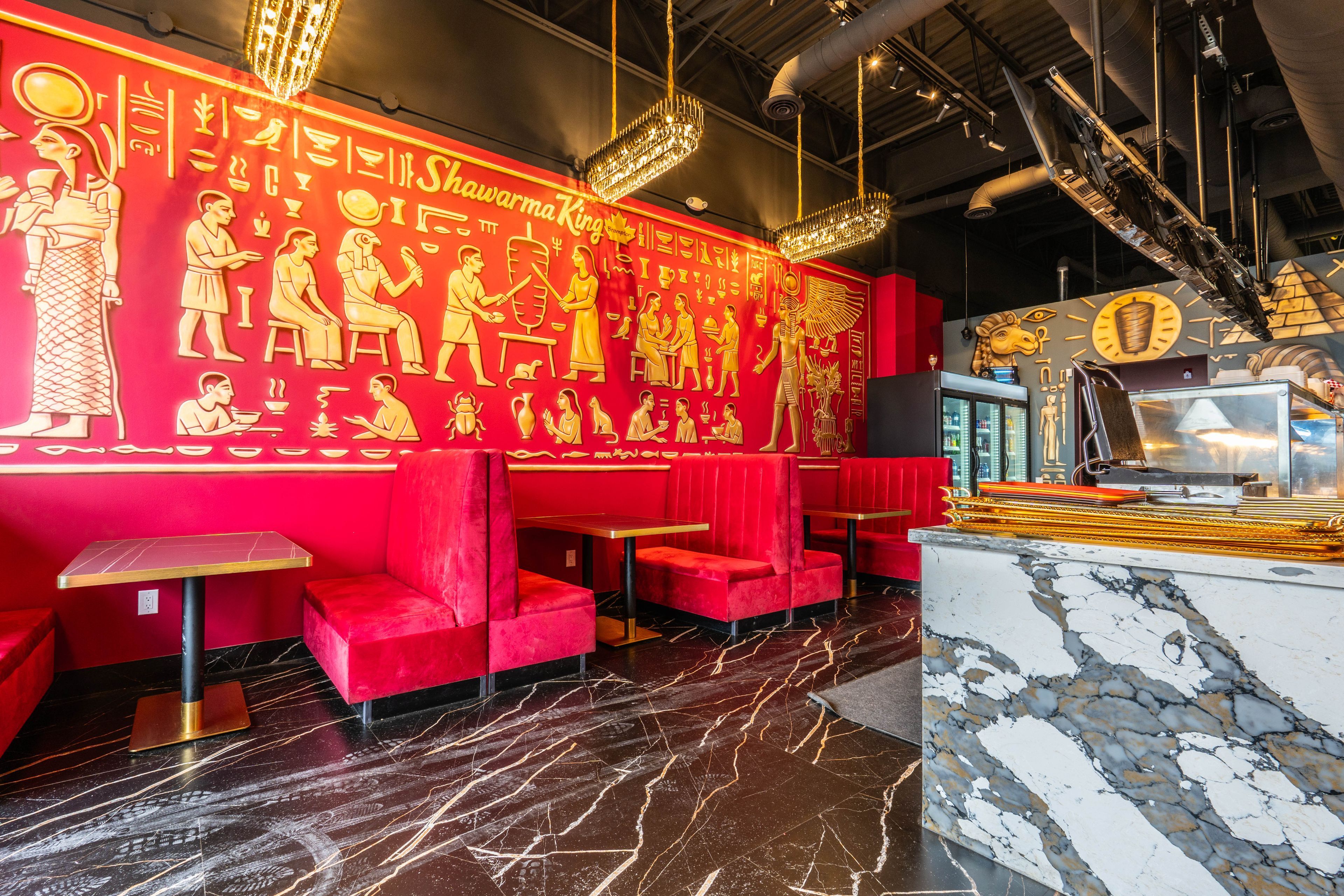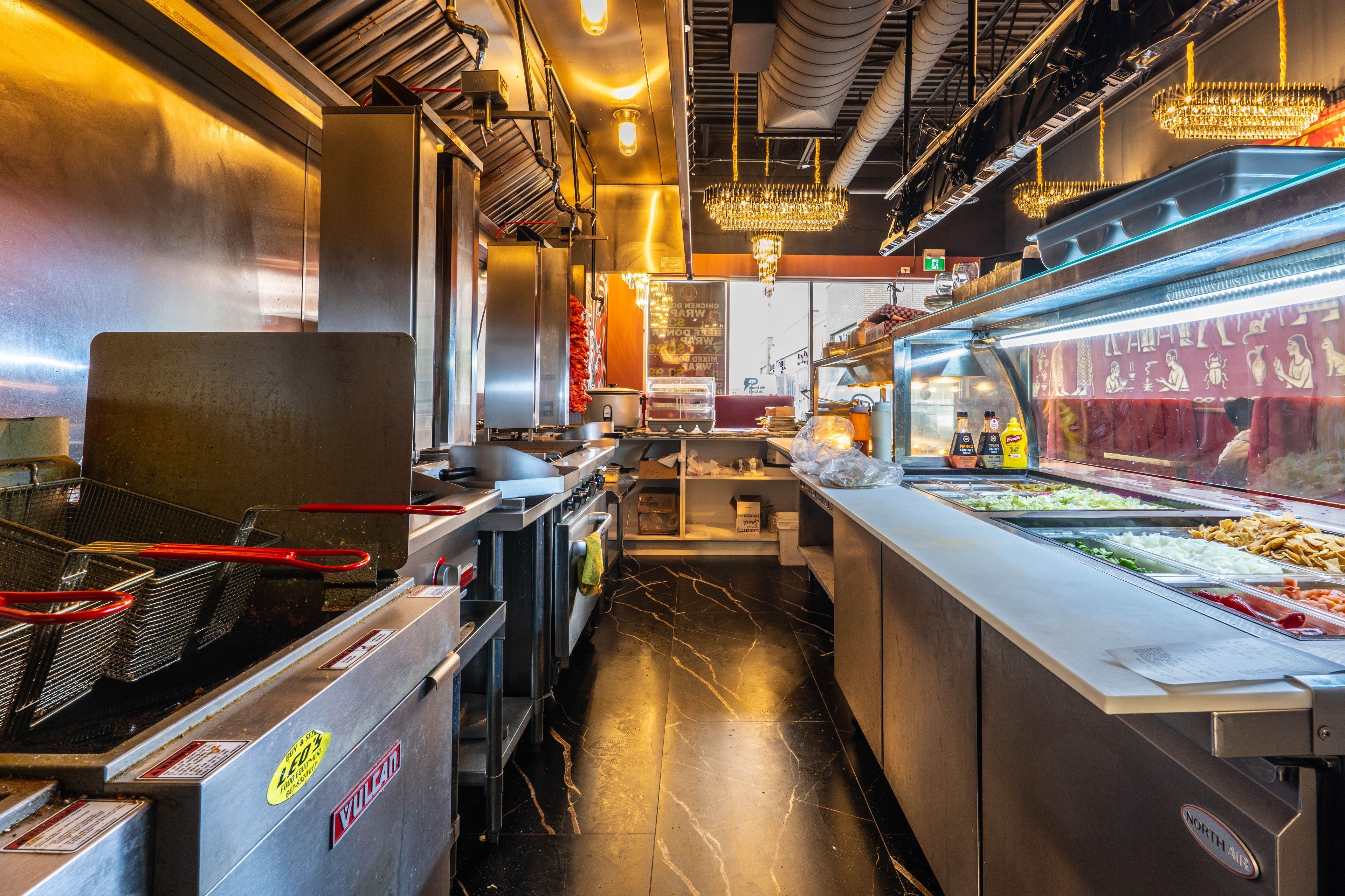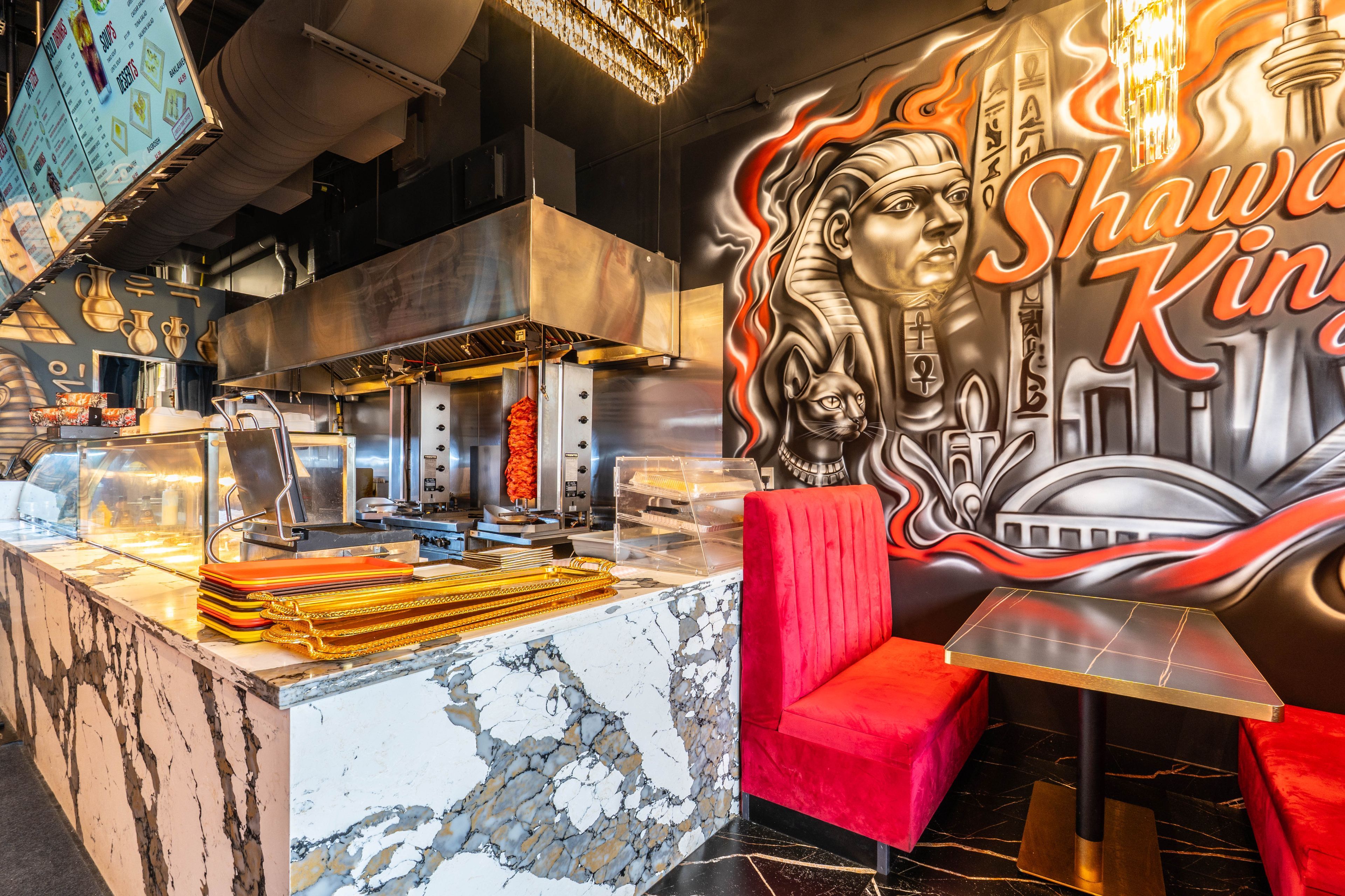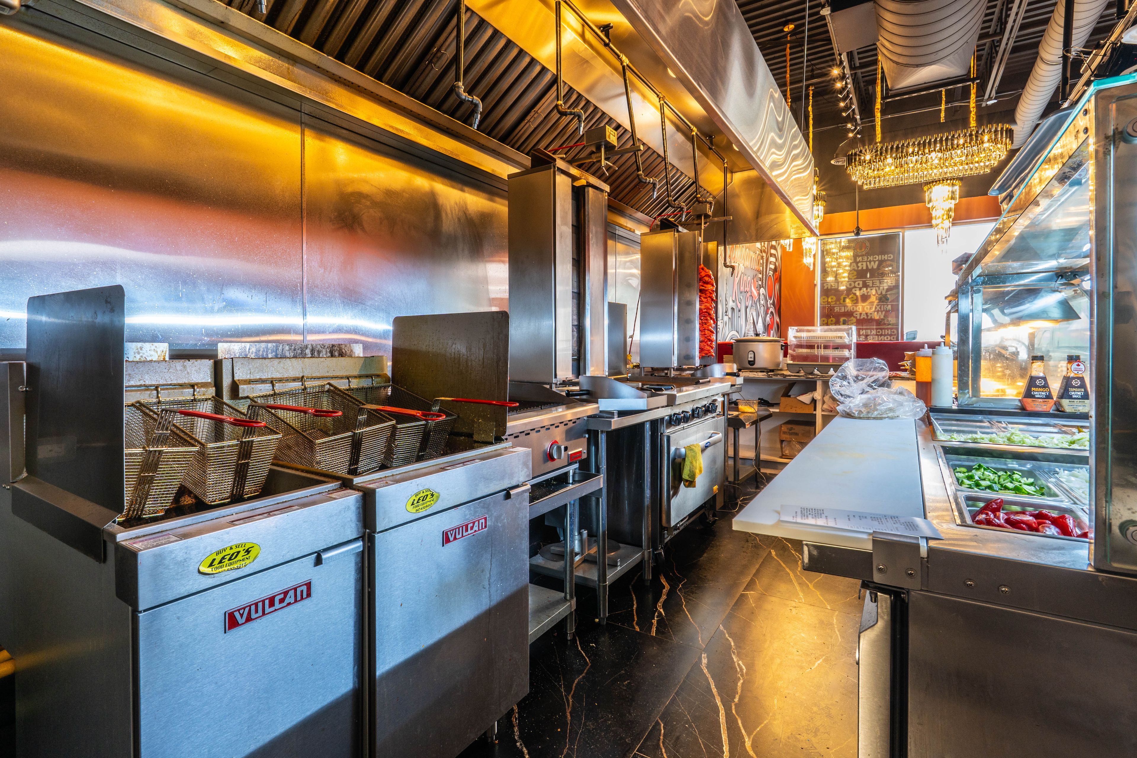 Opportunity to start your own food and restaurant non franchise business in the new build shawarma king with high end impressing finishing, sale include all the new chattels and equipment, decent space 40 to 50 seats, rare to find 2 luxe finishing washrooms gross rent $6700 include tmi., lcbo licence, high sales with the known famous middle east cuisine, a lot of parking in the booming plaza.
