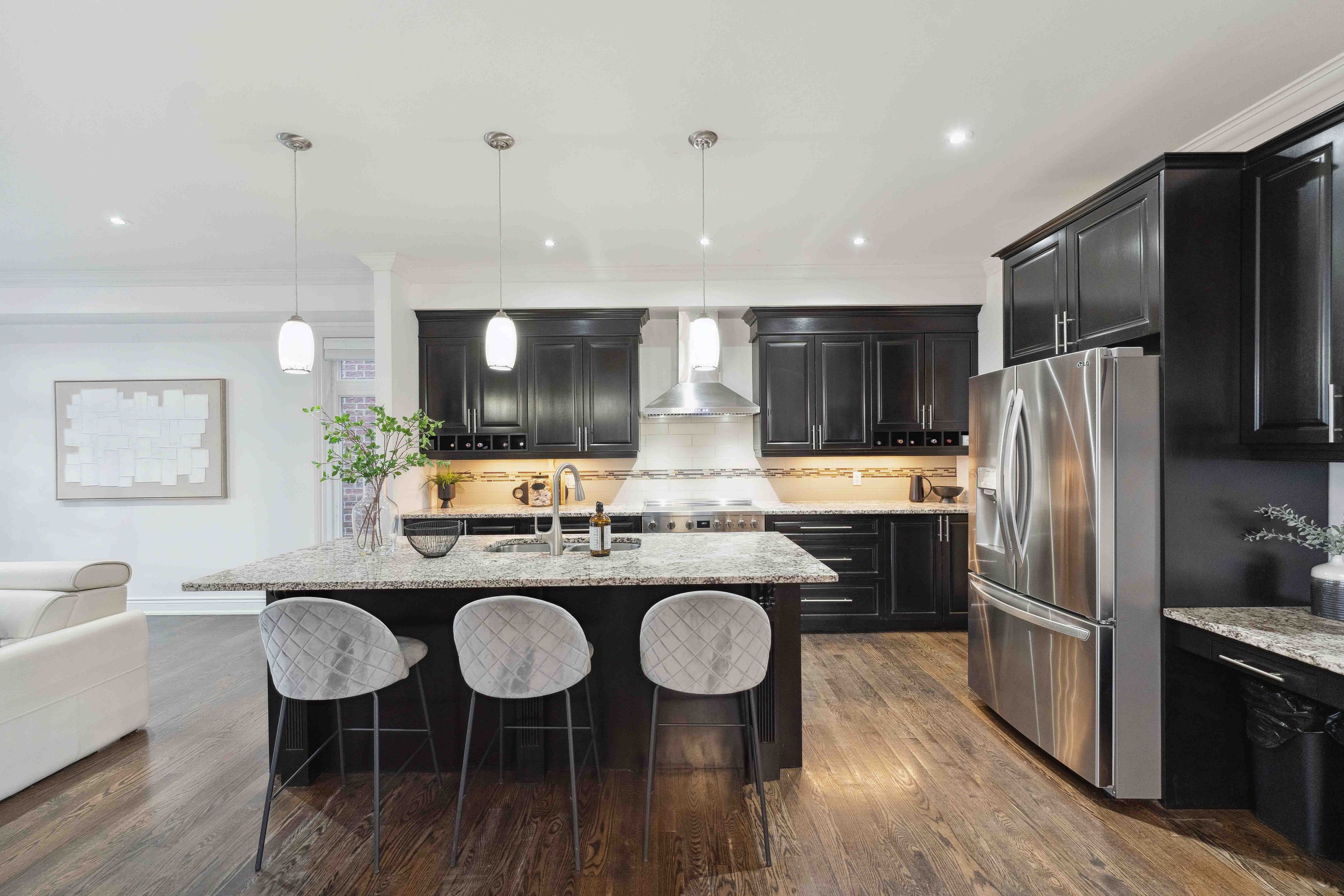 • Chef's kitchen with modern finishes, butler's pantry, and oversized walk-in pantry.