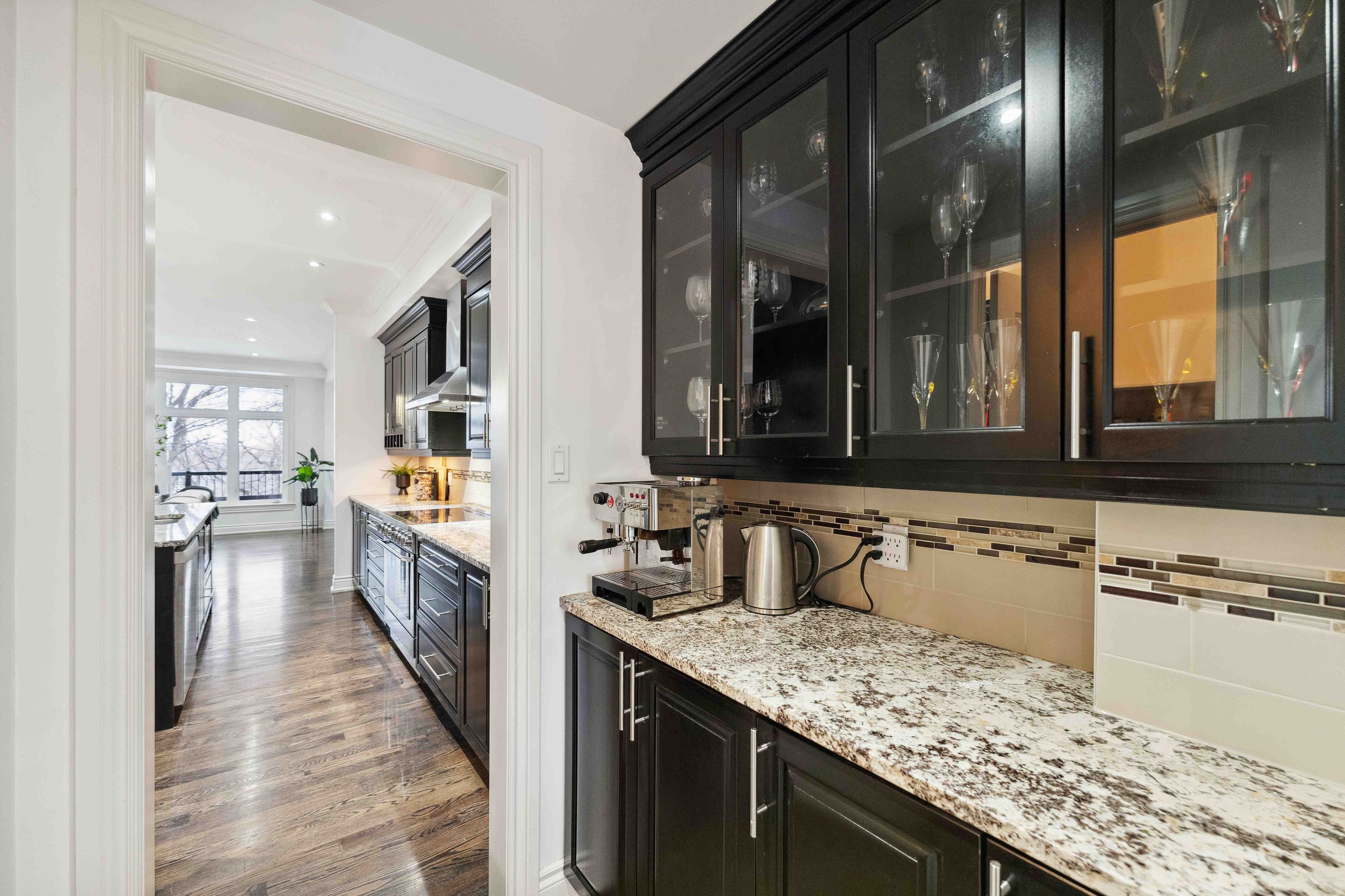 • Chef's kitchen with modern finishes, butler's pantry, and walk-in pantry.