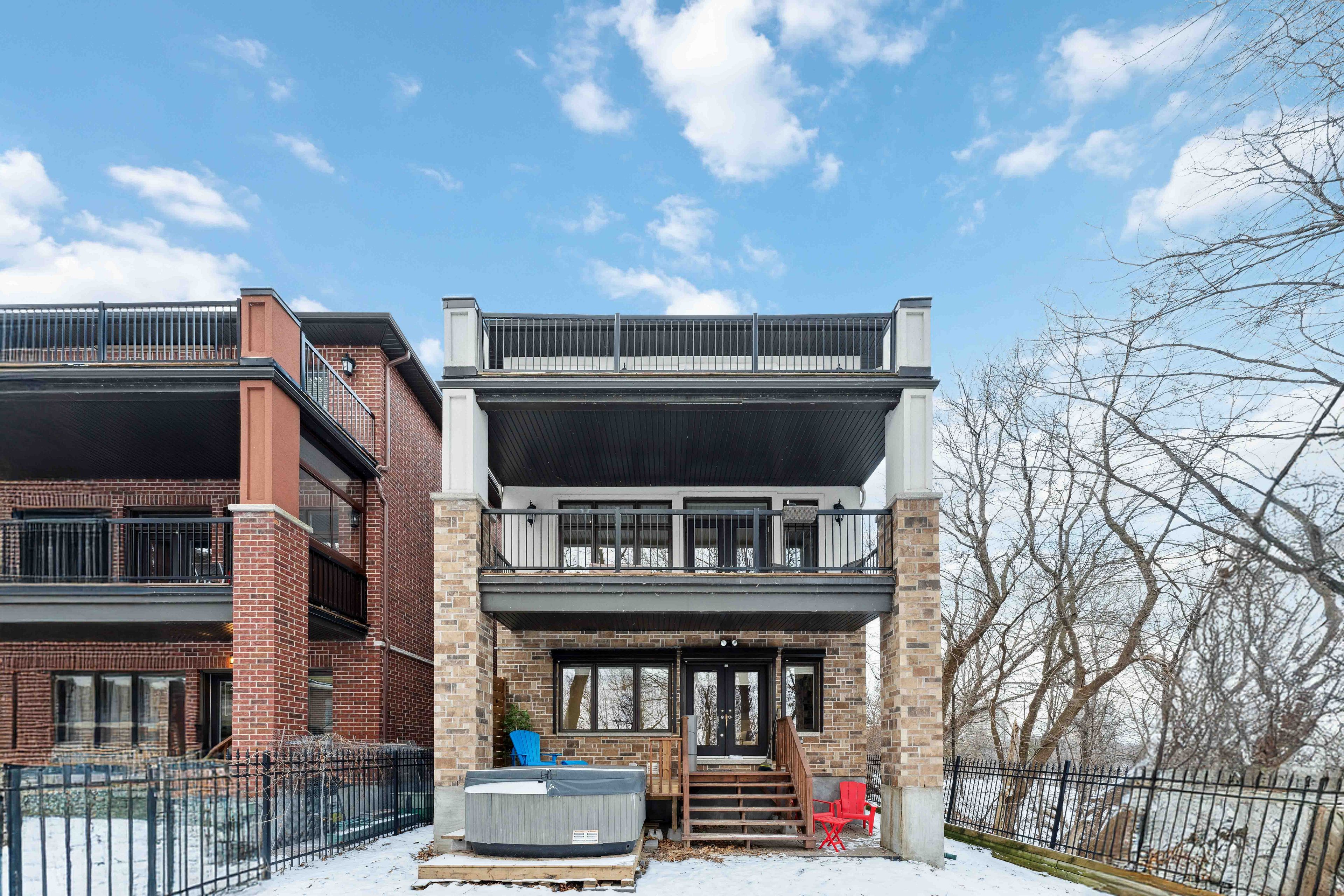 • Tranquil outdoor space with balconies and an exterior hot tub.