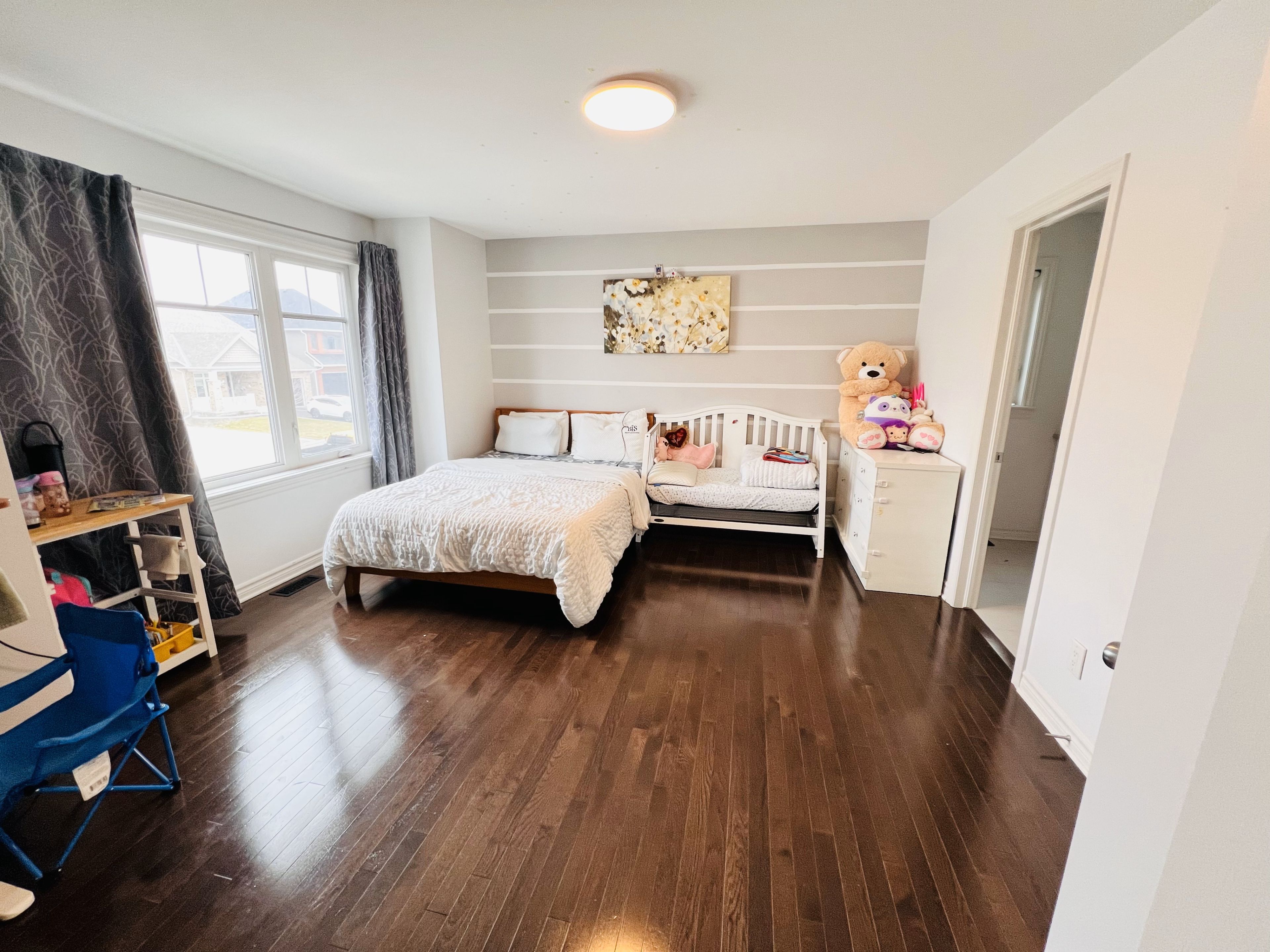 • Two bedrooms upstairs with ensuite bathrooms and walk-in closets.