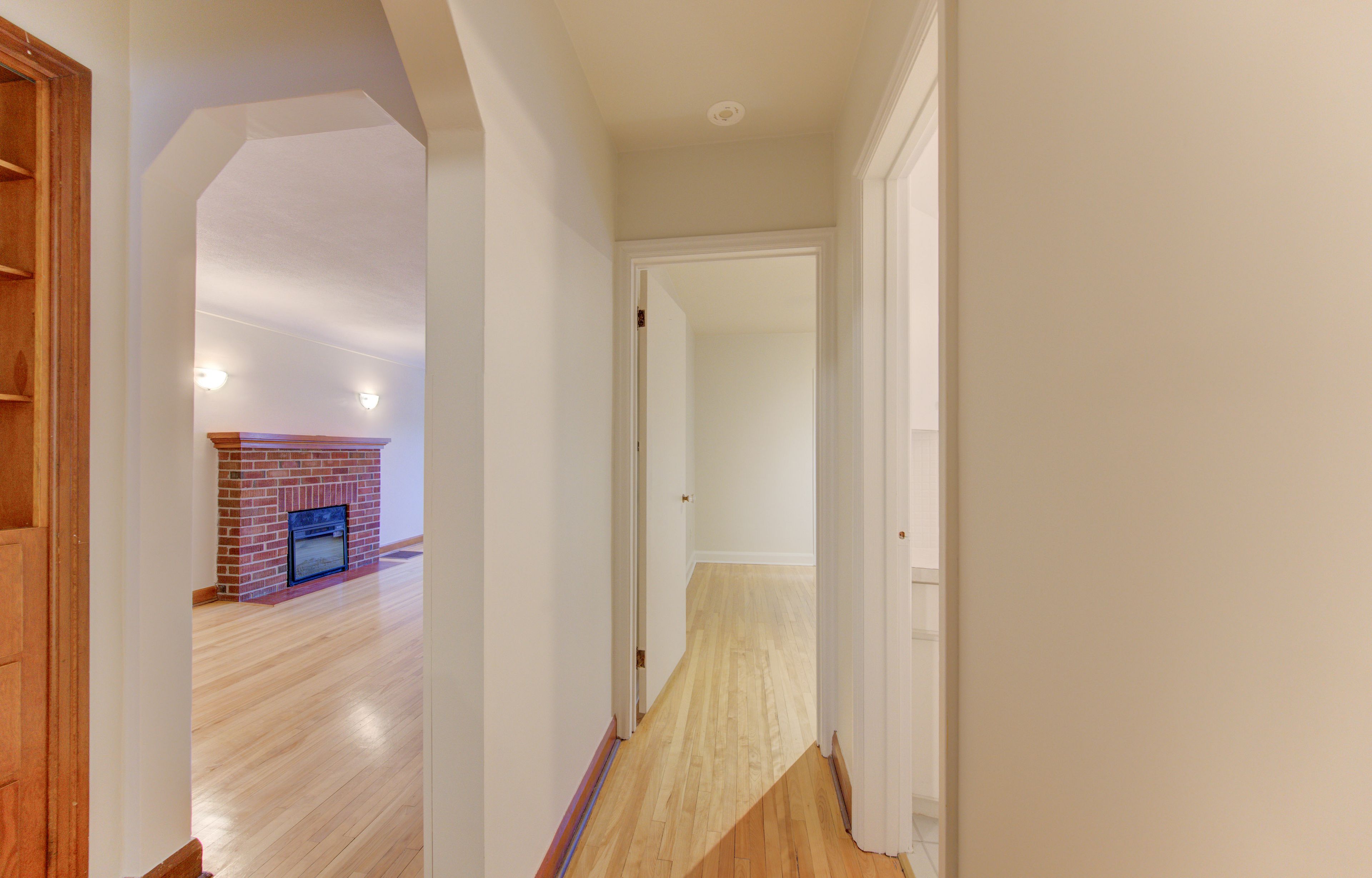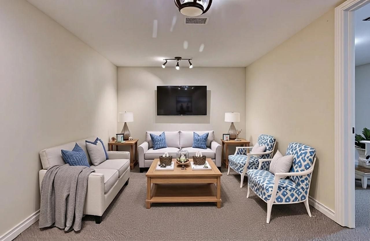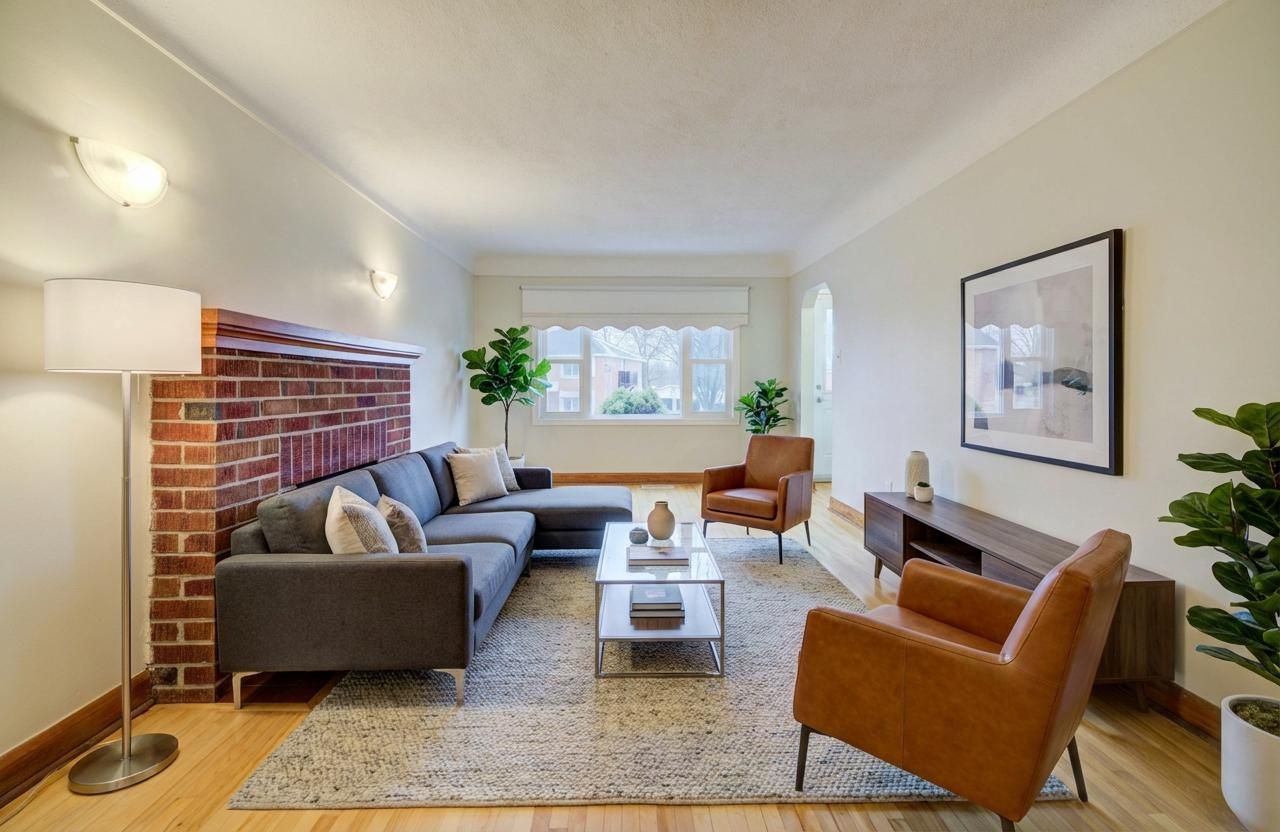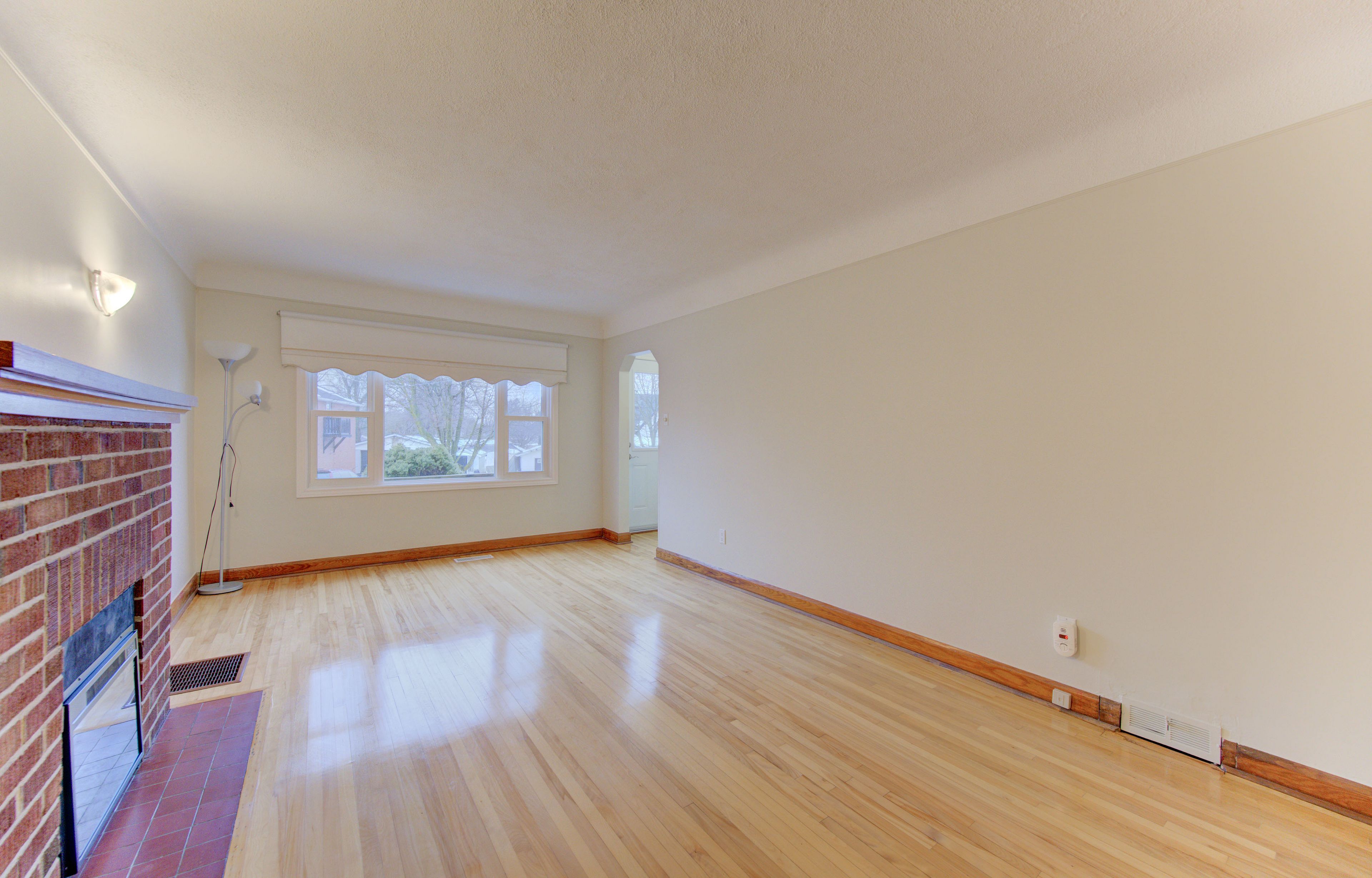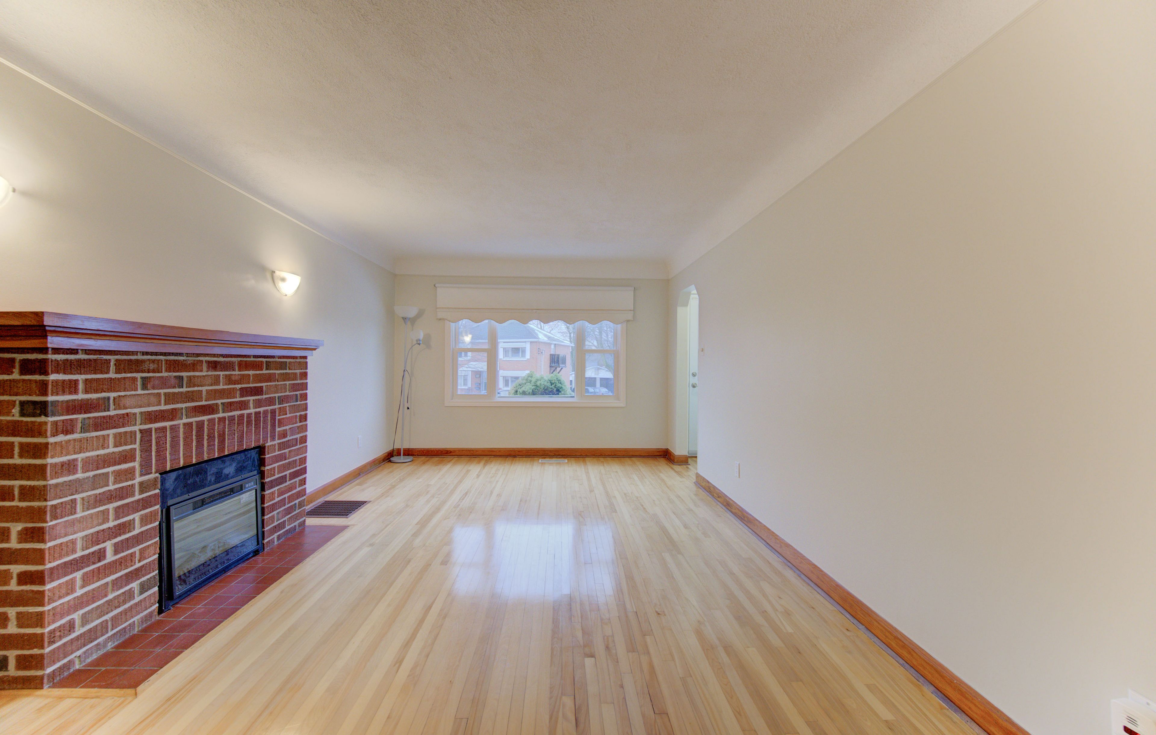 • Bright main level with spacious living room featuring a cozy fireplace.
