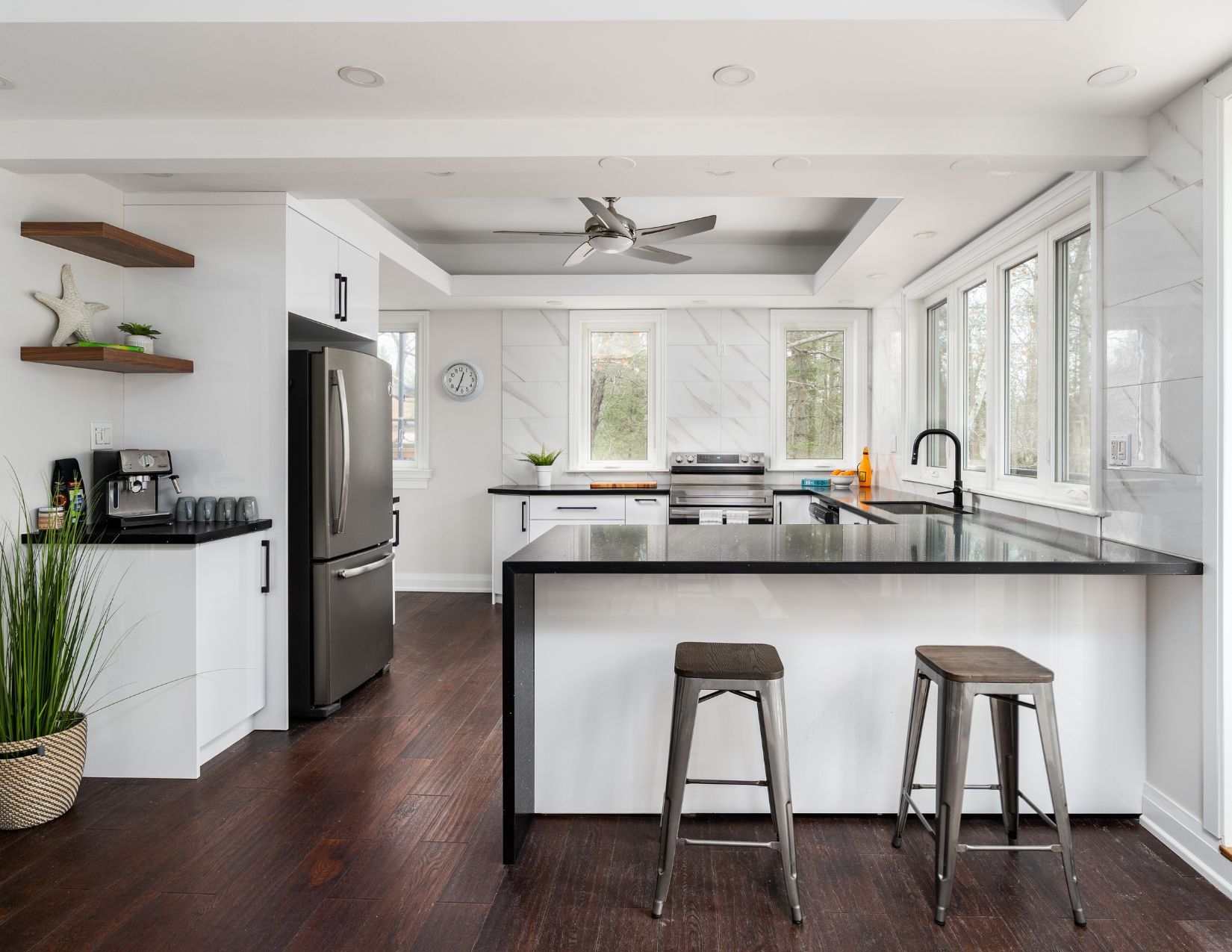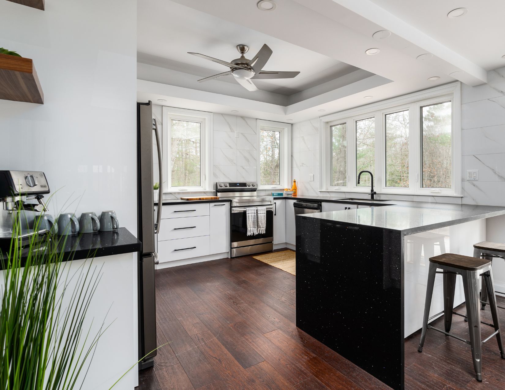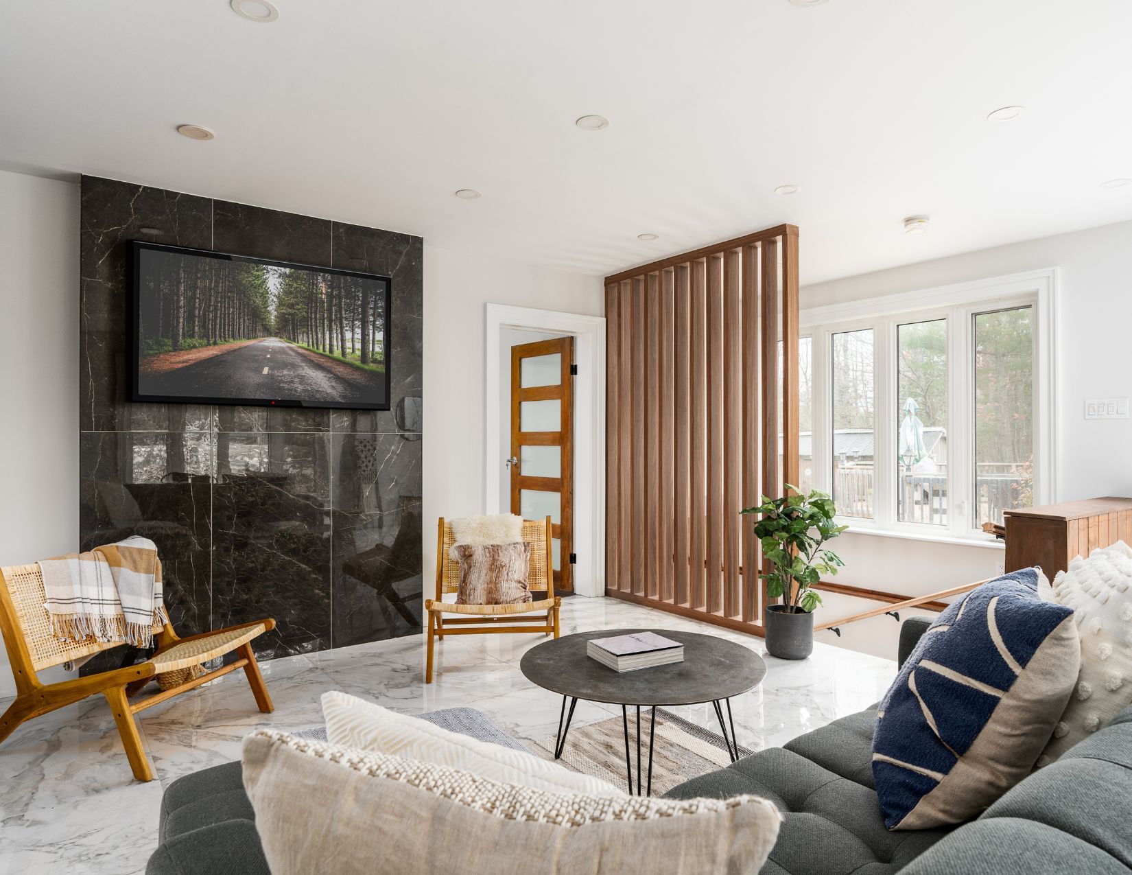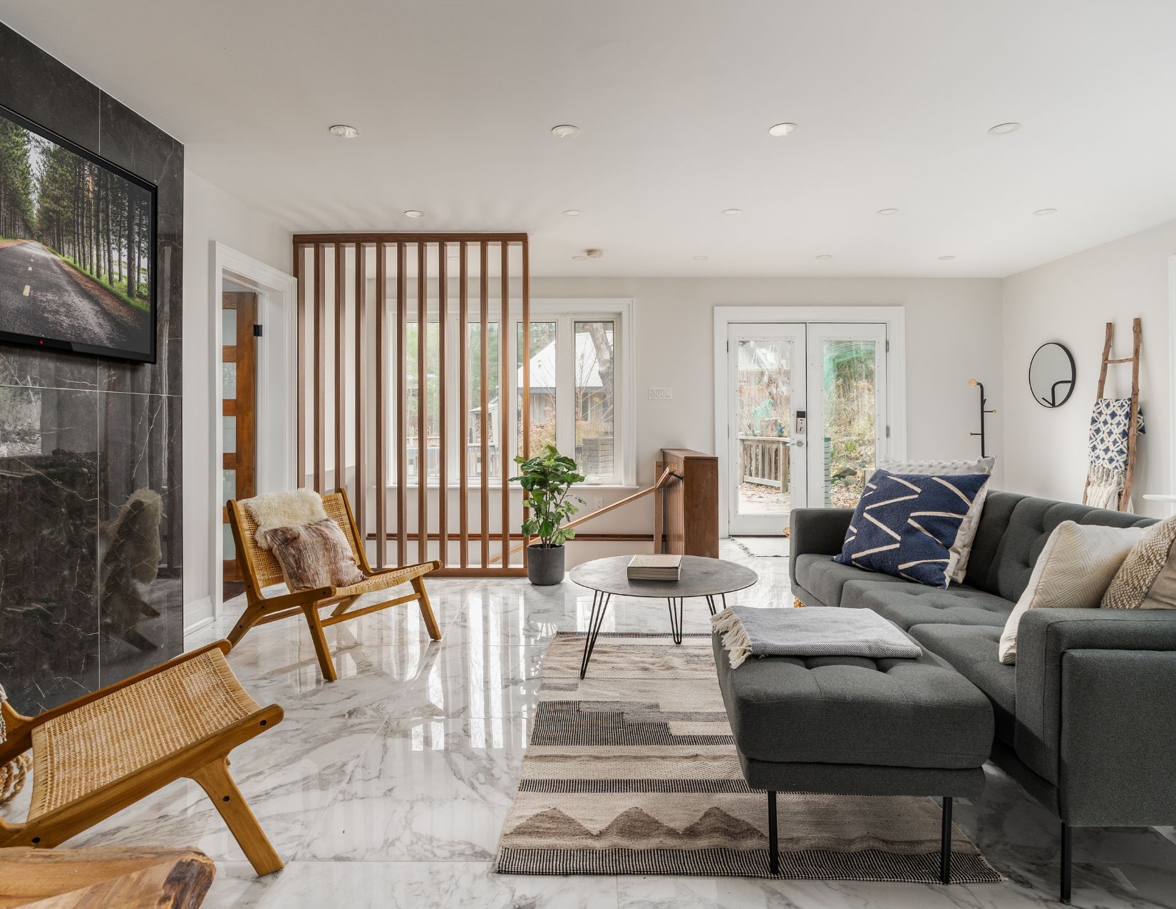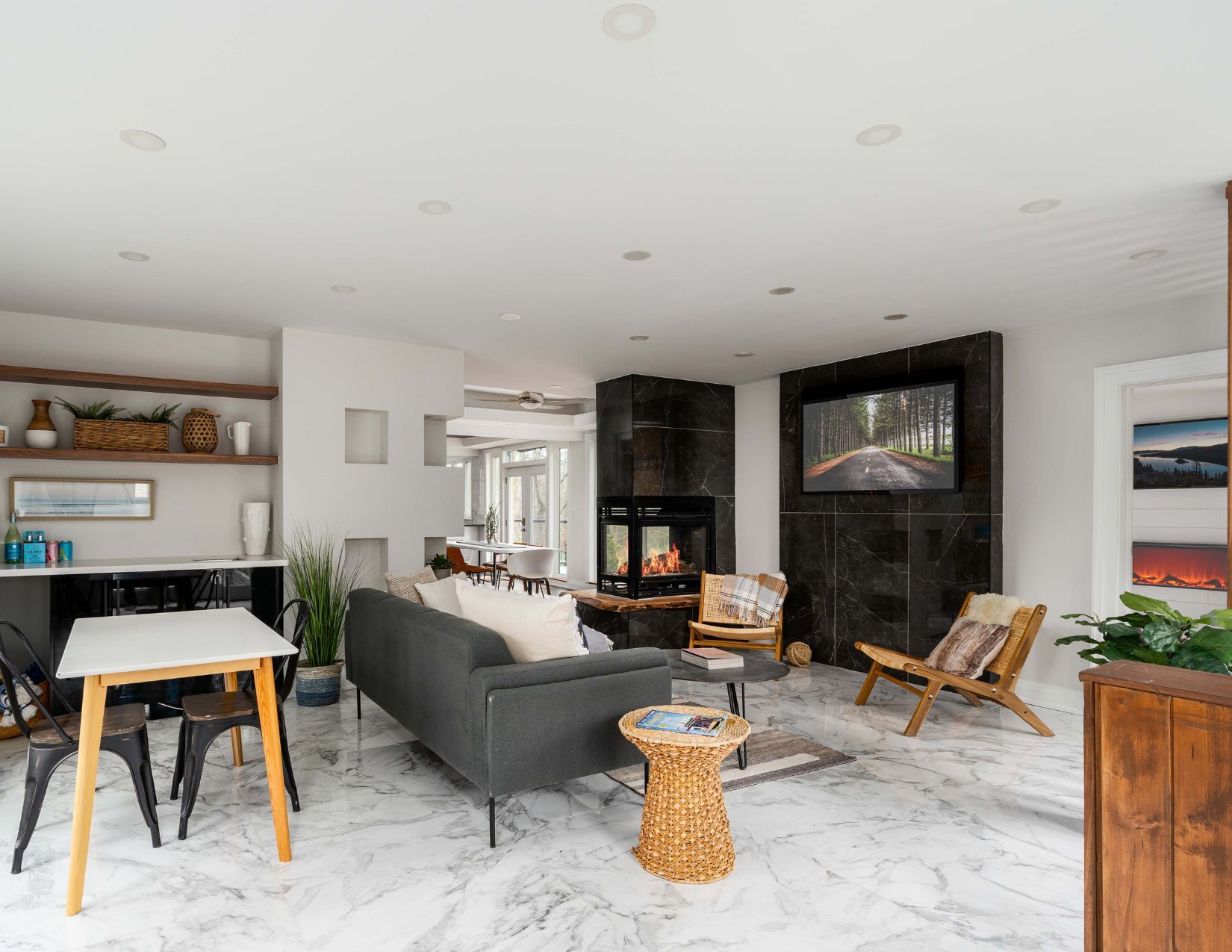• Recently renovated open-concept home on 0.95-acre lot with lake views.
