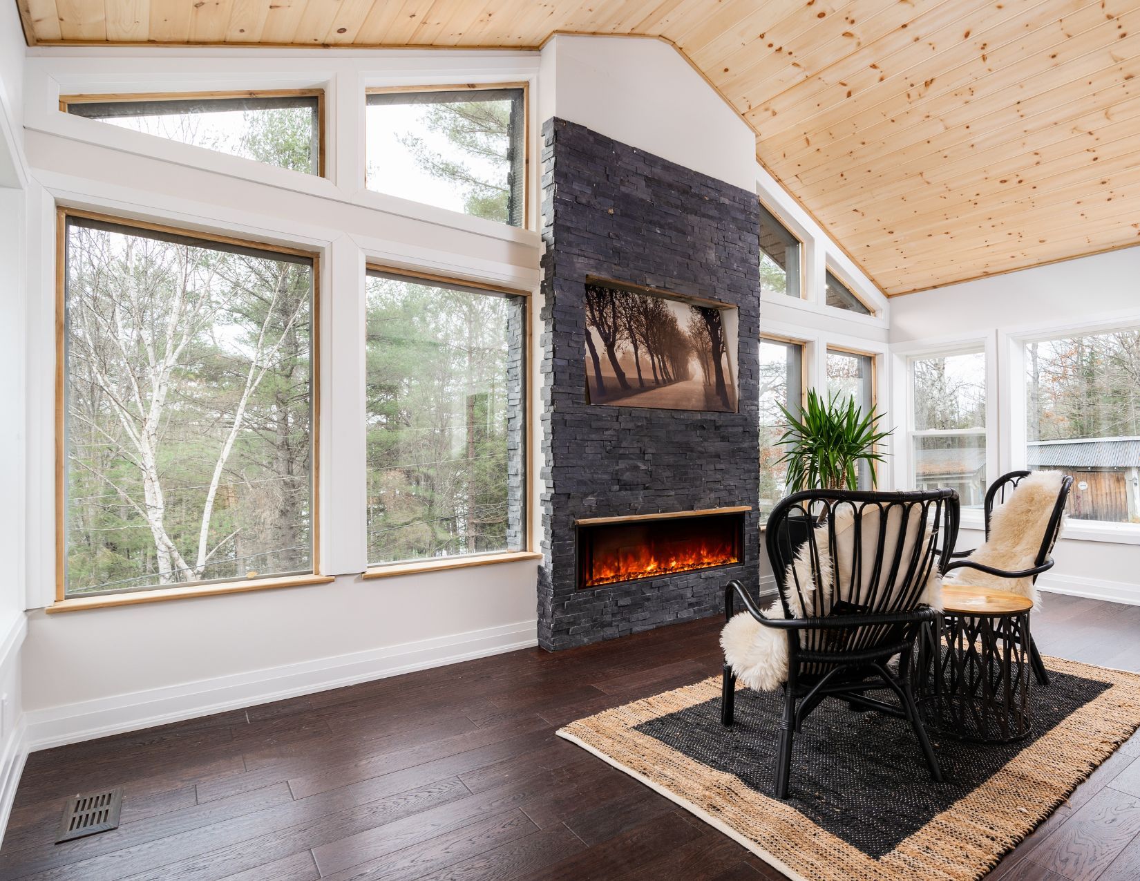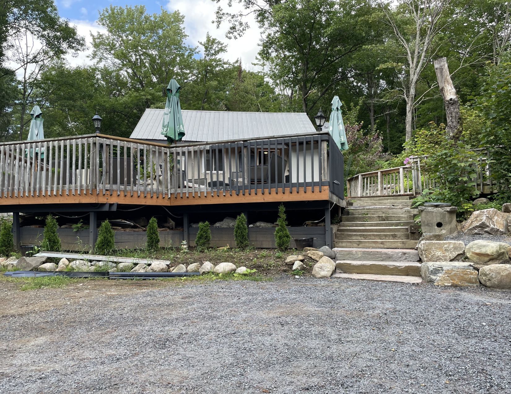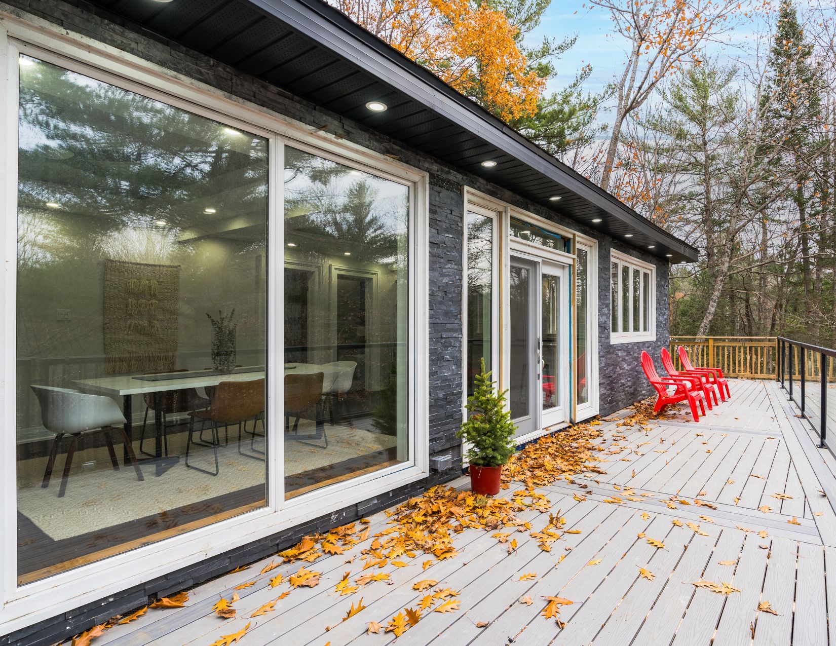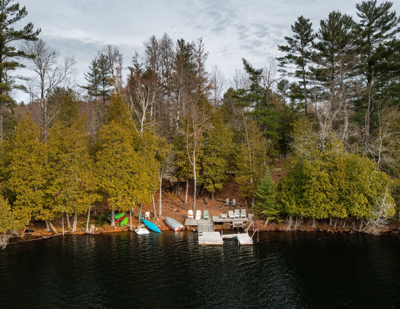 Escape to this newly renovated, open-concept 4 season home, nestled on a majestic 0. 95-acre treed lot overlooking langford lake. This turn-key 4-season home perfectly blends modern luxury with rustic cottage charm. The heart of the home features a wrap around deck overlooking the lake and gorgeous landscape, a gourmet kitchen with built-in appliances, a breakfast bar, and a layout designed for entertaining. The main floor flows seamlessly into spacious living areas with high ceilings and large windows that frame peaceful forest views. The home offers a flexible layout with 4+1 bedrooms and 2 bathrooms, including a primary suite with an ensuite bath and direct walk-out access to the deck. Multi-tiered wrap-around decks expand your living space outdoors, offering the perfect setting for summer bbqs or morning coffee while overlooking the private grounds. Just steps away, enjoy your own municipally permitted private dock and sandy waterfront access on beautiful langford lake-perfect for swimming, boating, and fishing without the high waterfront taxes. The property also features a large detached 2-car garage/workshop, wood shed, and garden house for ample storage and loads of possibilities for a multi-generational compound in the heart of the north. Currently operating as a successful airbnb with strong income potential, this is an ideal investment or family getaway.