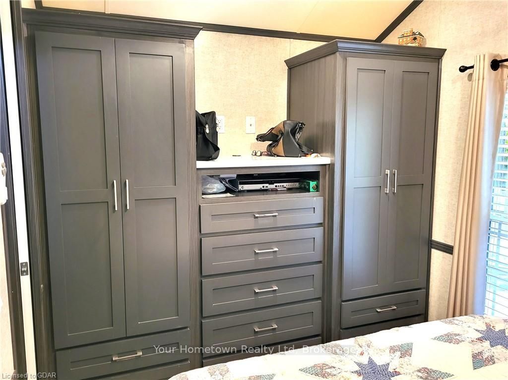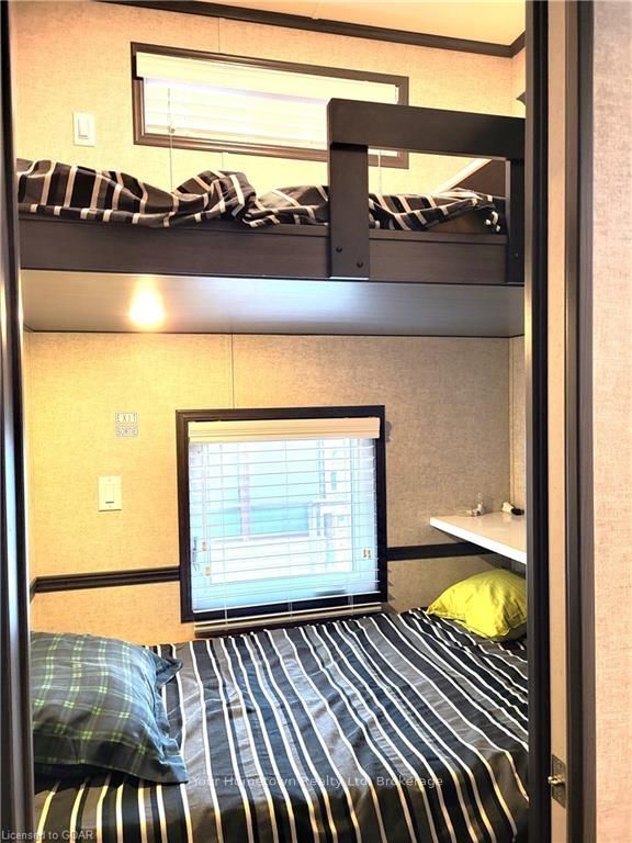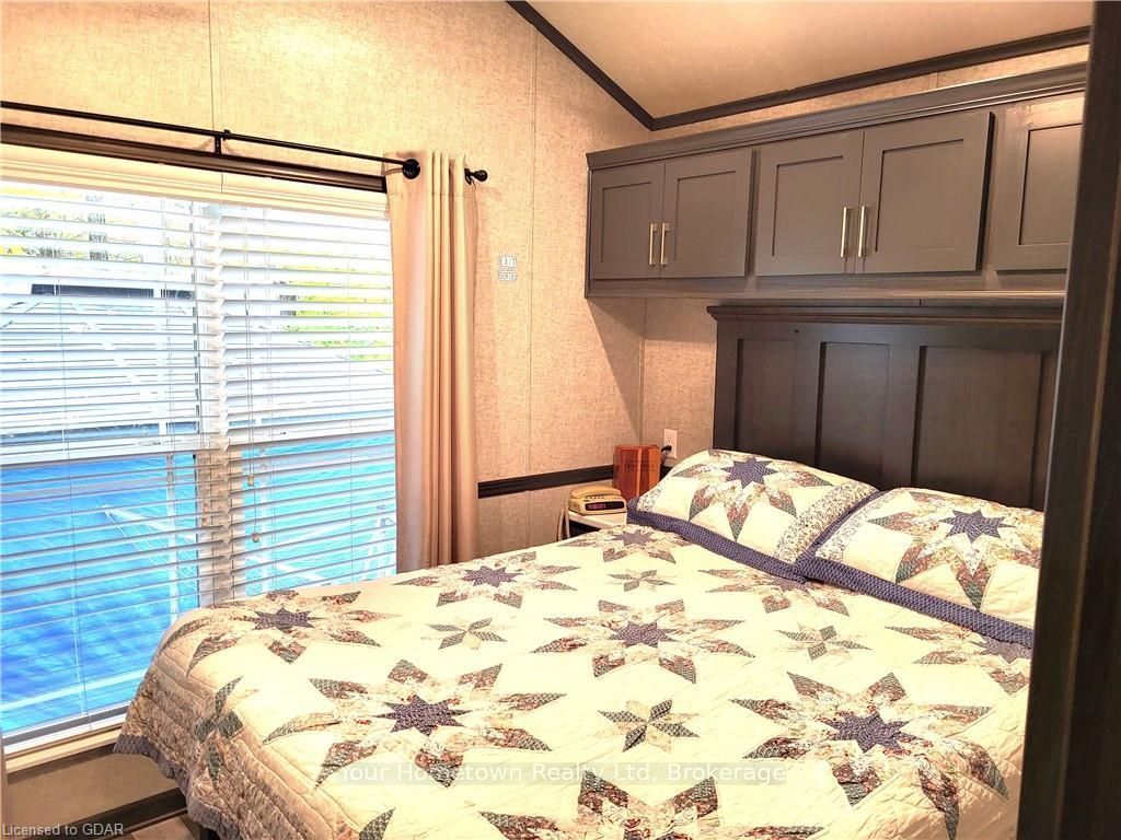 Absolutely stunning. This seasonal unit has everything you can think of and more. From the top with the high and detailed ceiling to the very bottom where there is a cement pad and extra storage. Inside the beautiful kitchen has a large island and quartz counters. Lots of storage through out the home and even more outside in the shed. This home backs right onto the woods to the lake, you have your own private path to the water. Check out the photos!