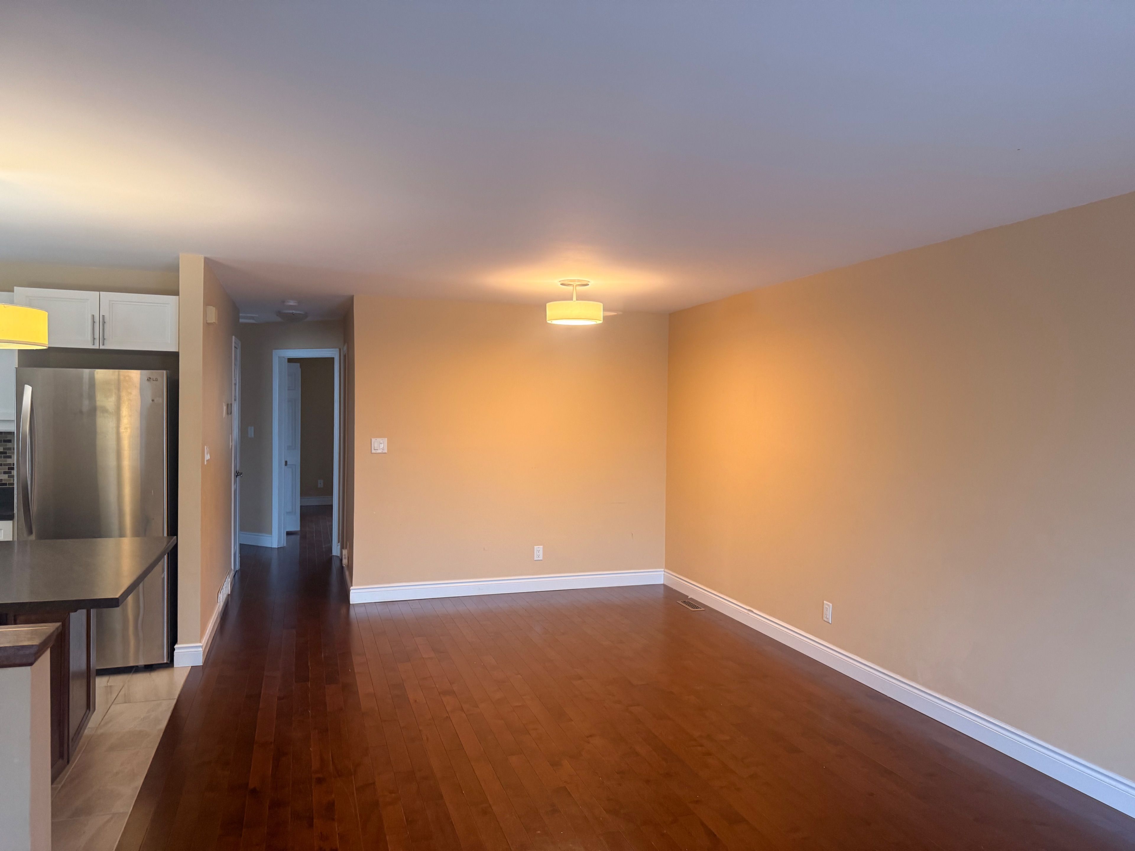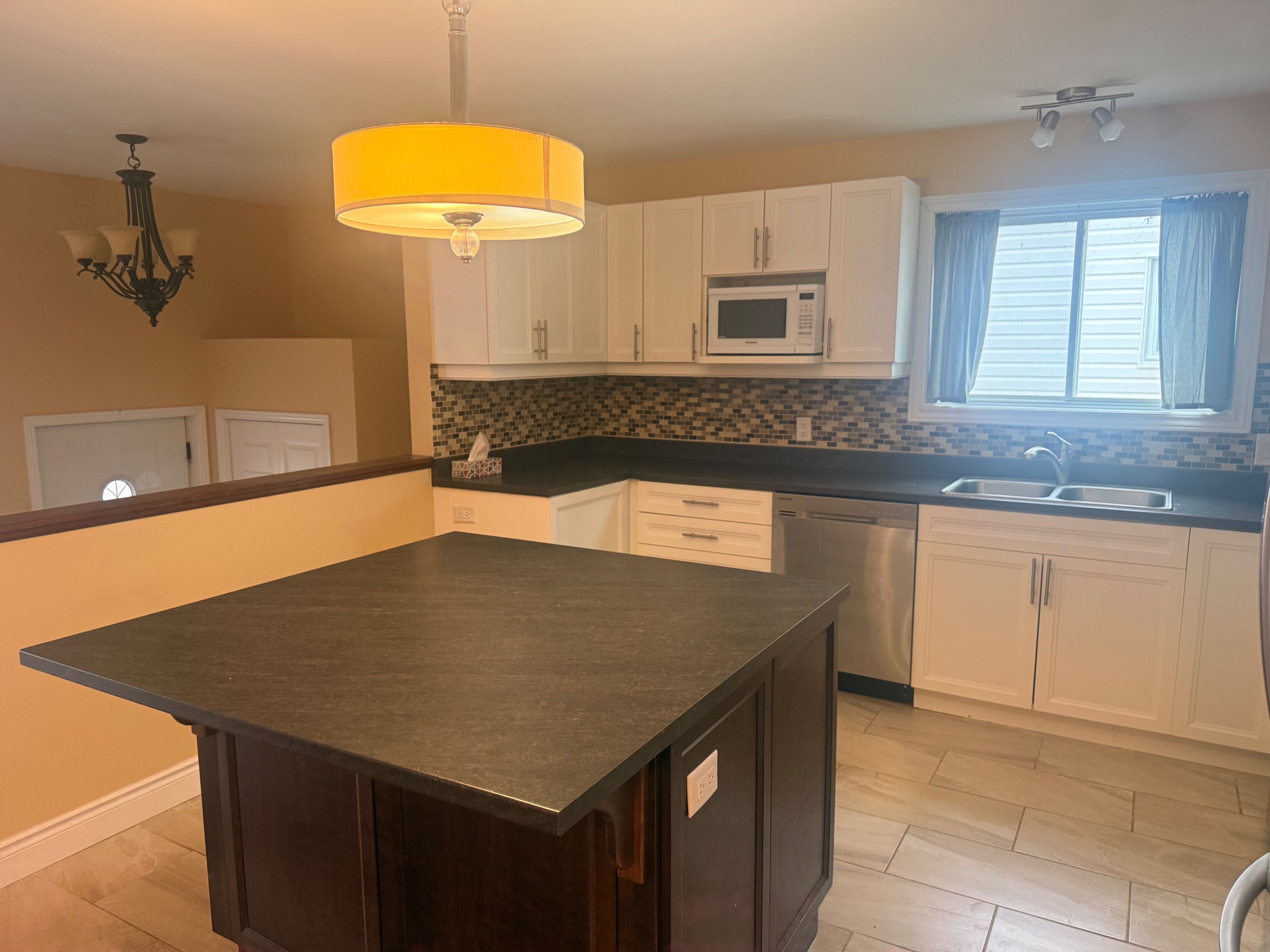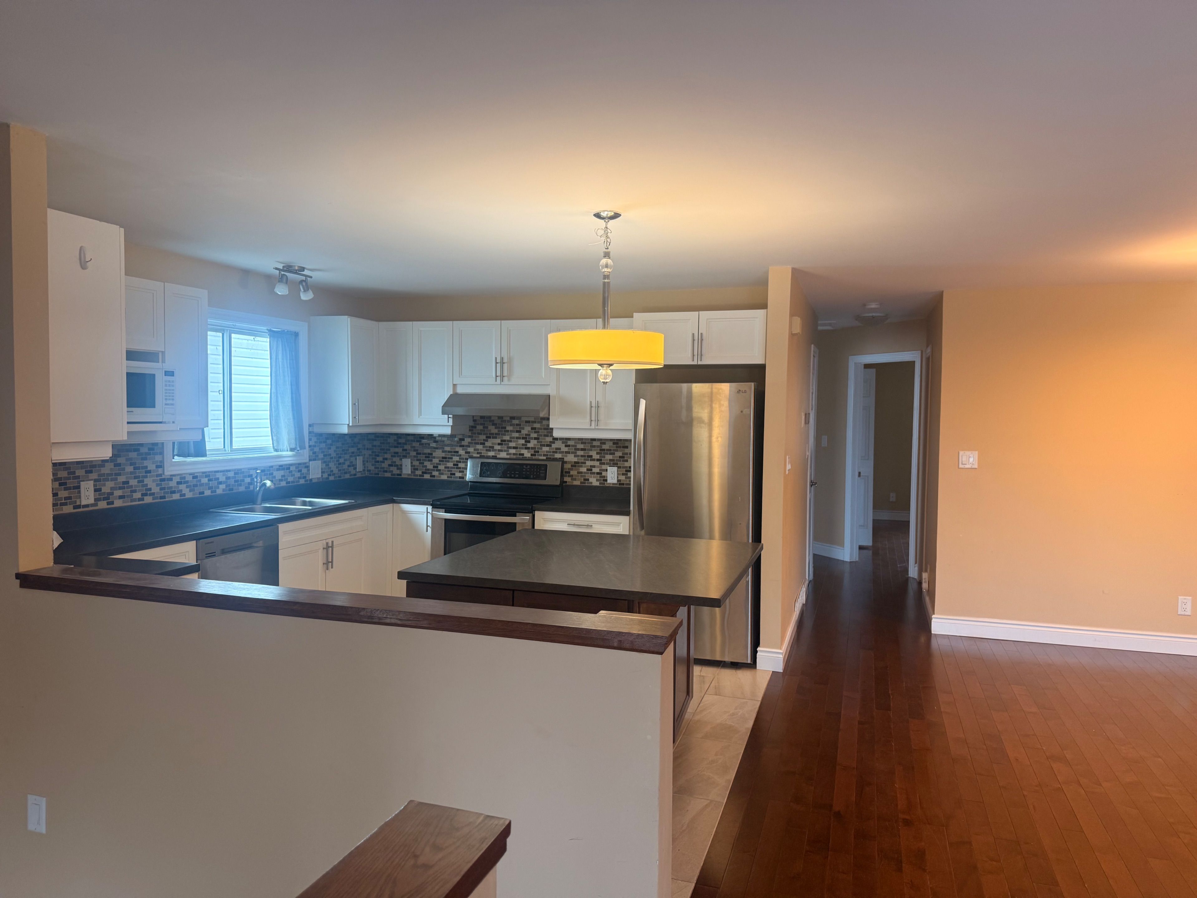 • Open concept main floor with modern kitchen and stainless steel appliances.