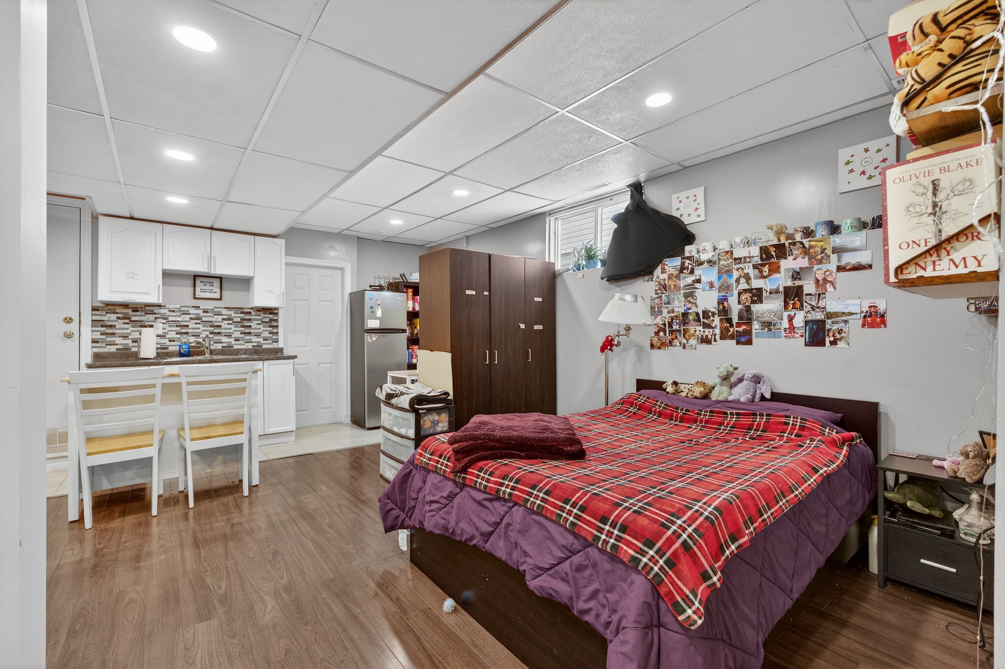 • Lower level has a walkout entrance and bachelor suite setup.