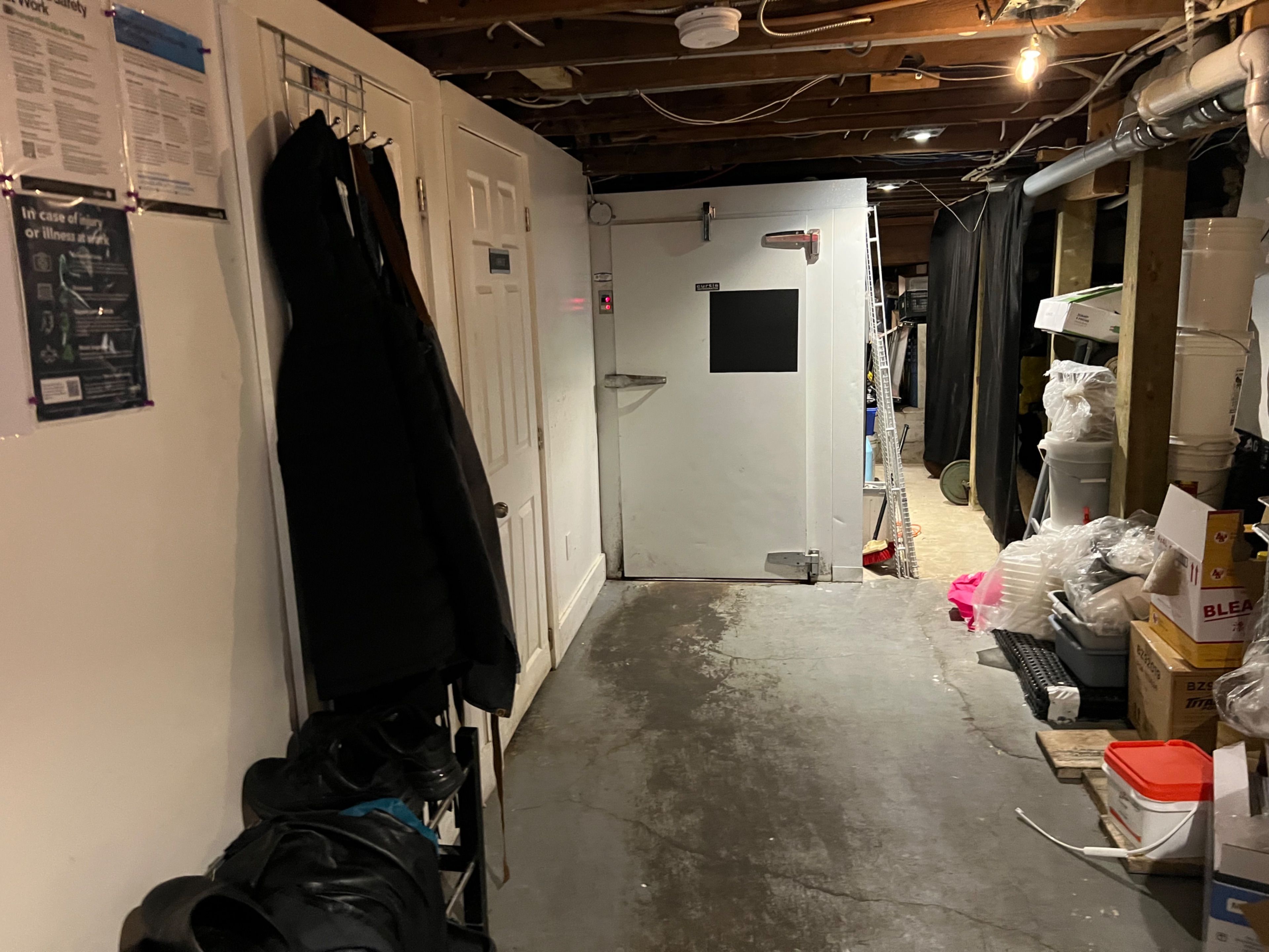 • Includes basement storage, office, and walk-in cooler for convenience.